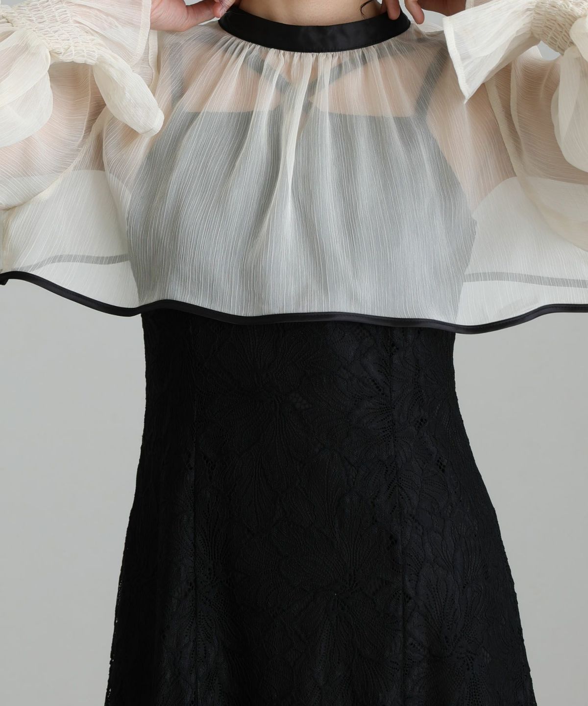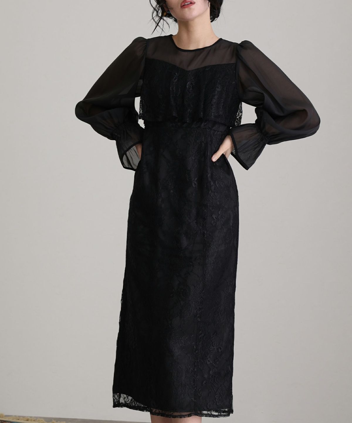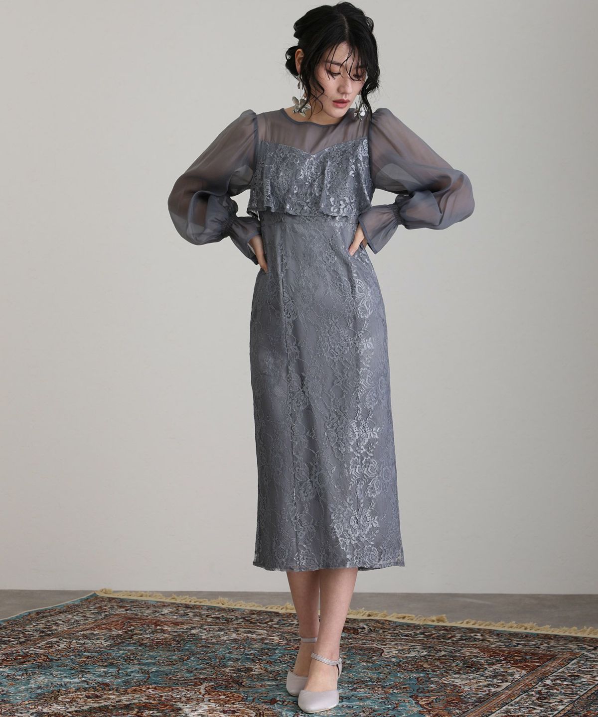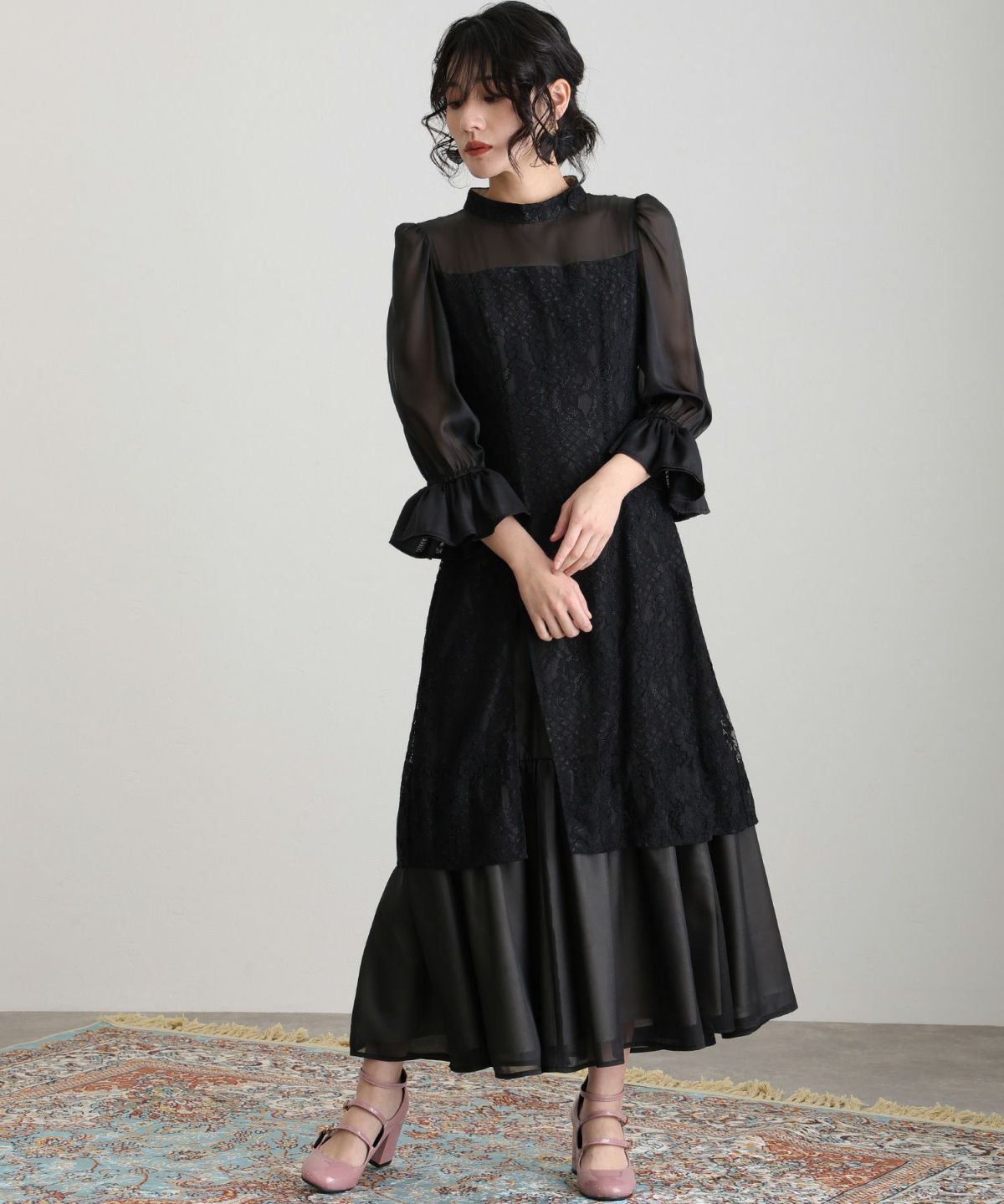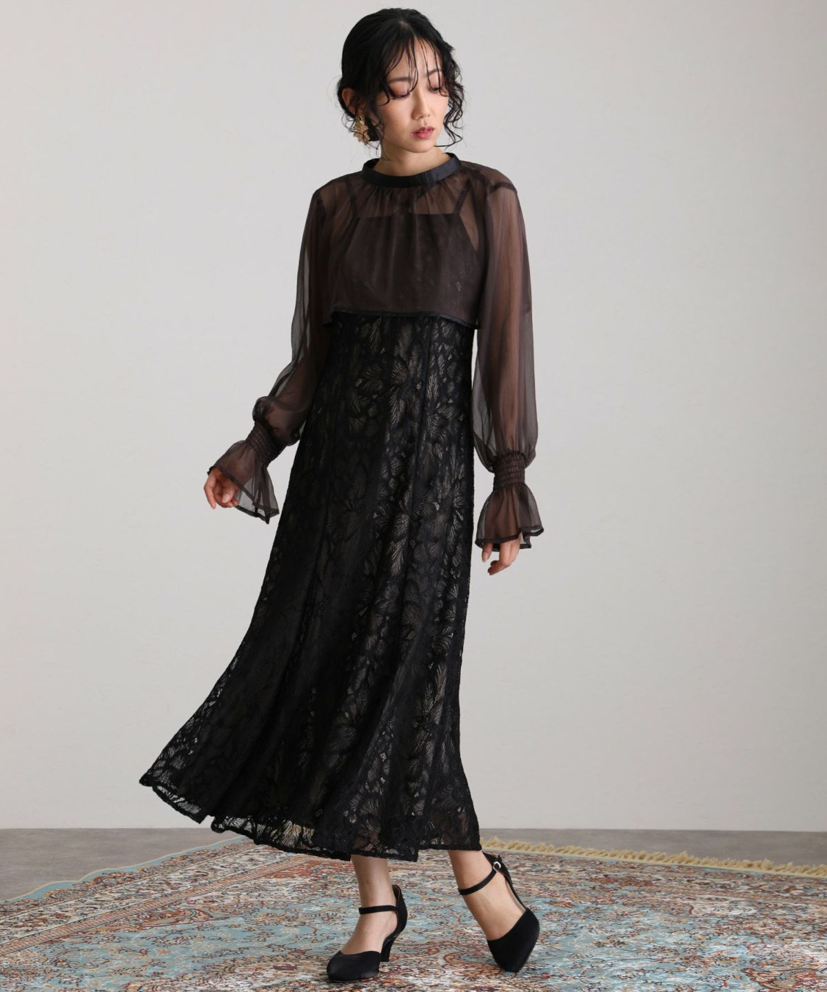 レースとオーガンジー素材の組み合わせが華やか レースレイヤードワンピ―ス