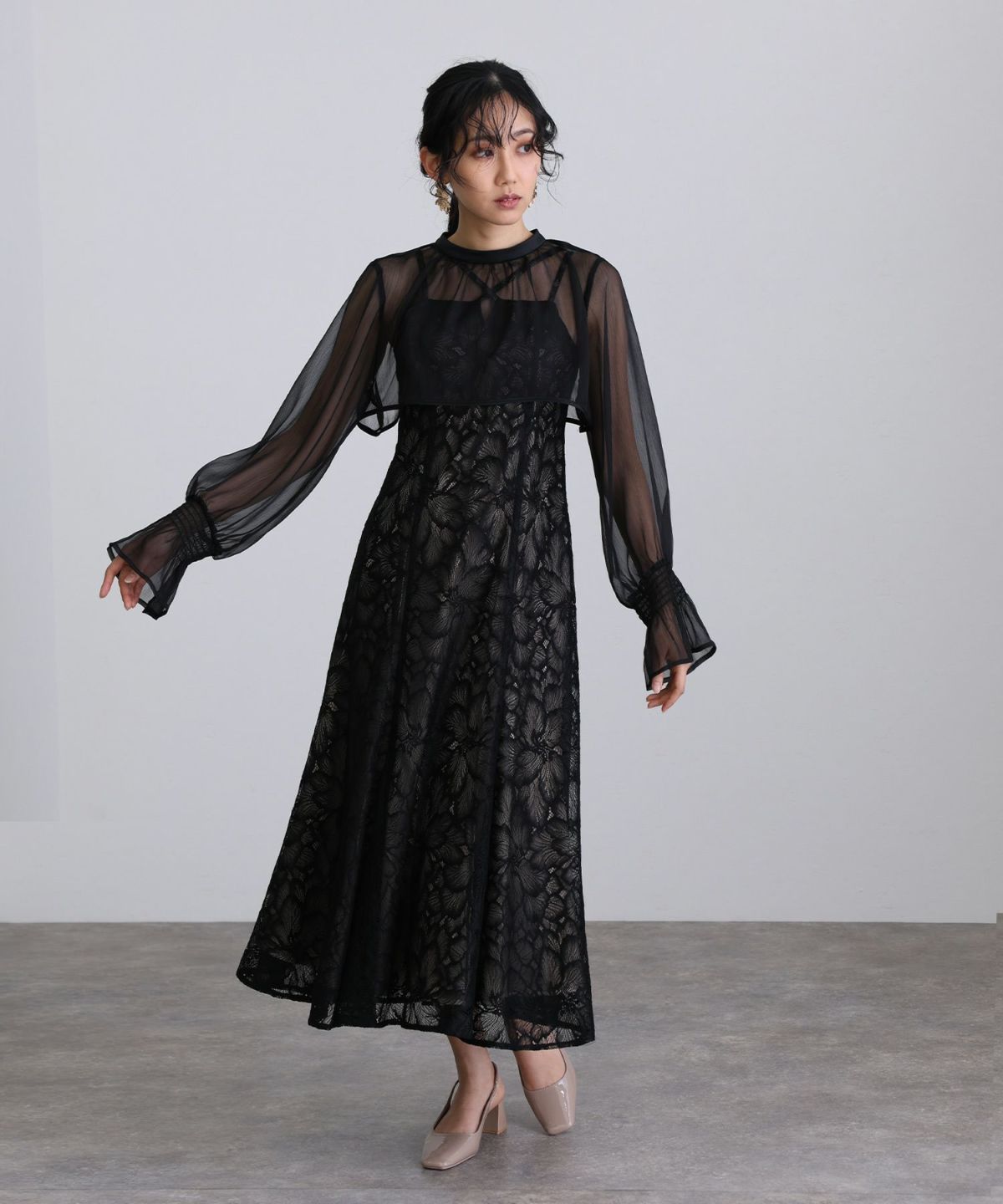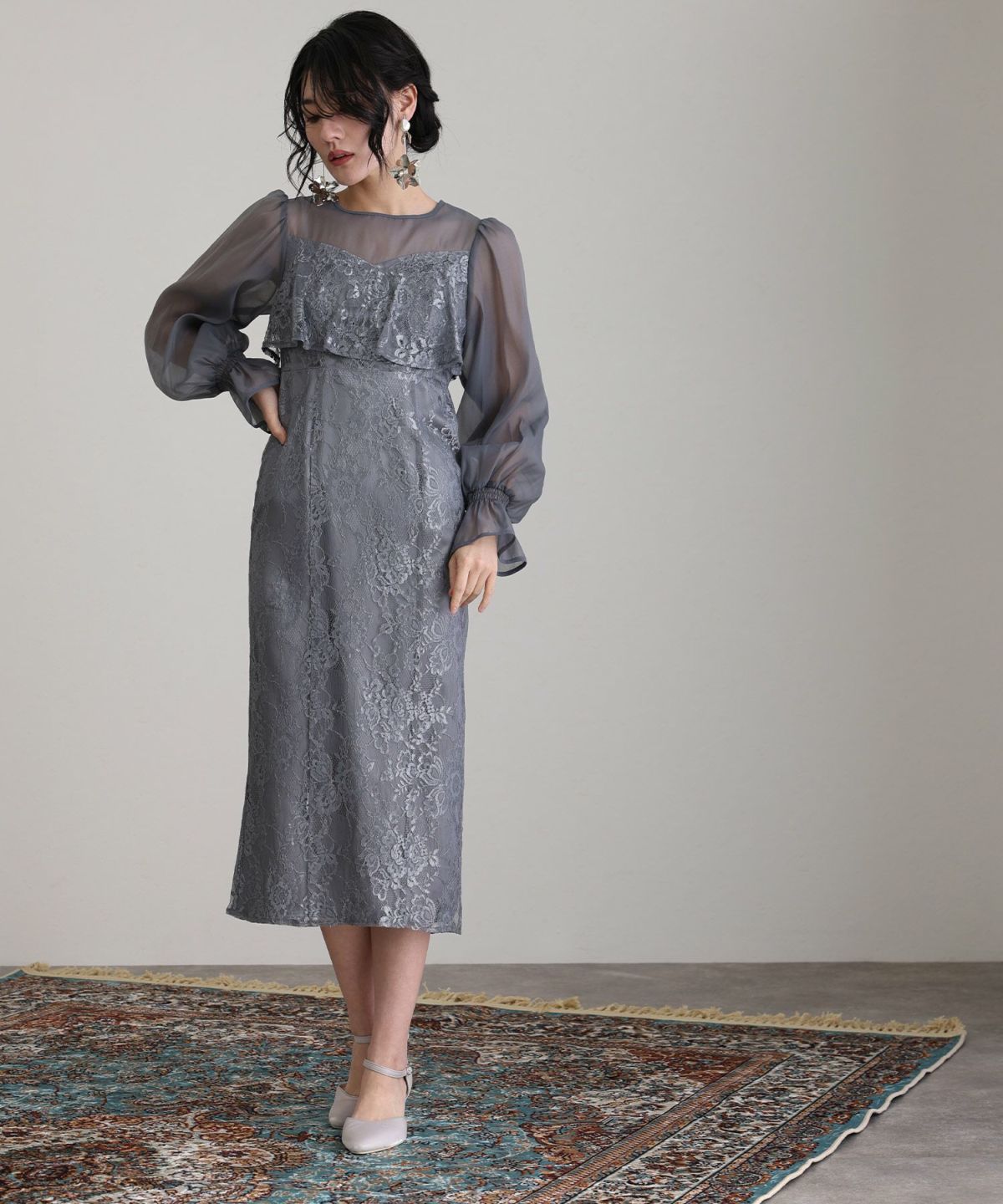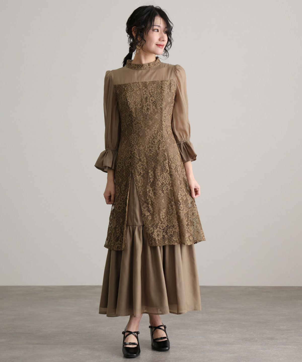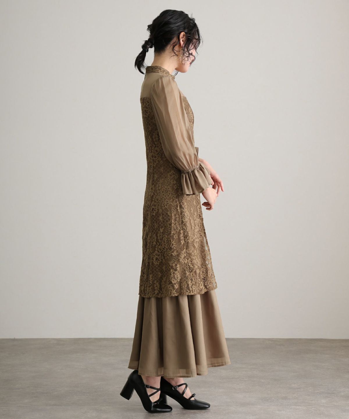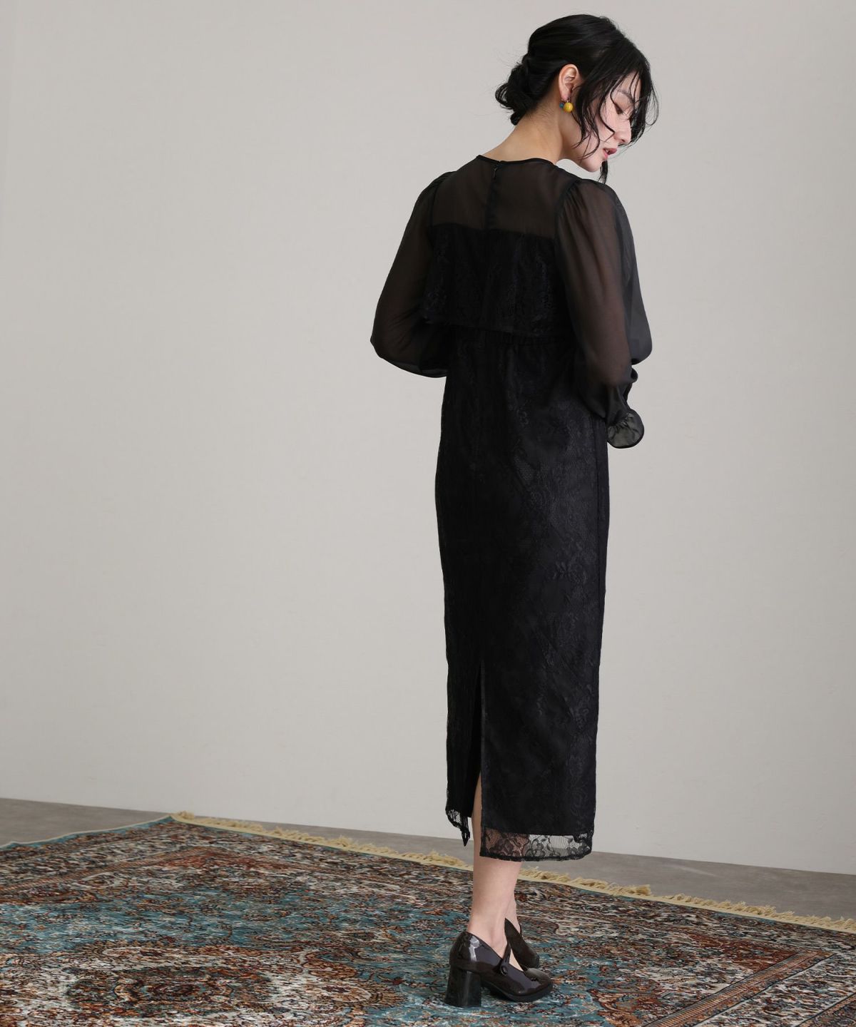 レースとオーガンジー素材の組み合わせが華やか レースレイヤードワンピ―ス