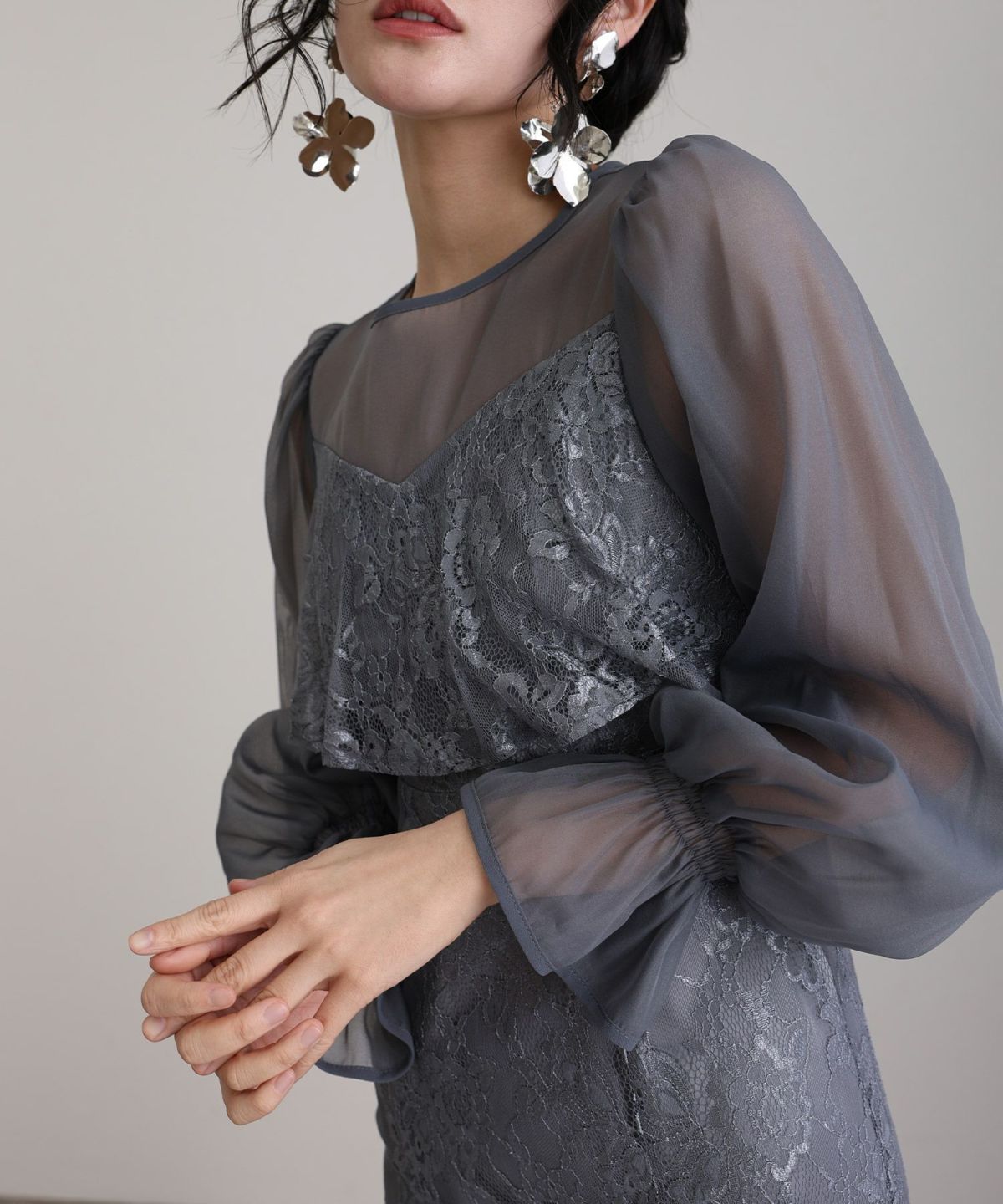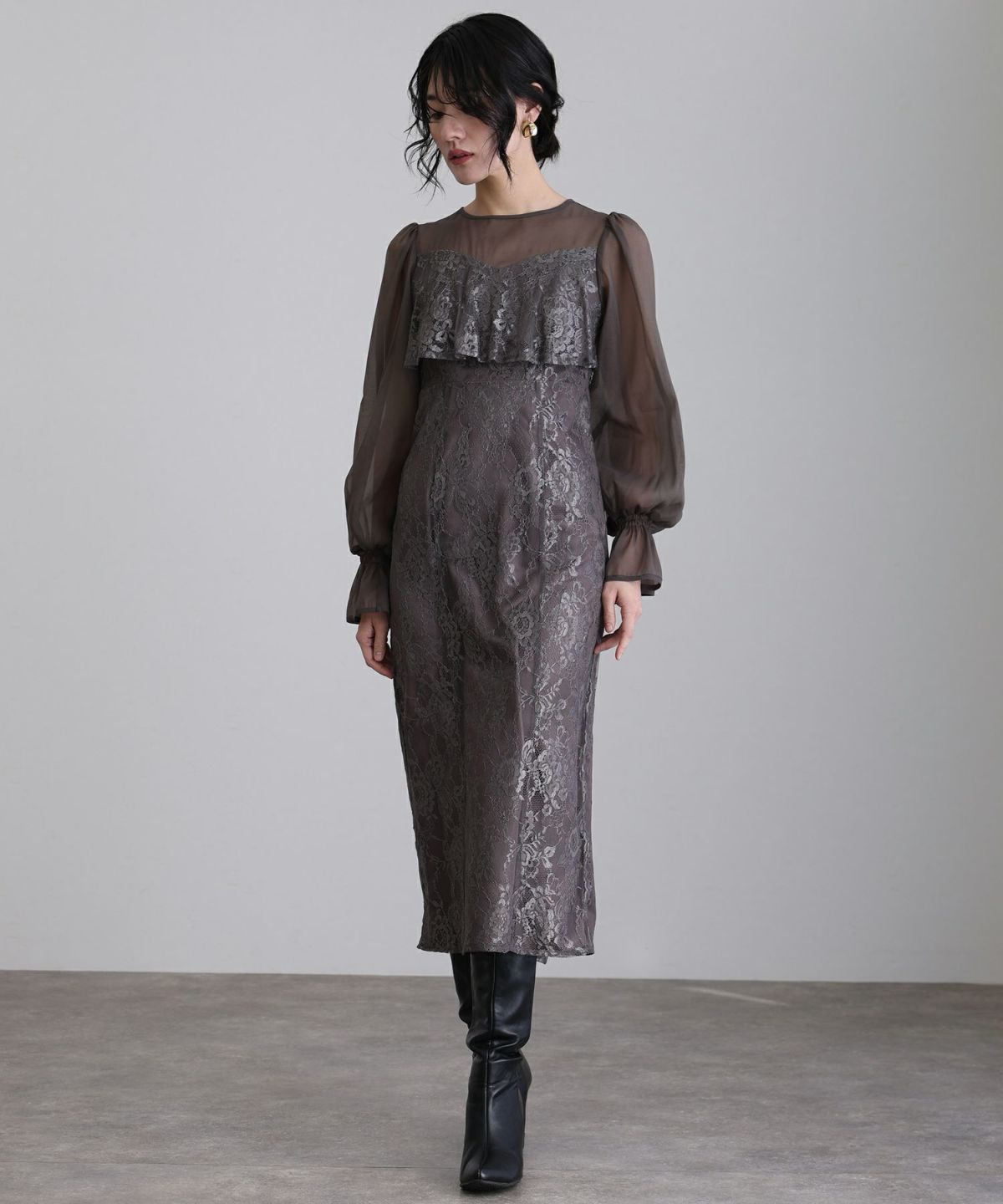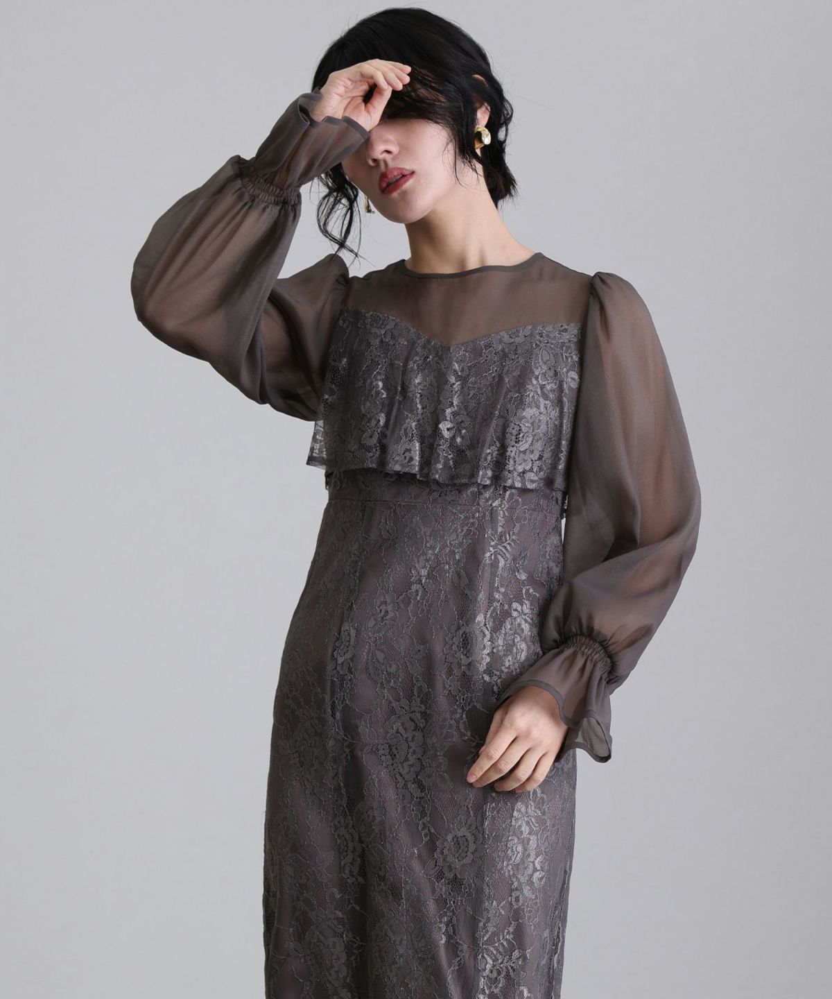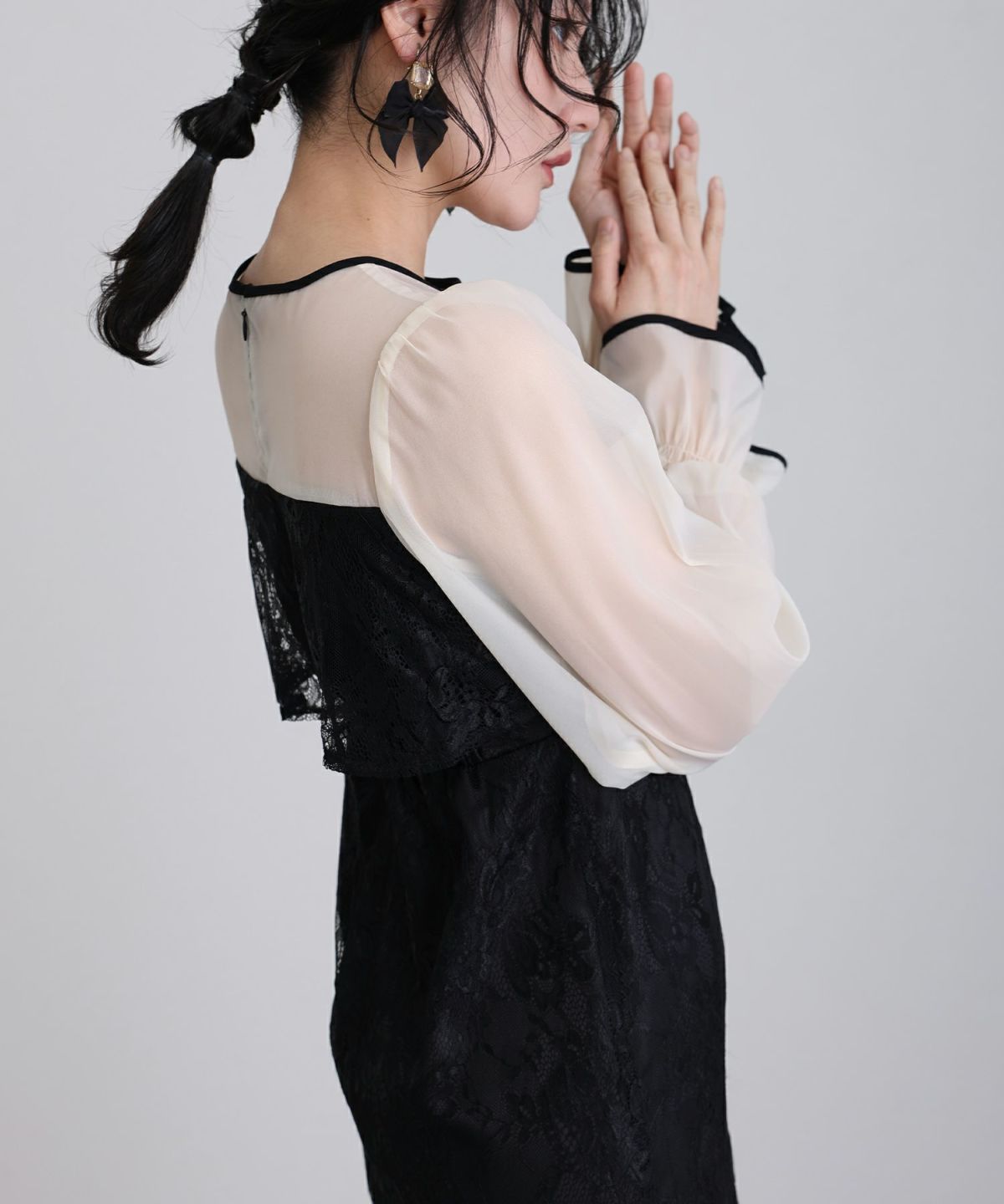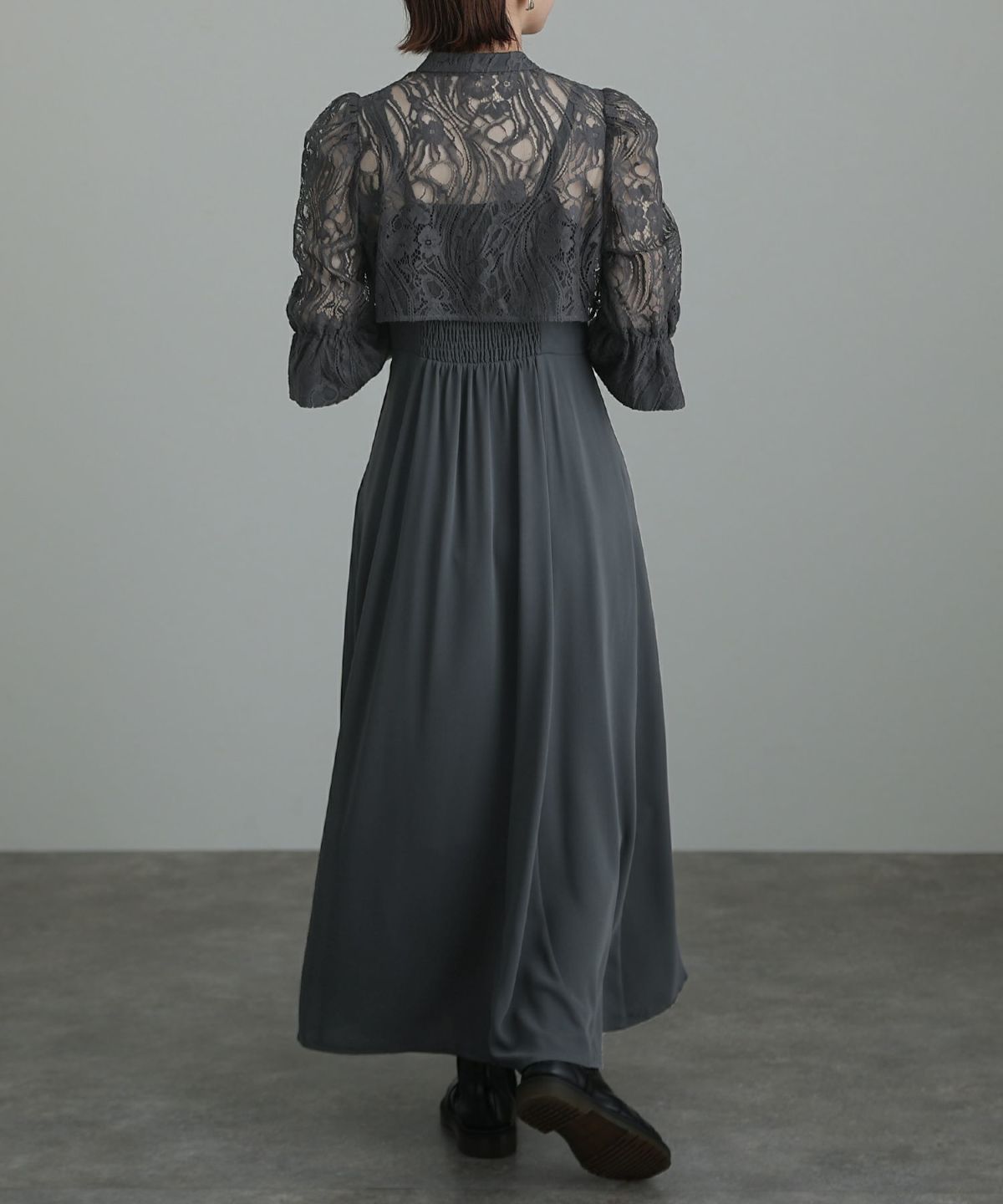 レースとオーガンジー素材の組み合わせが華やか レースレイヤードワンピ―ス