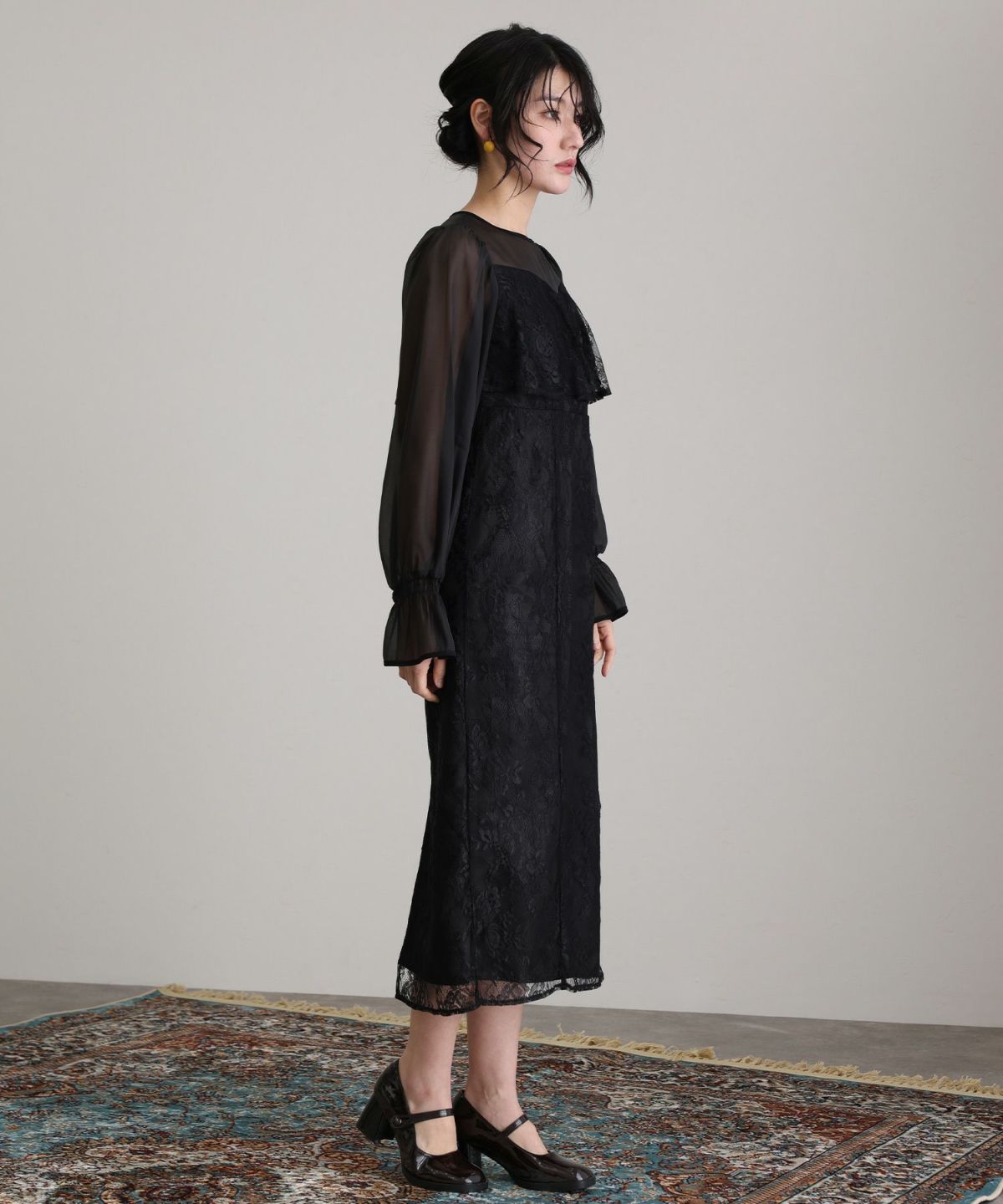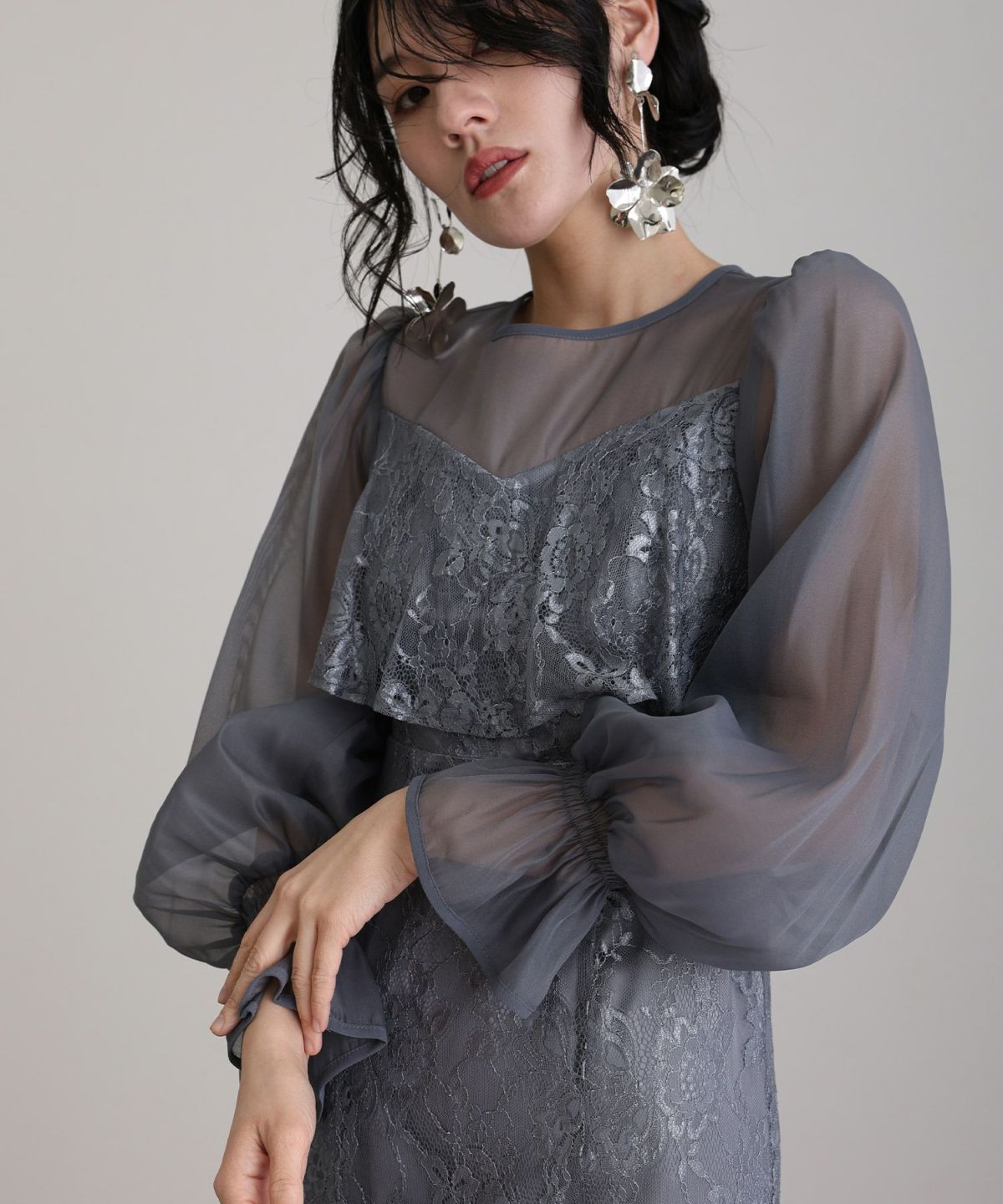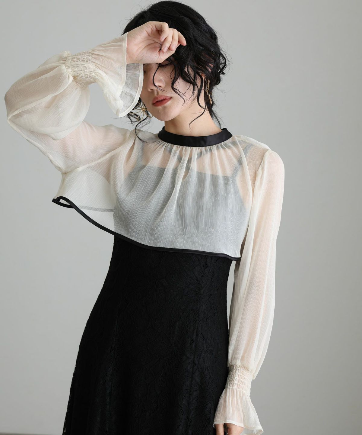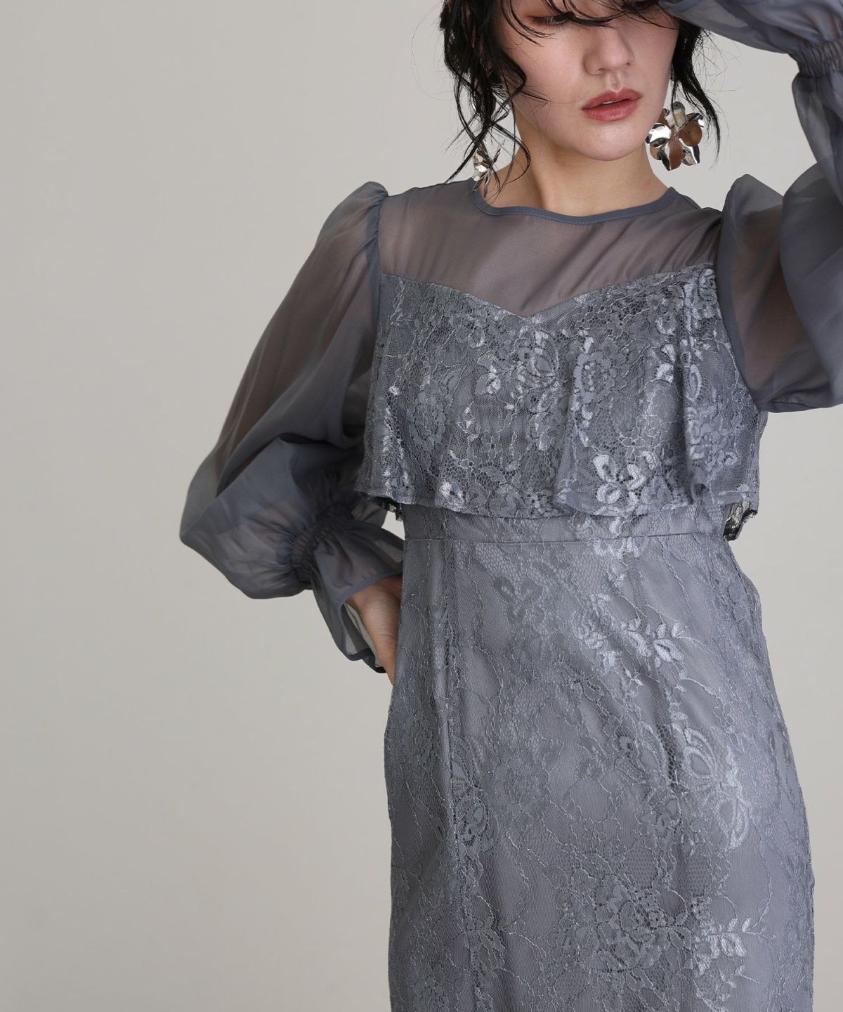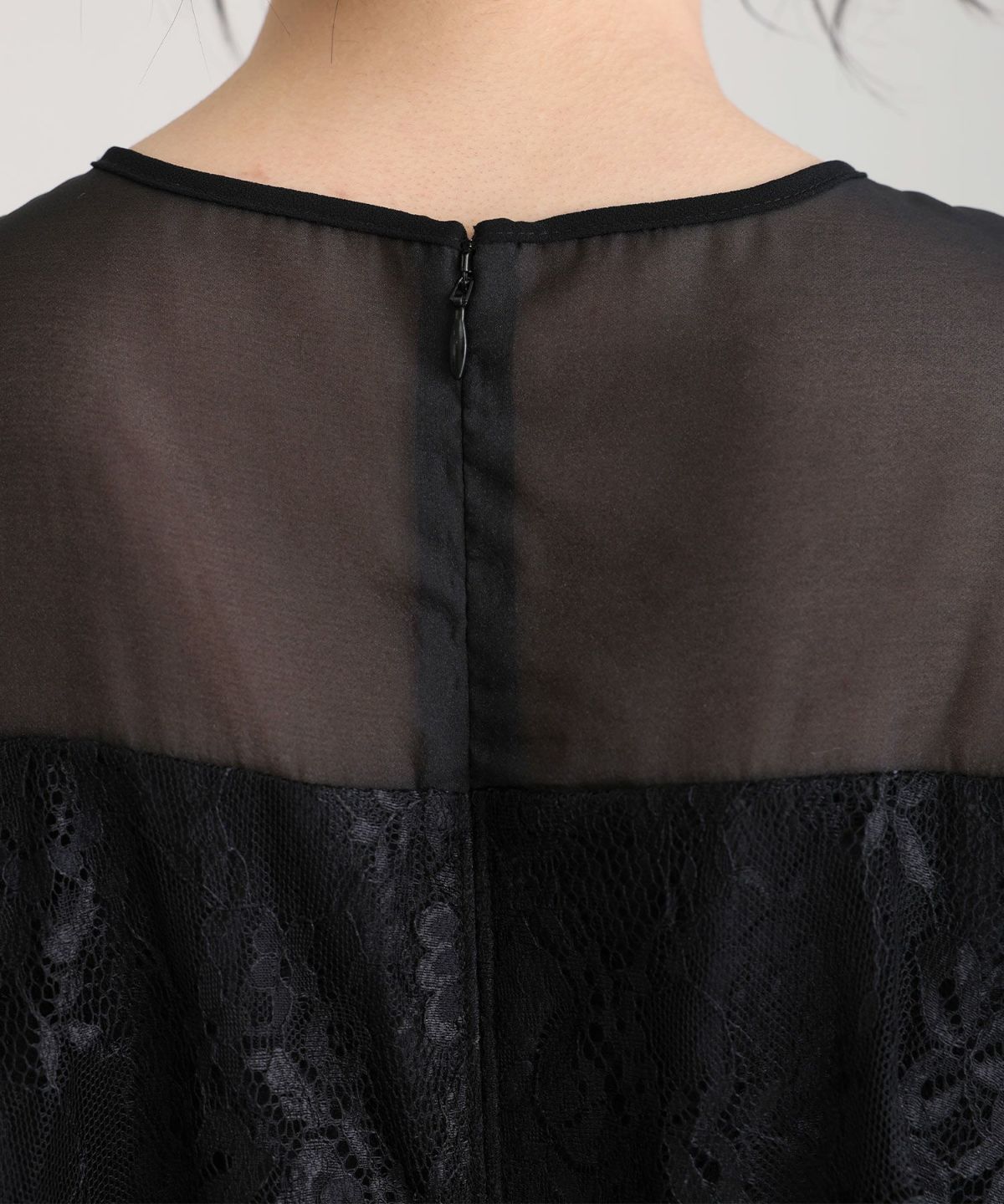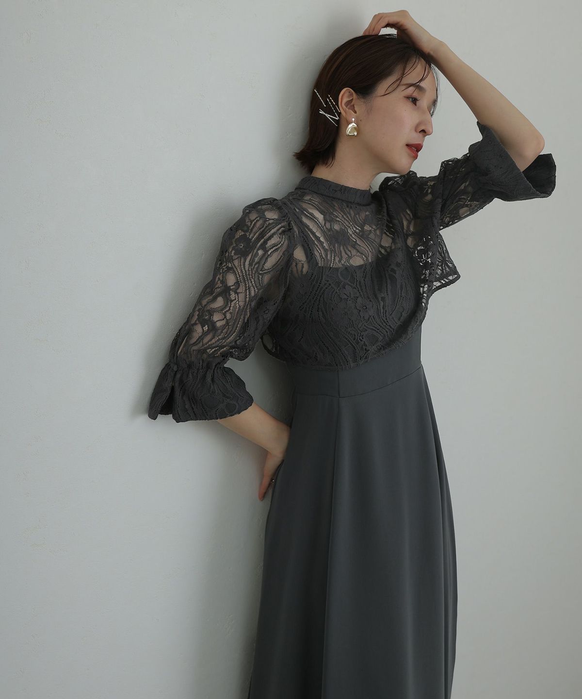 レースとオーガンジー素材の組み合わせが華やか レースレイヤードワンピ―ス