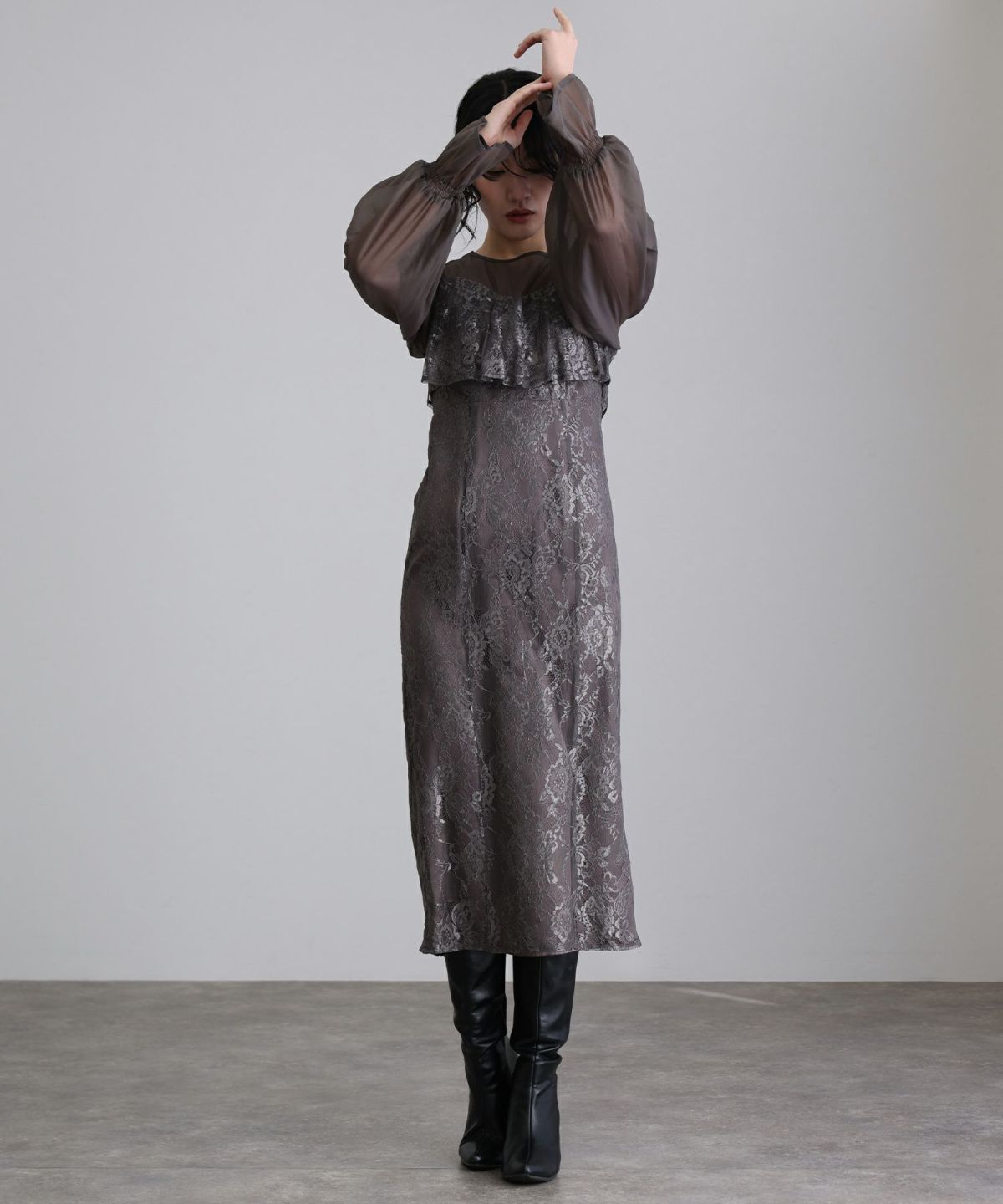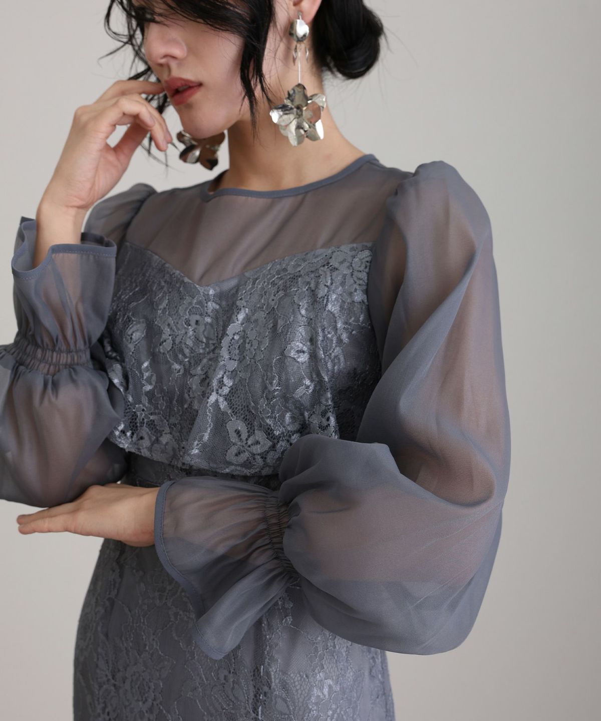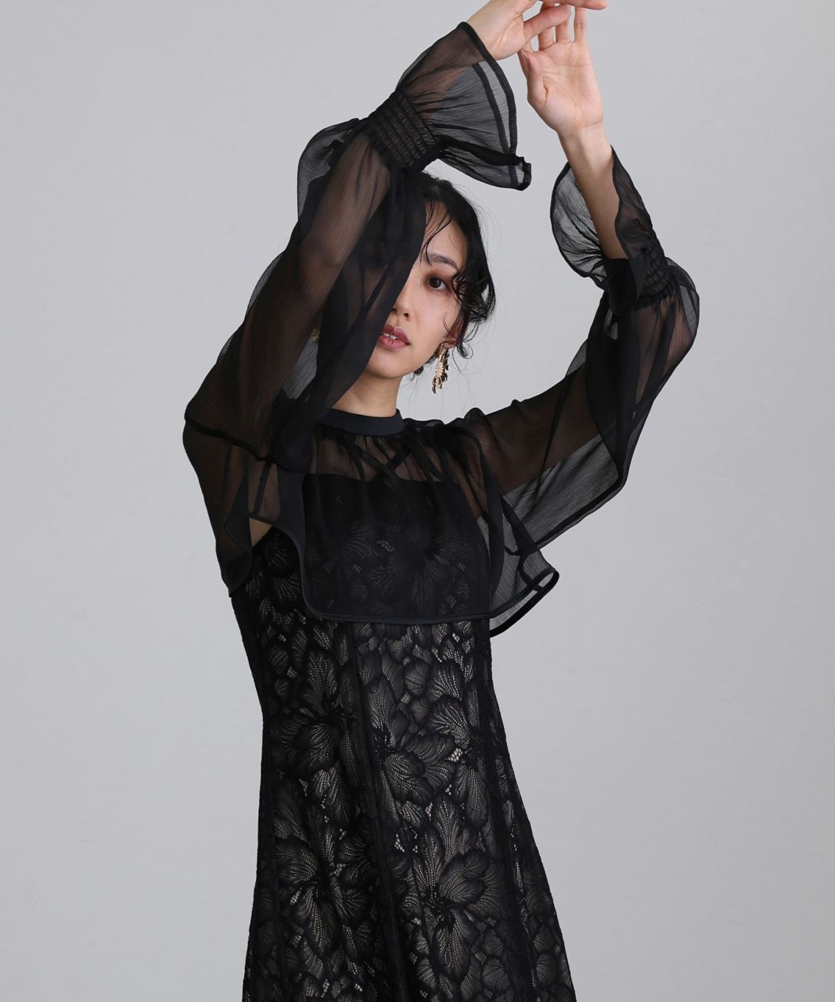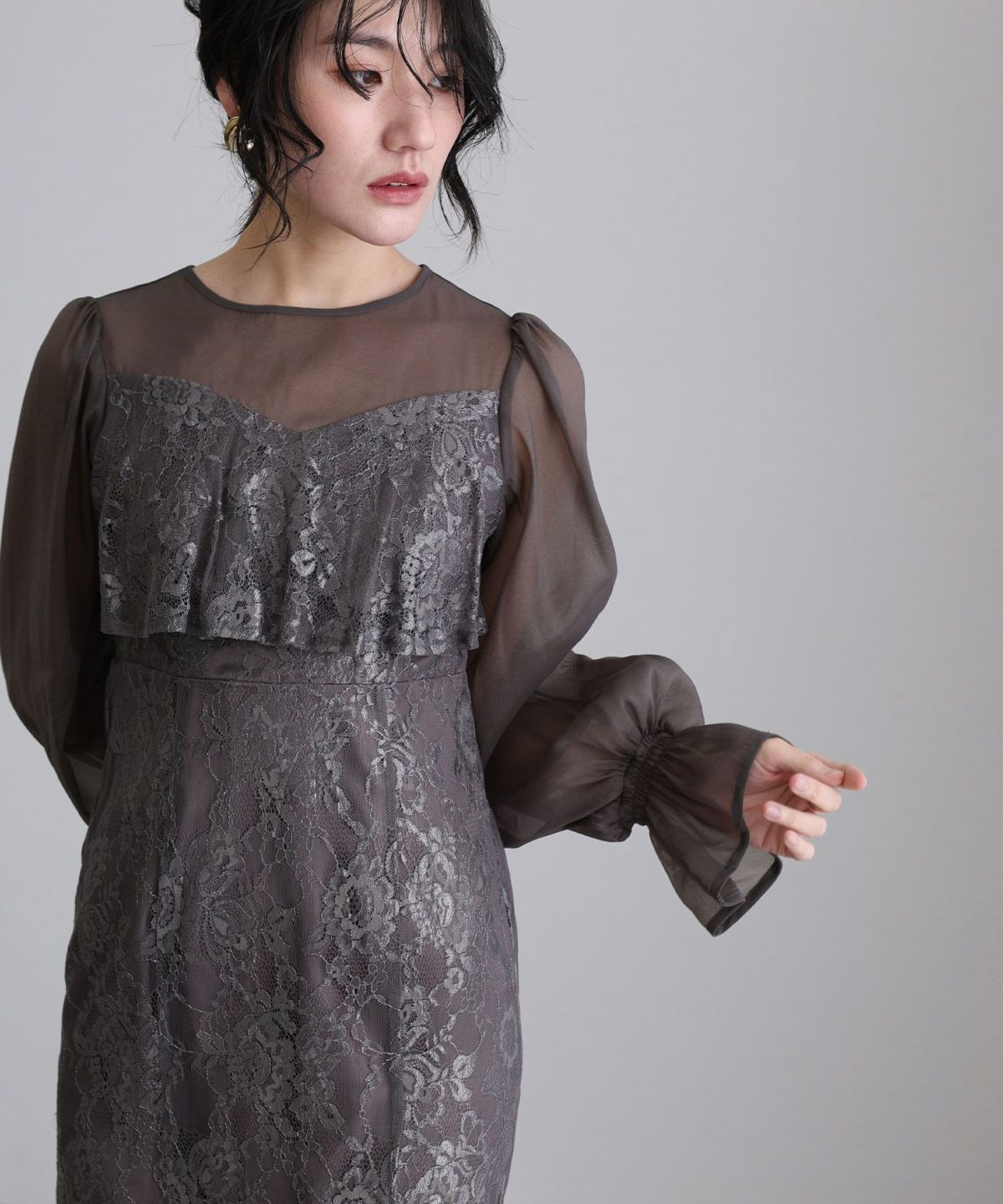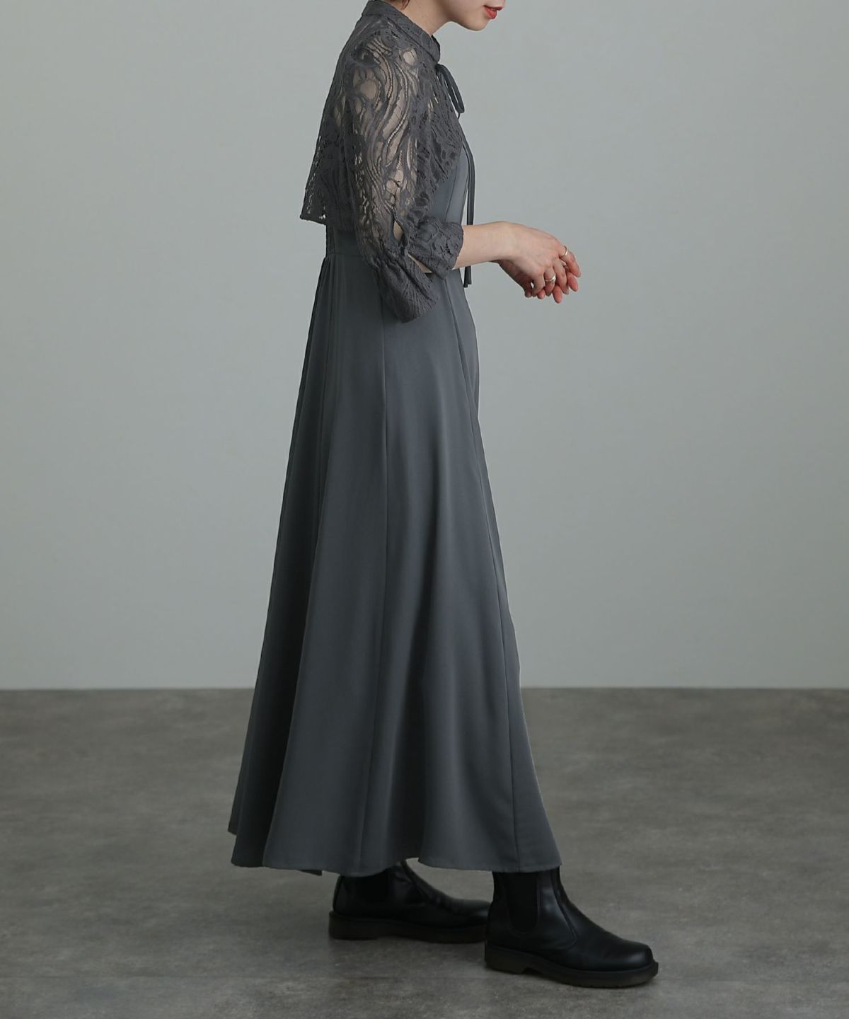 レースとオーガンジー素材の組み合わせが華やか レースレイヤードワンピ―ス