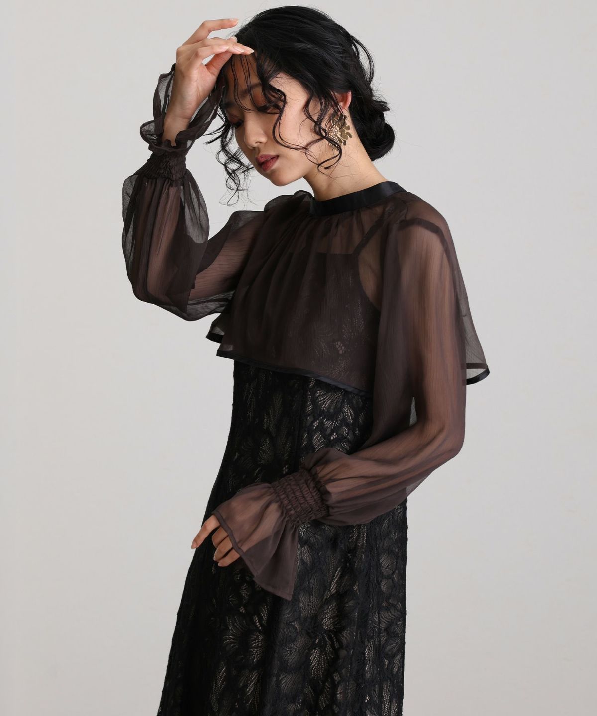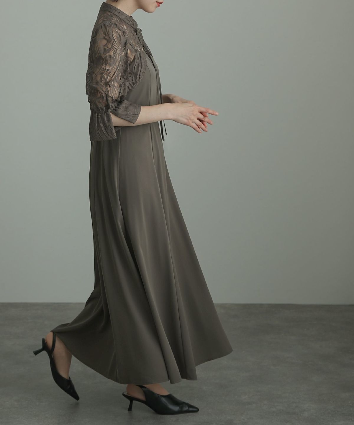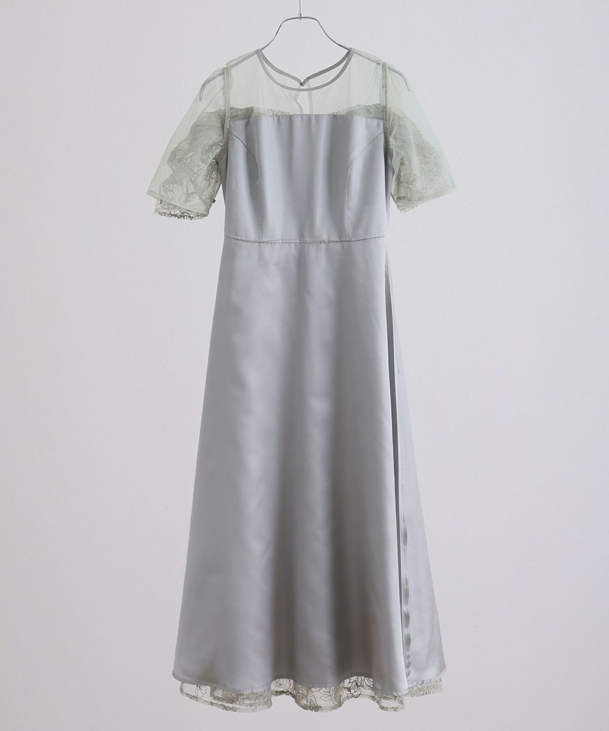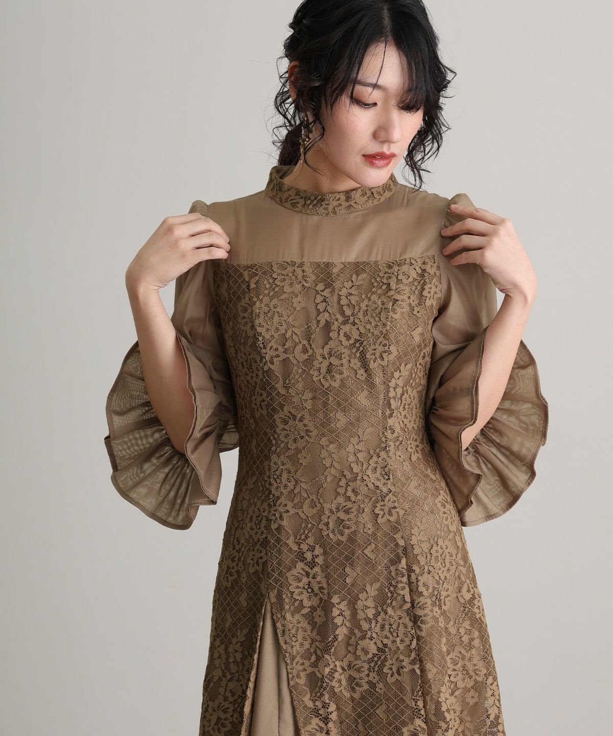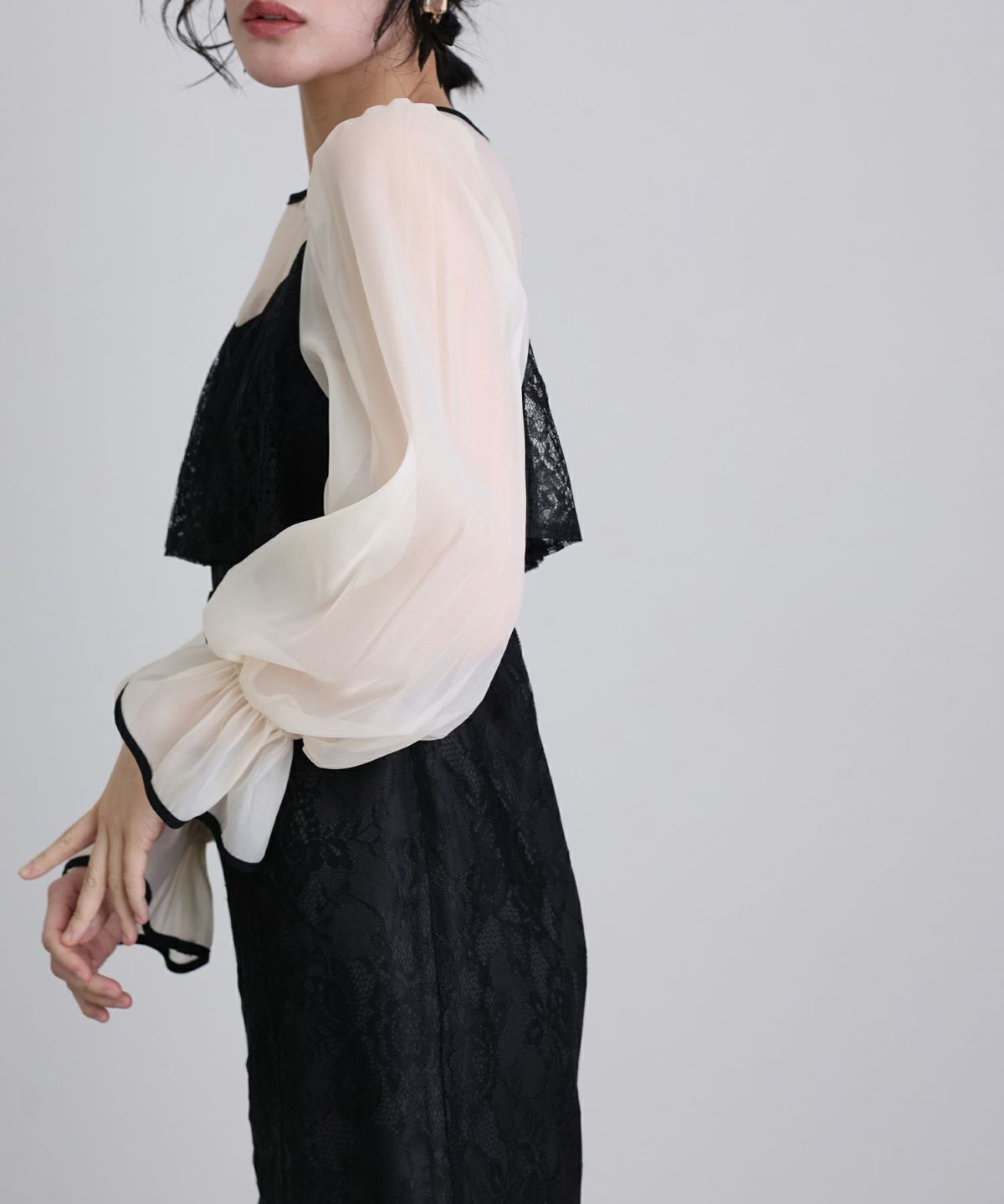 レースとオーガンジー素材の組み合わせが華やか レースレイヤードワンピ―ス