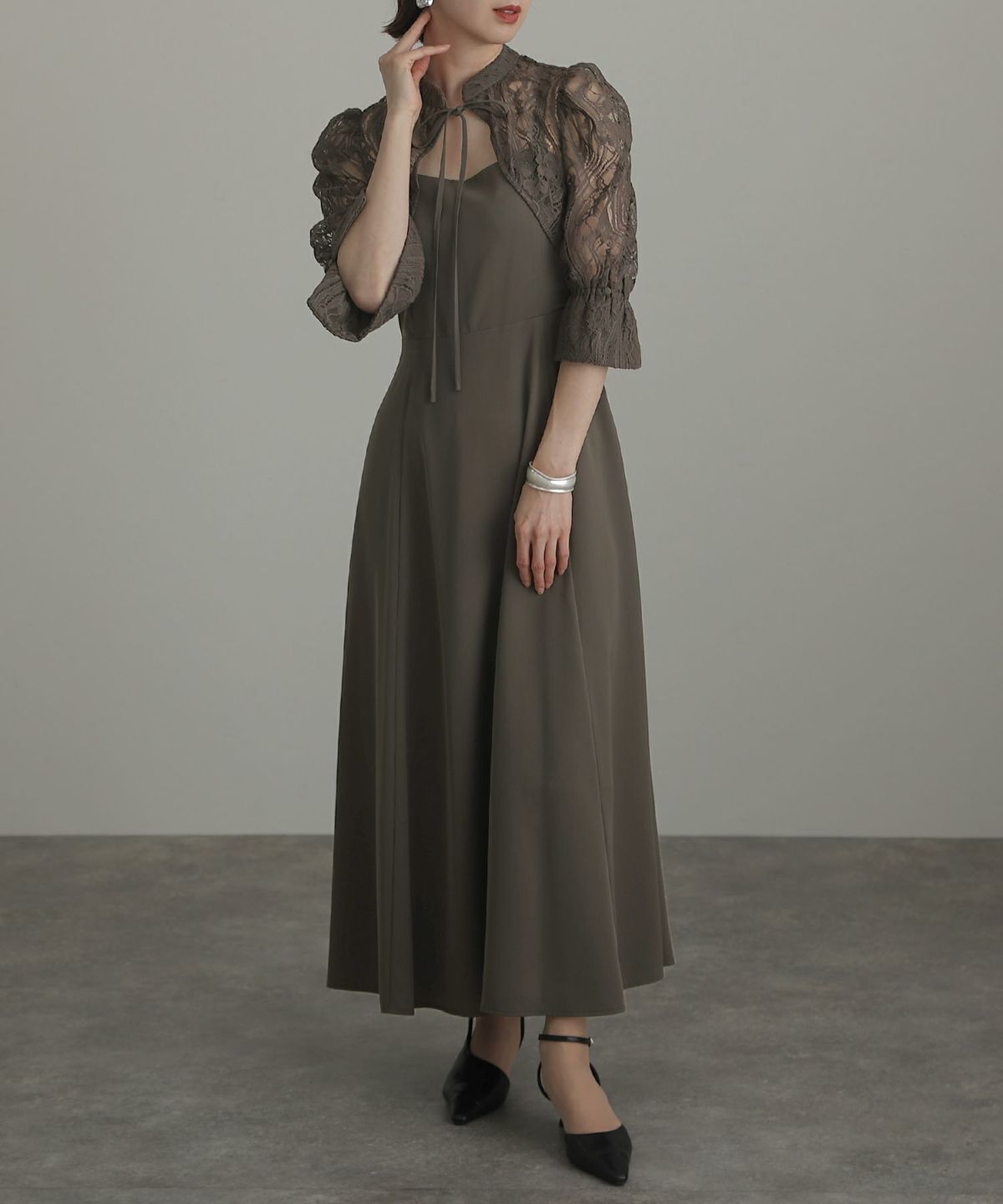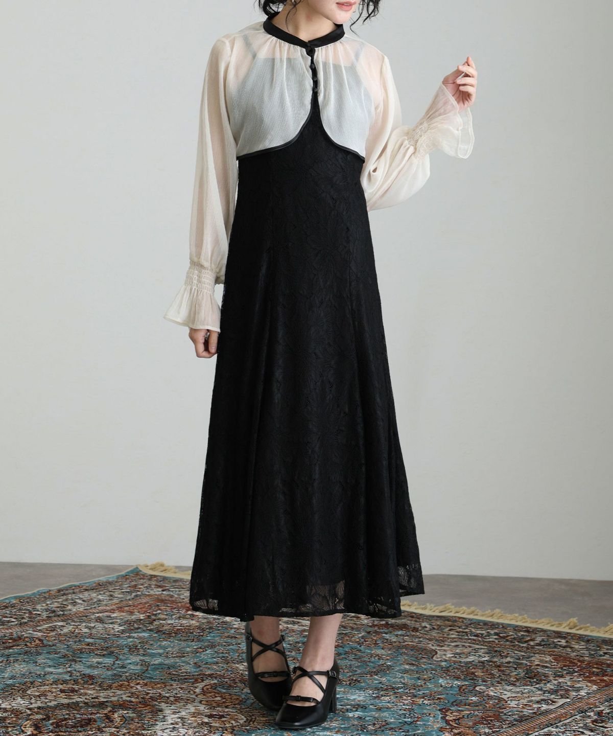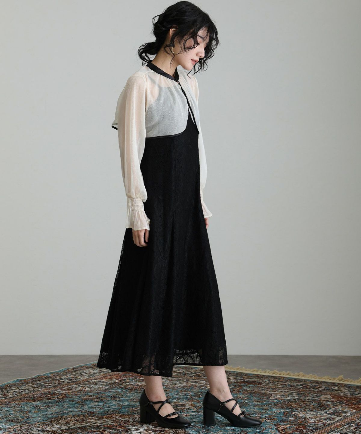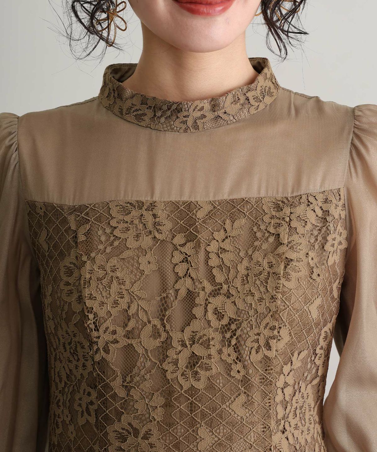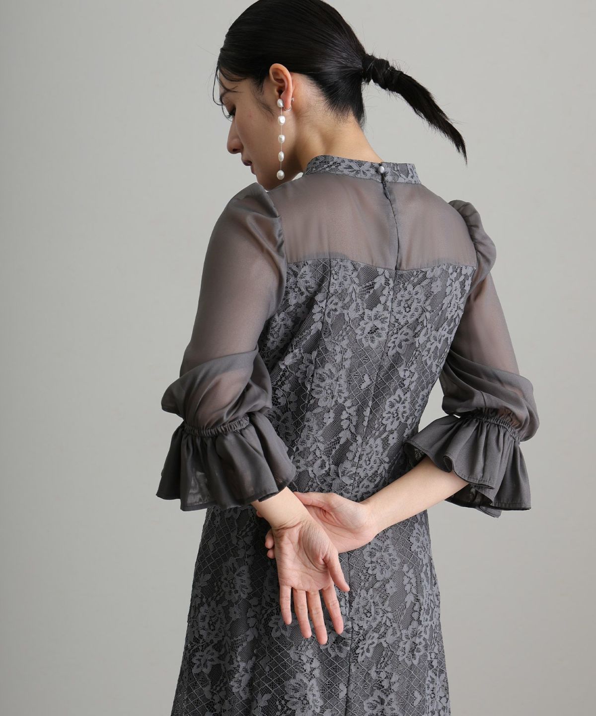 レースとオーガンジー素材の組み合わせが華やか レースレイヤードワンピ―ス