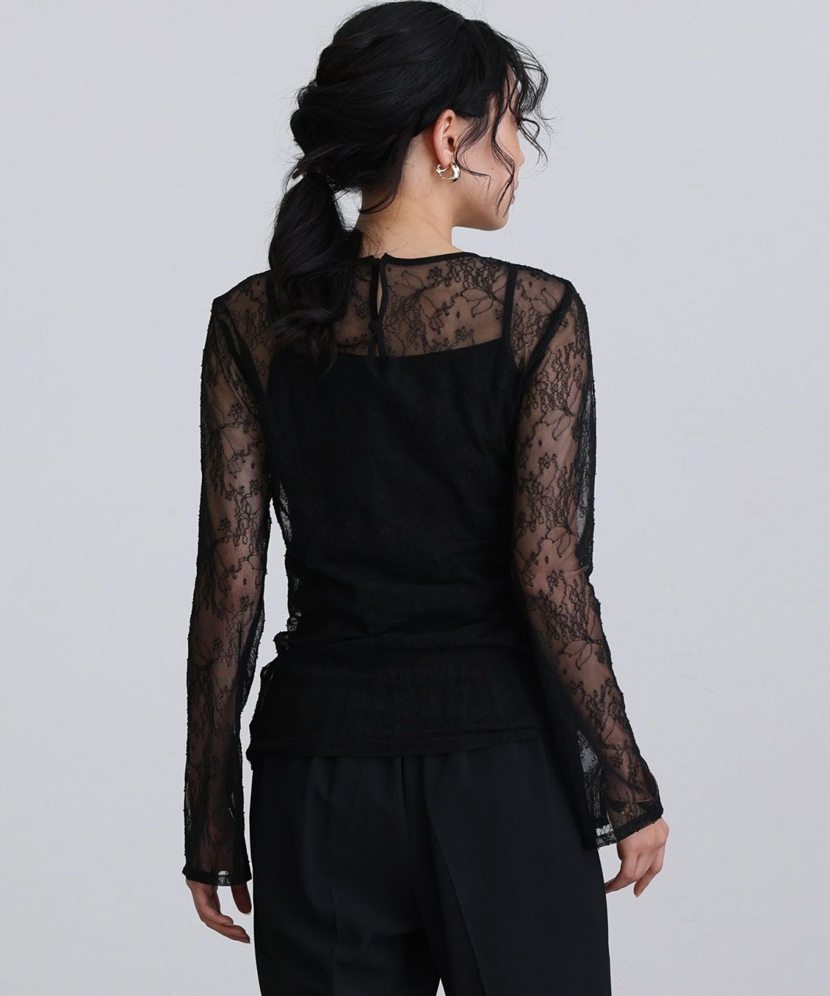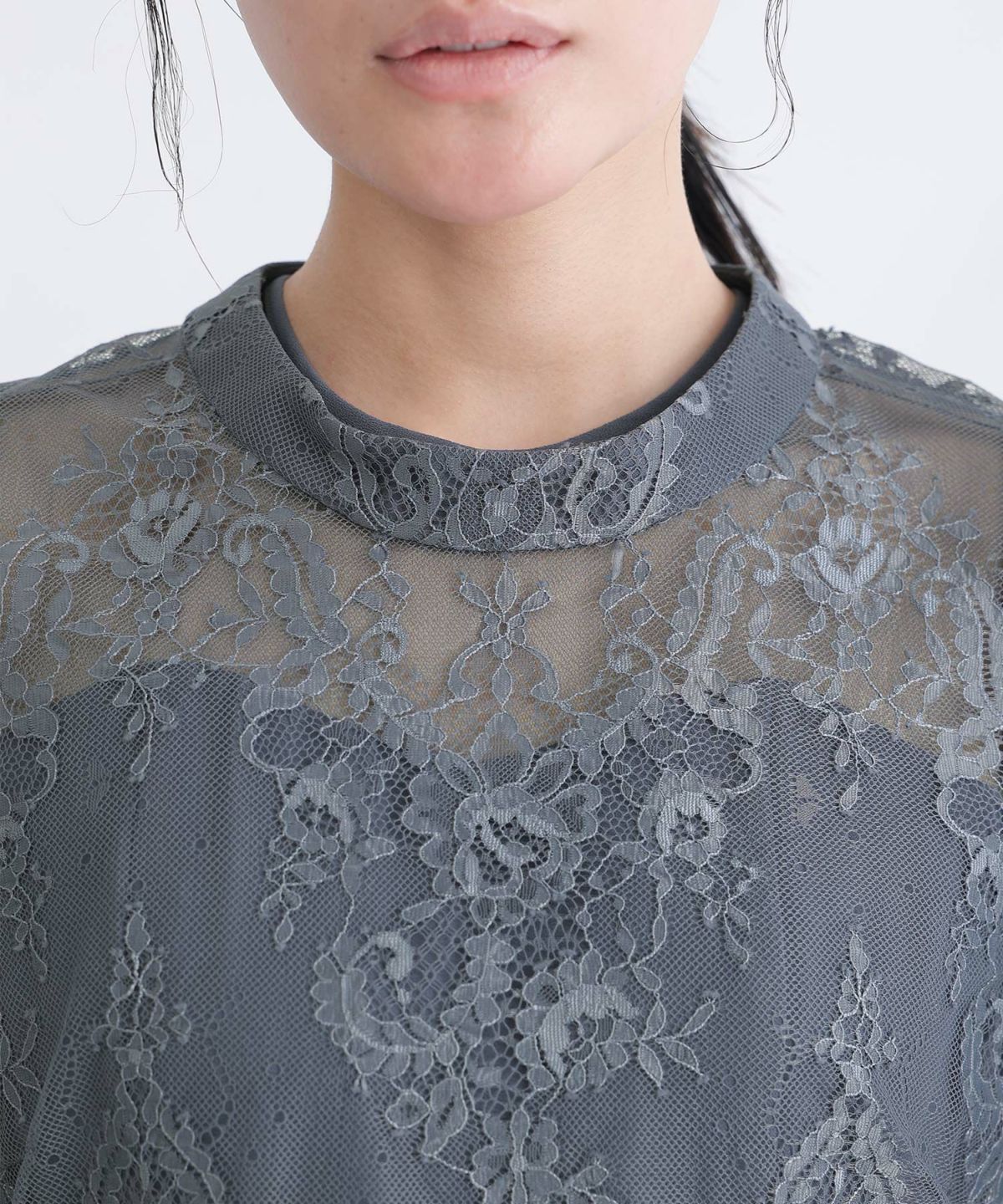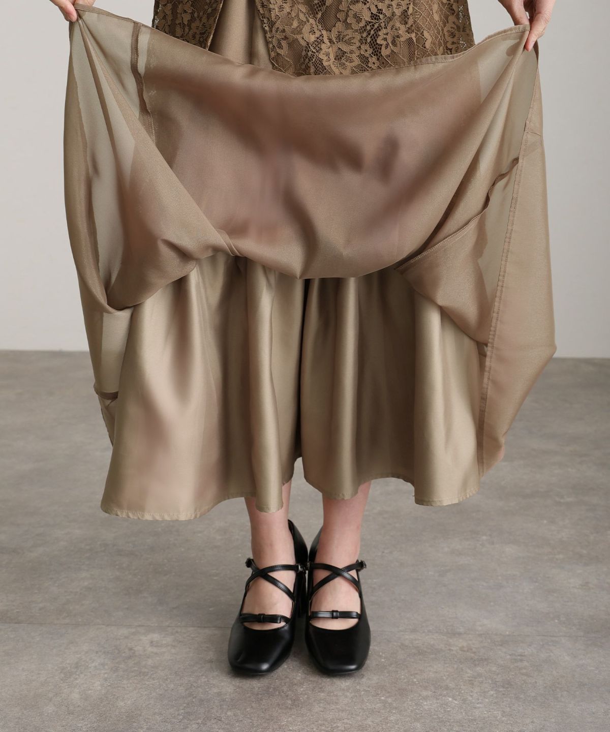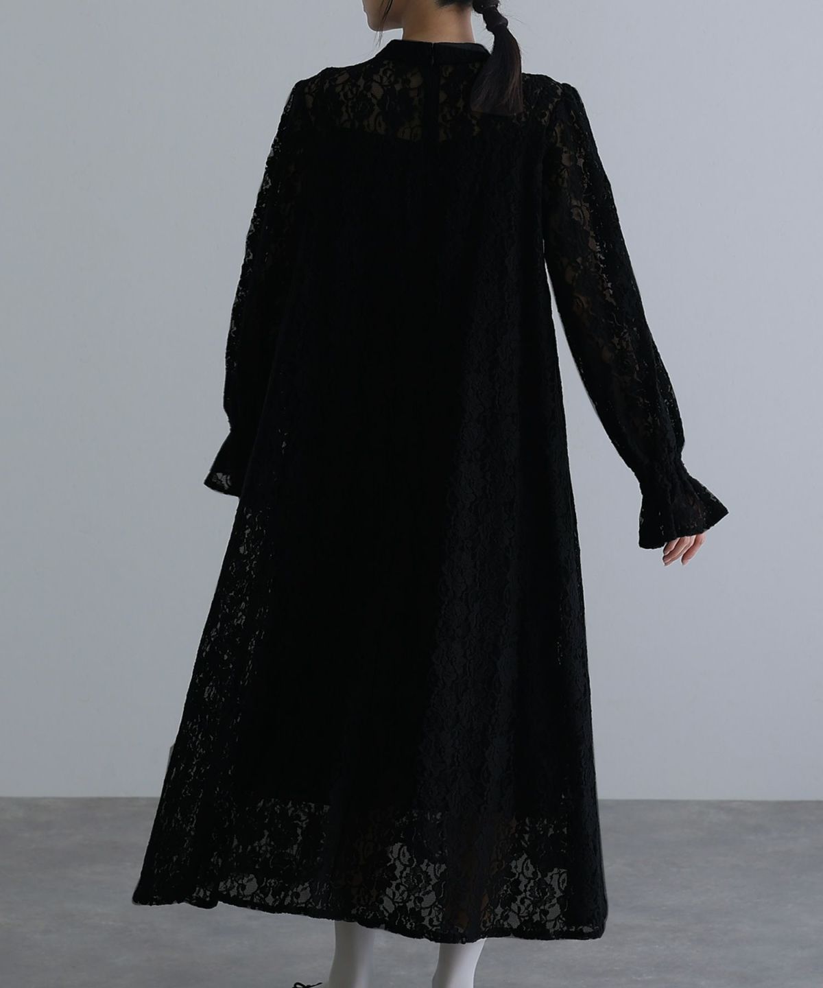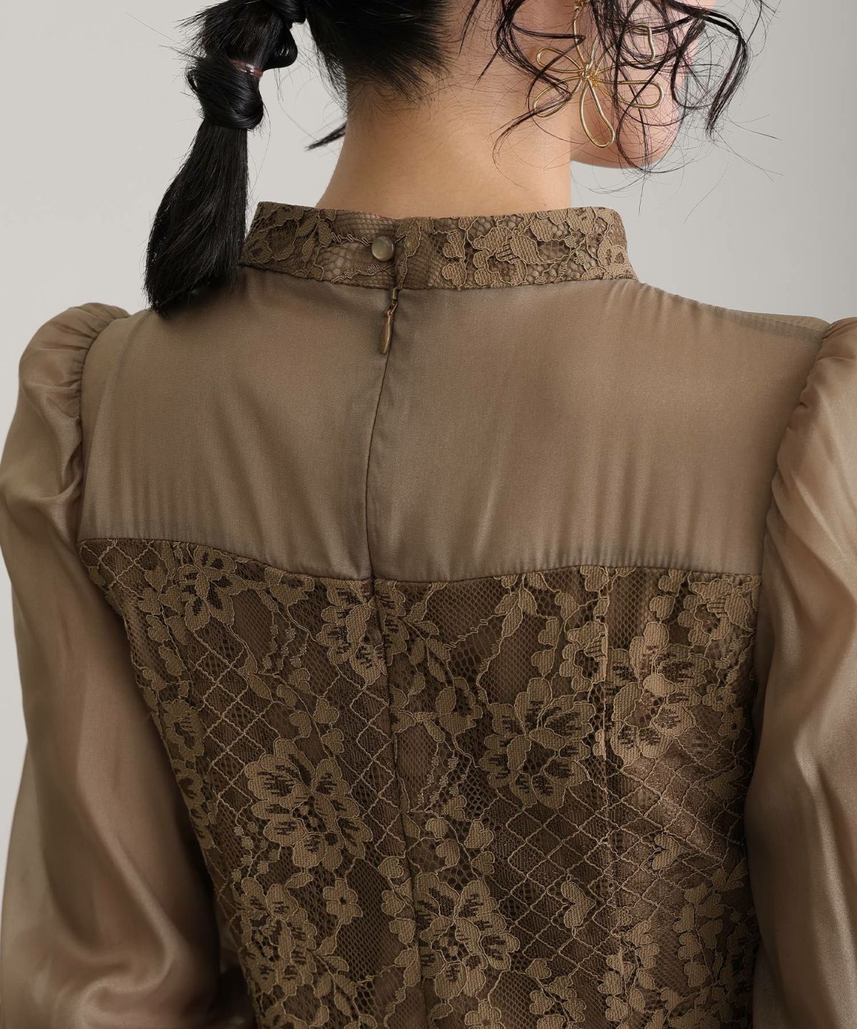 レースとオーガンジー素材の組み合わせが華やか レースレイヤードワンピ―ス