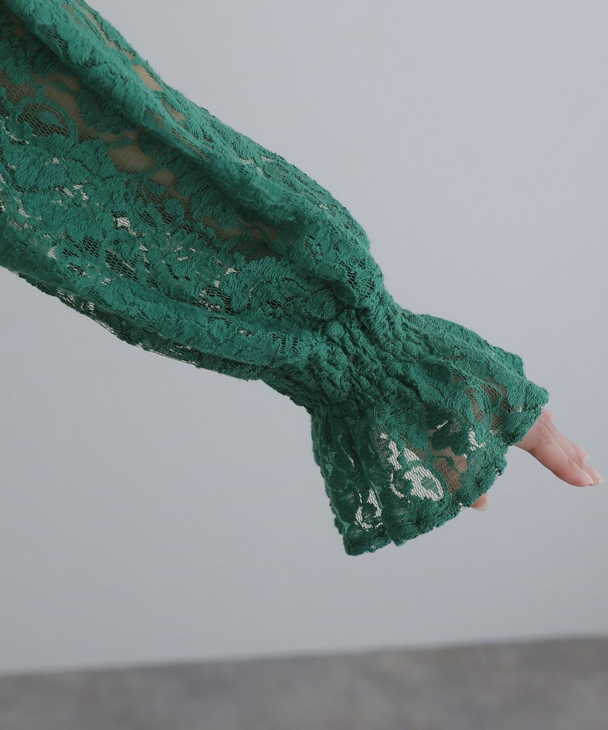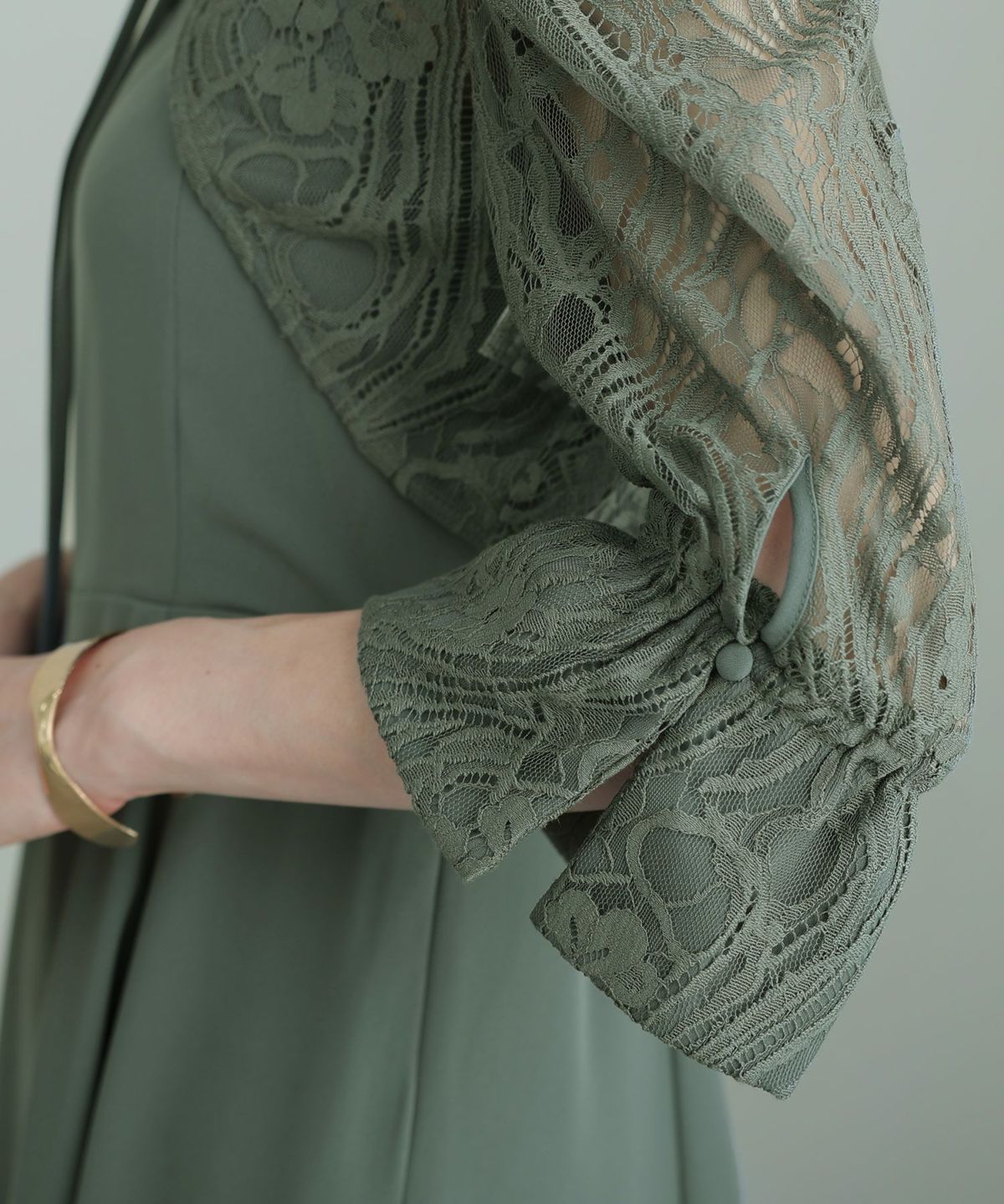 レース×ギャザースリーブ レース切り替えギャザースリーブワンピース