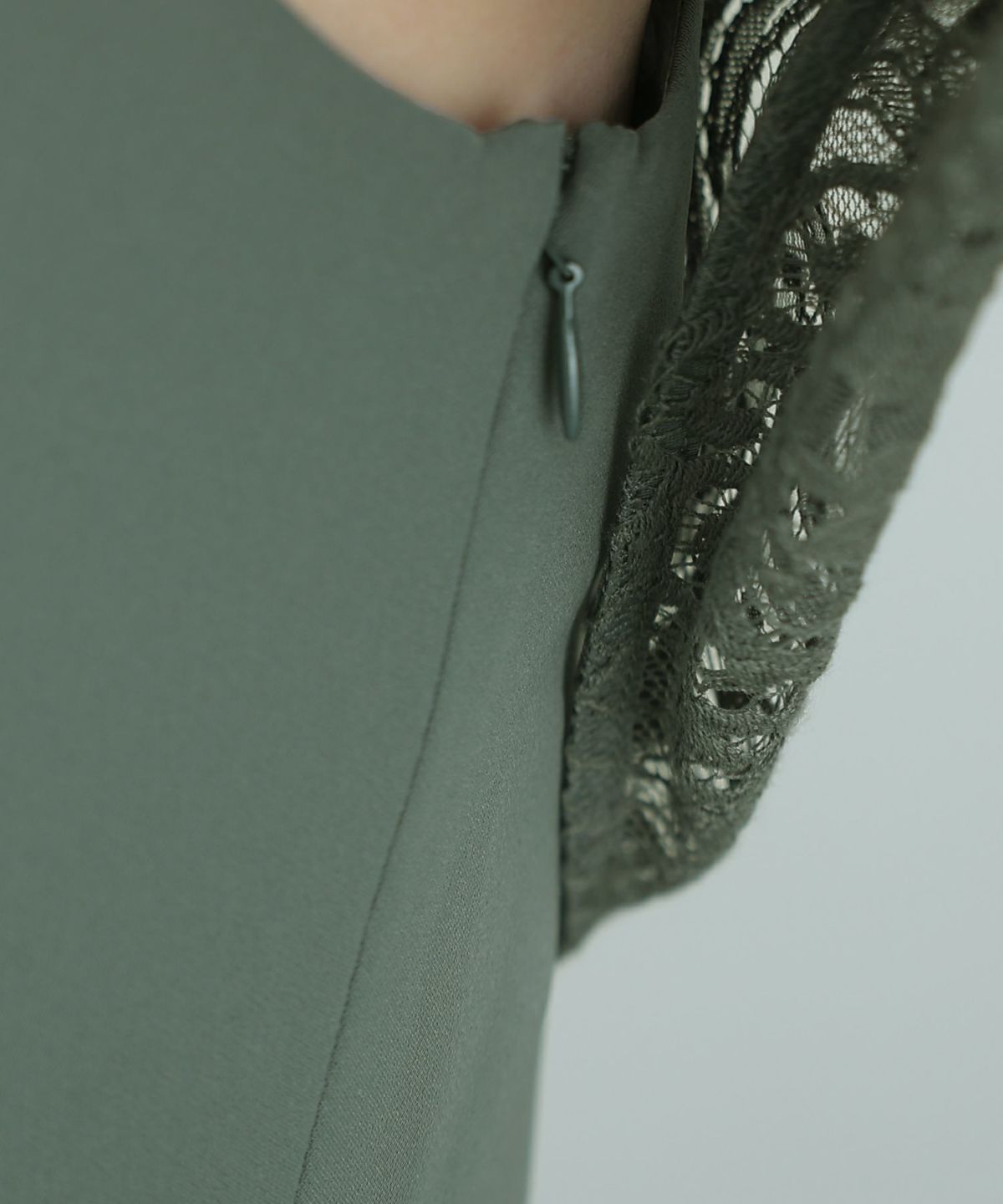 上品なレースを使用したキャンディスリーブ 異素材ミックスタイトワンピース