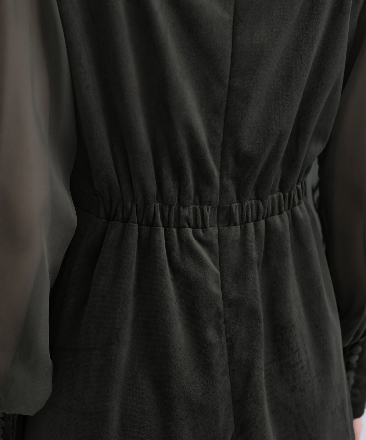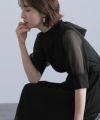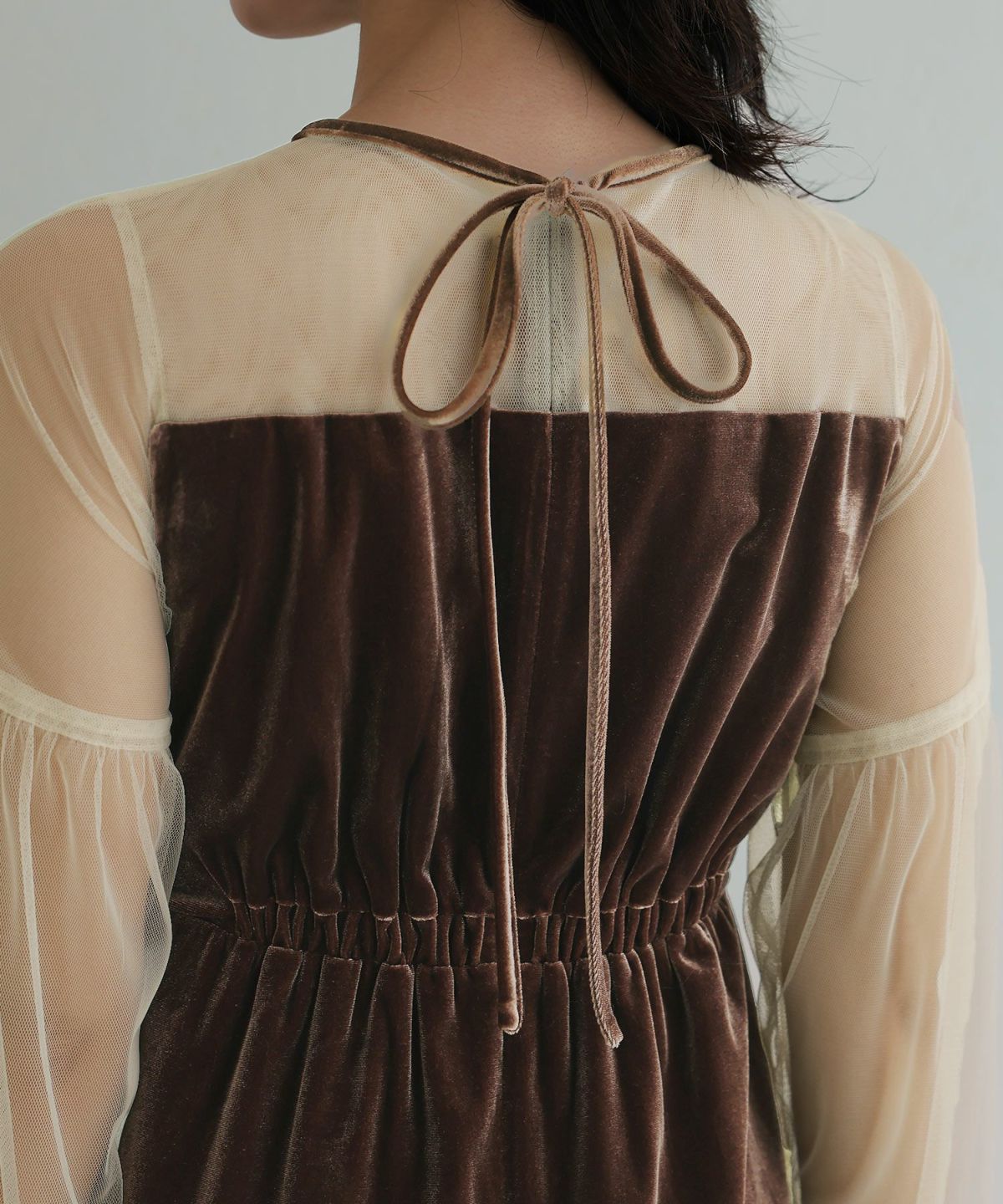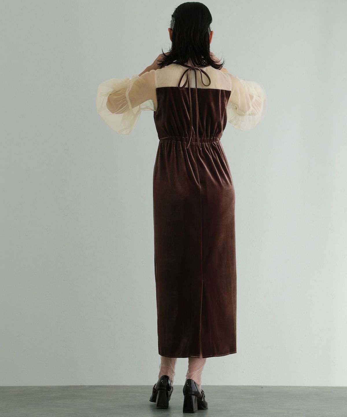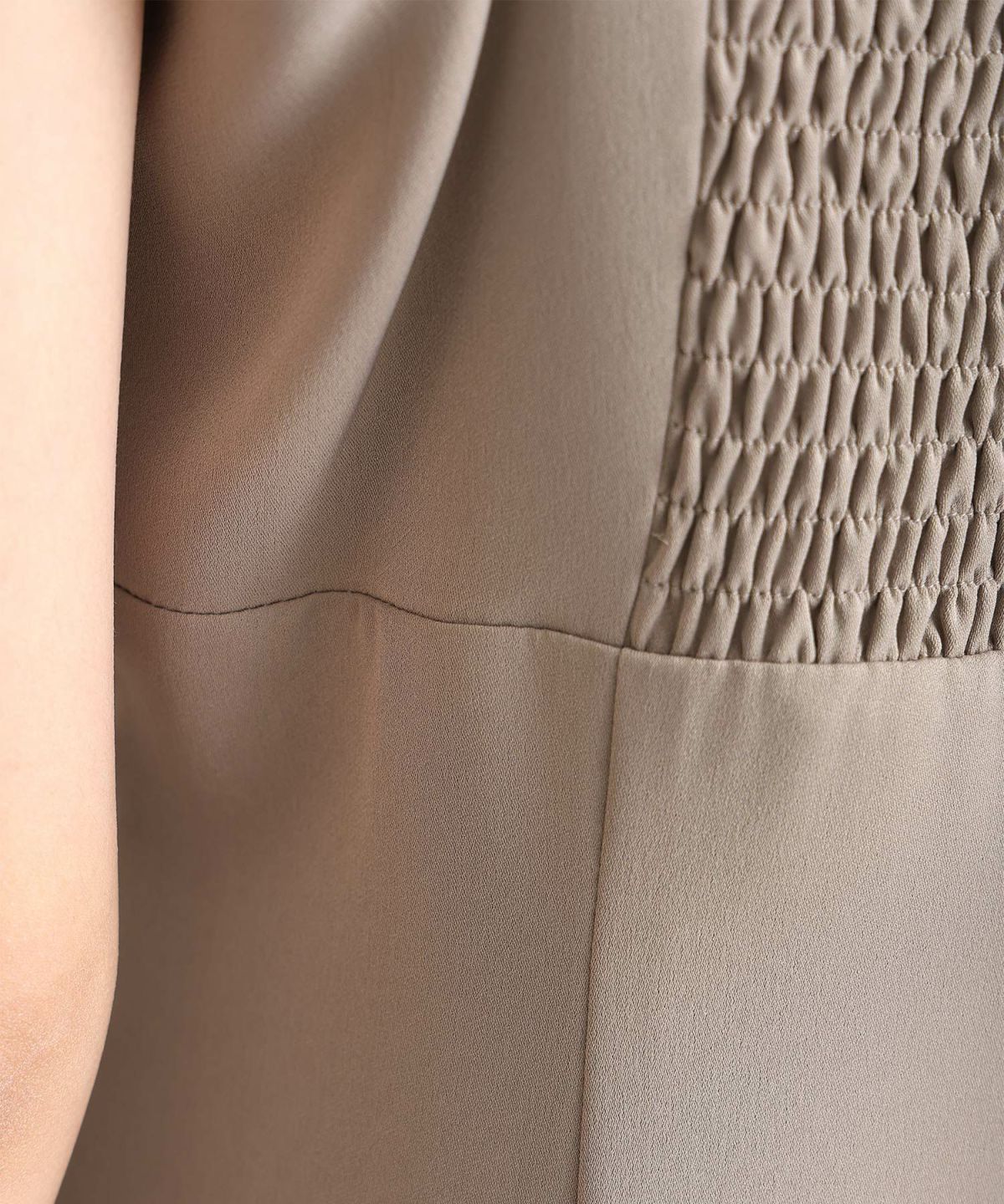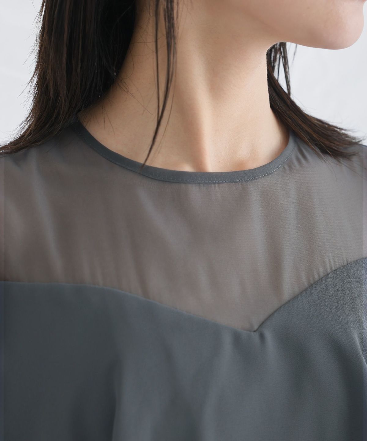 袖口のシャーリングでフェミニンな雰囲気に オーガンジー切り替えビスチェ風ワンピース