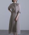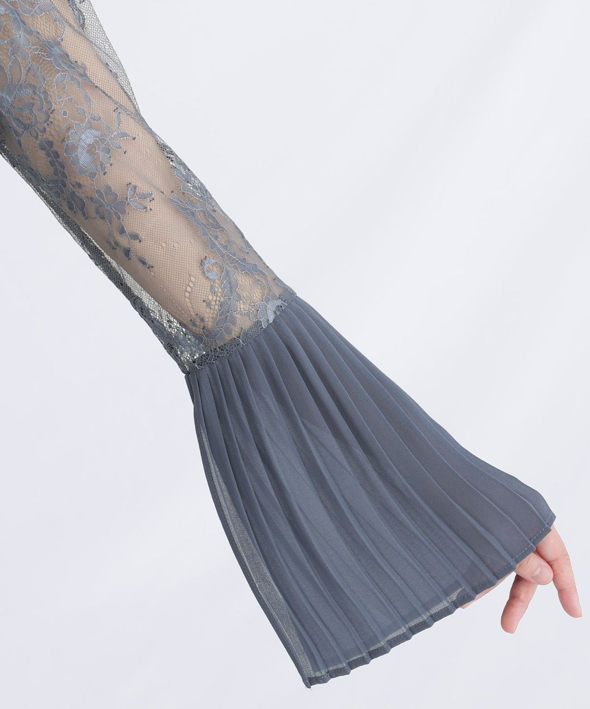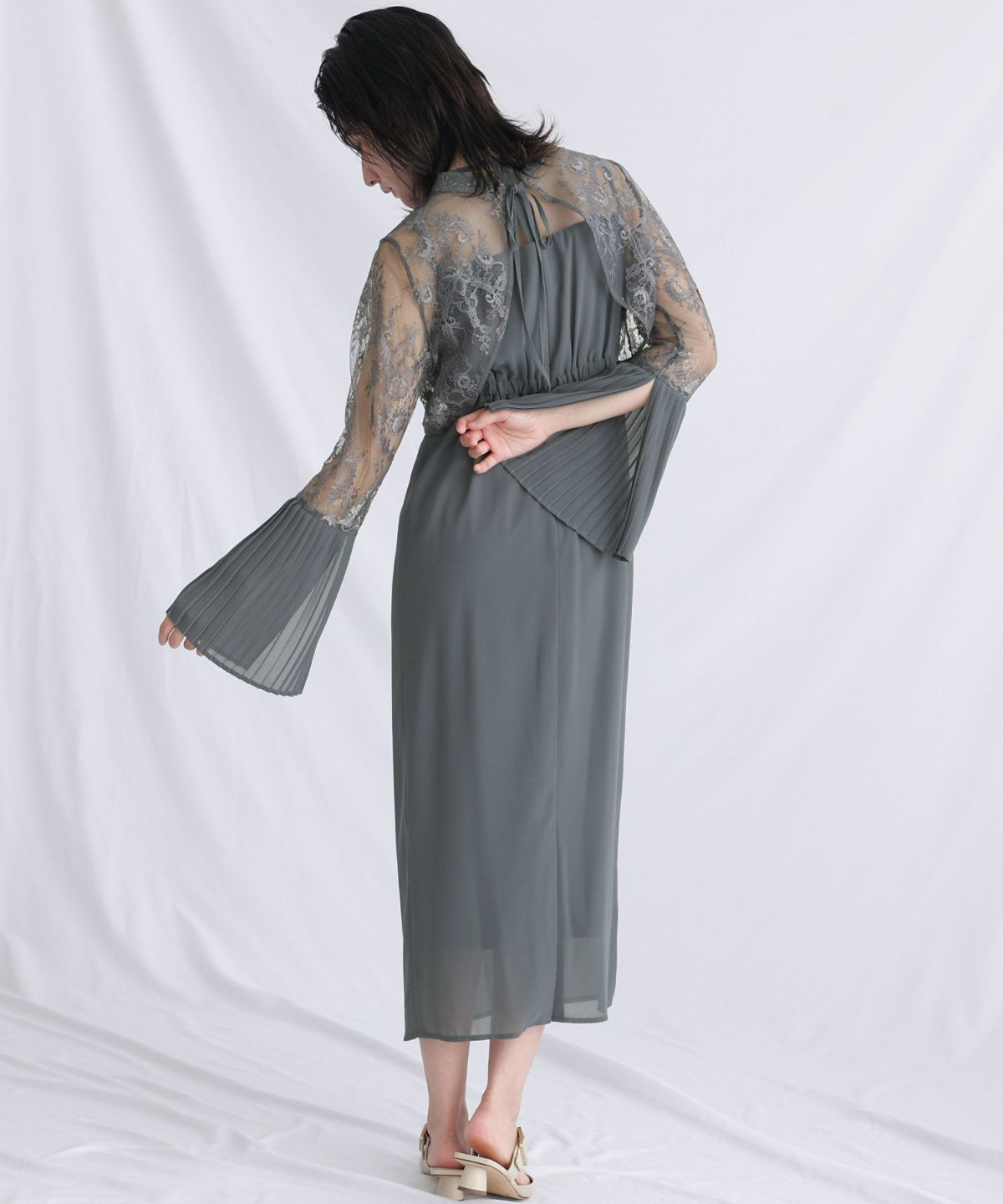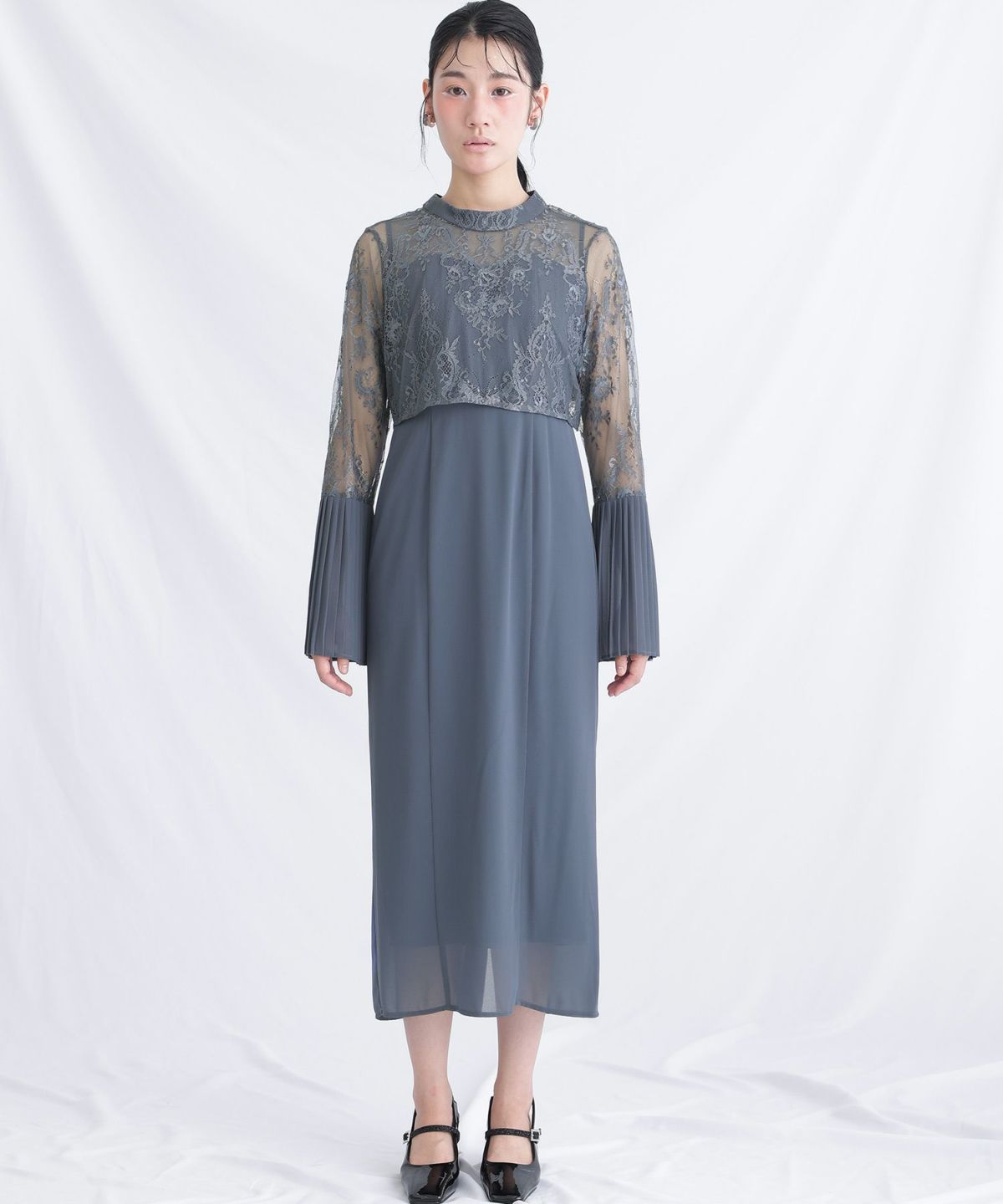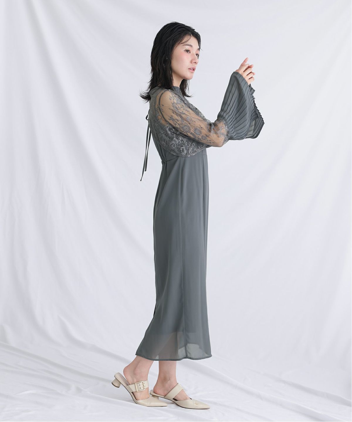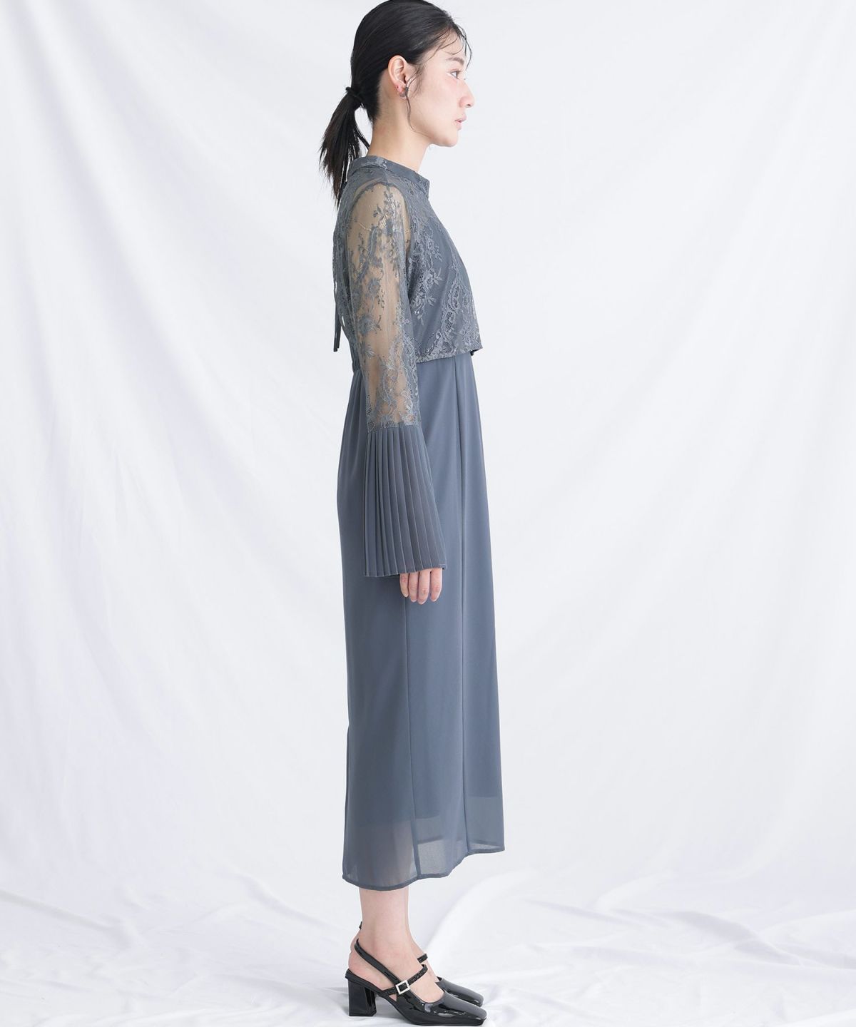 シャーリングが施された袖がふわりとかわいい レース×シフォンプリーツワンピース