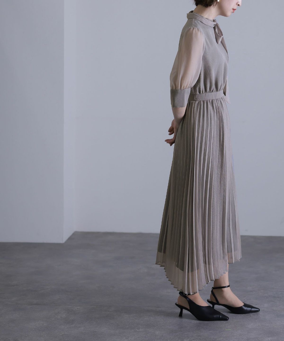 こなれ感を演出するシンプルなデザイン ラメシフォンプリーツワンピース