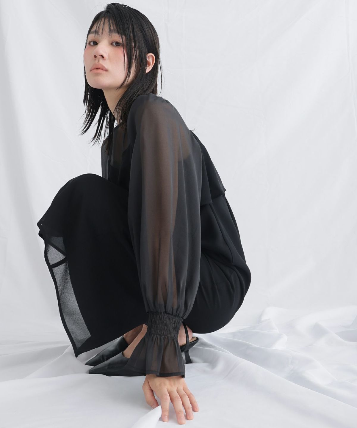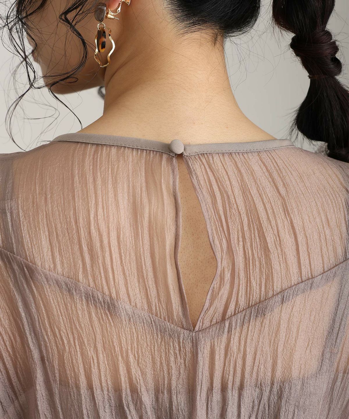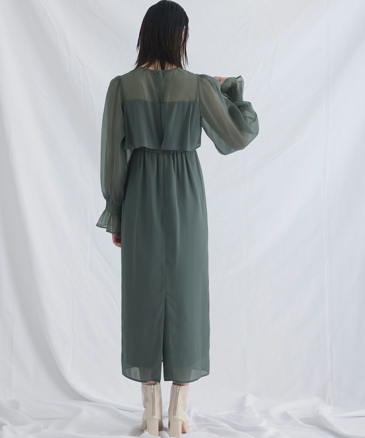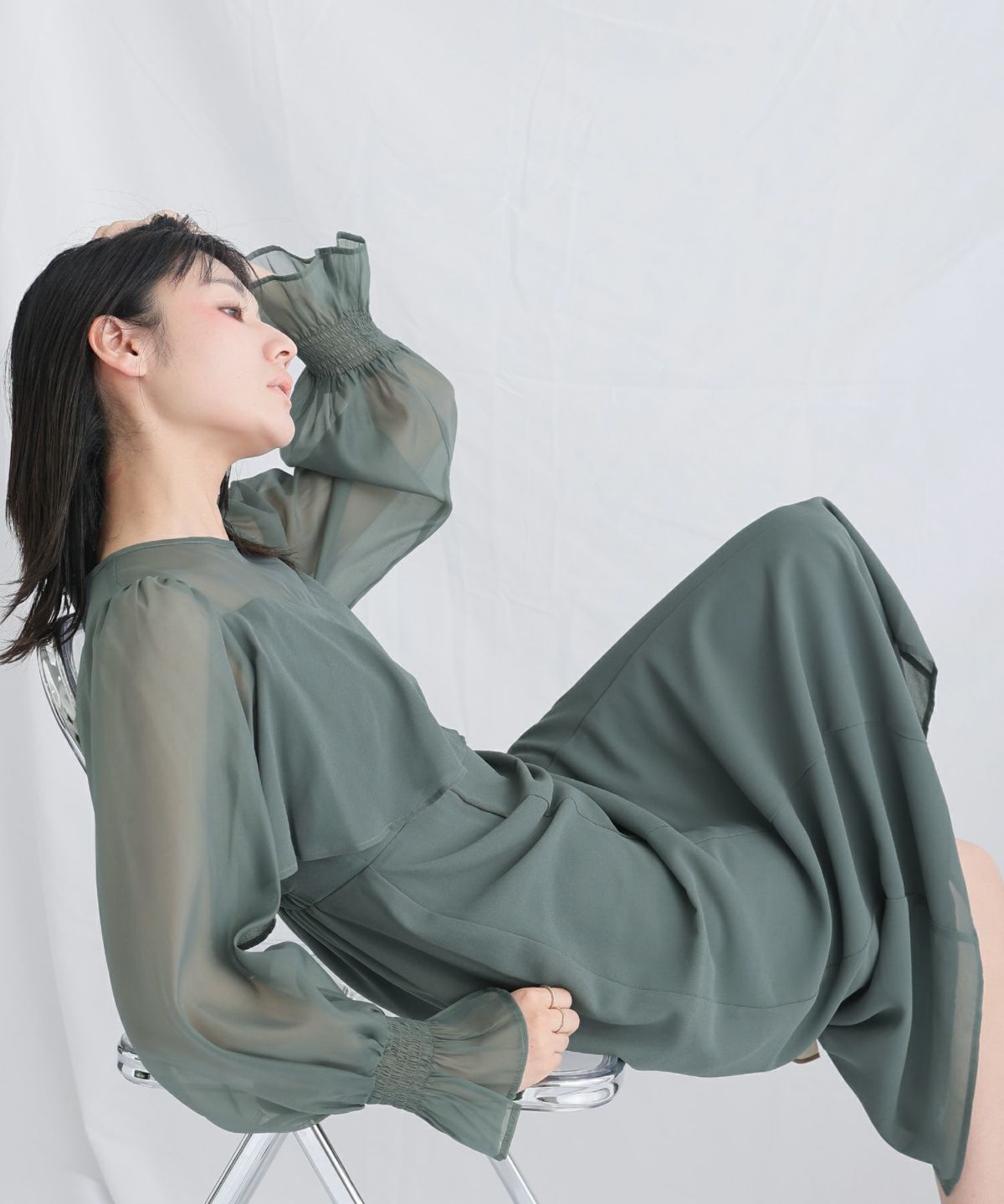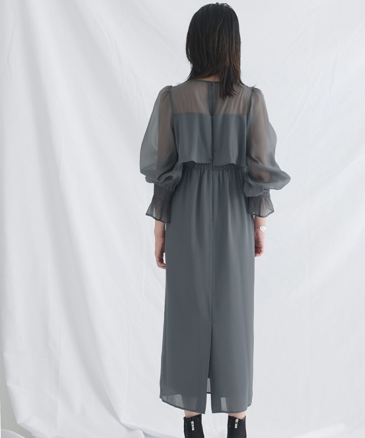 程よい透け感が上品な印象に ボリュームスリーブバックシャンワンピース