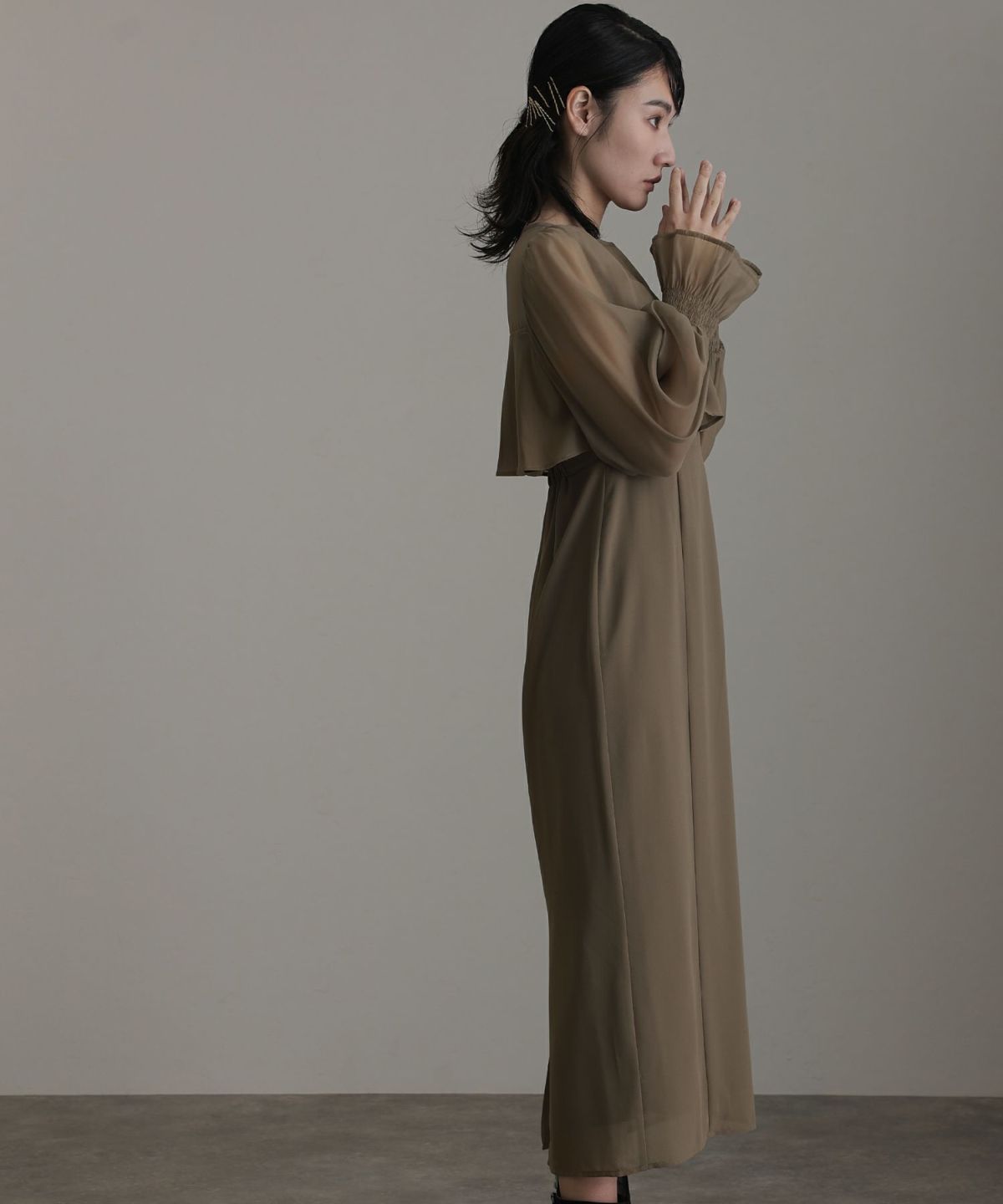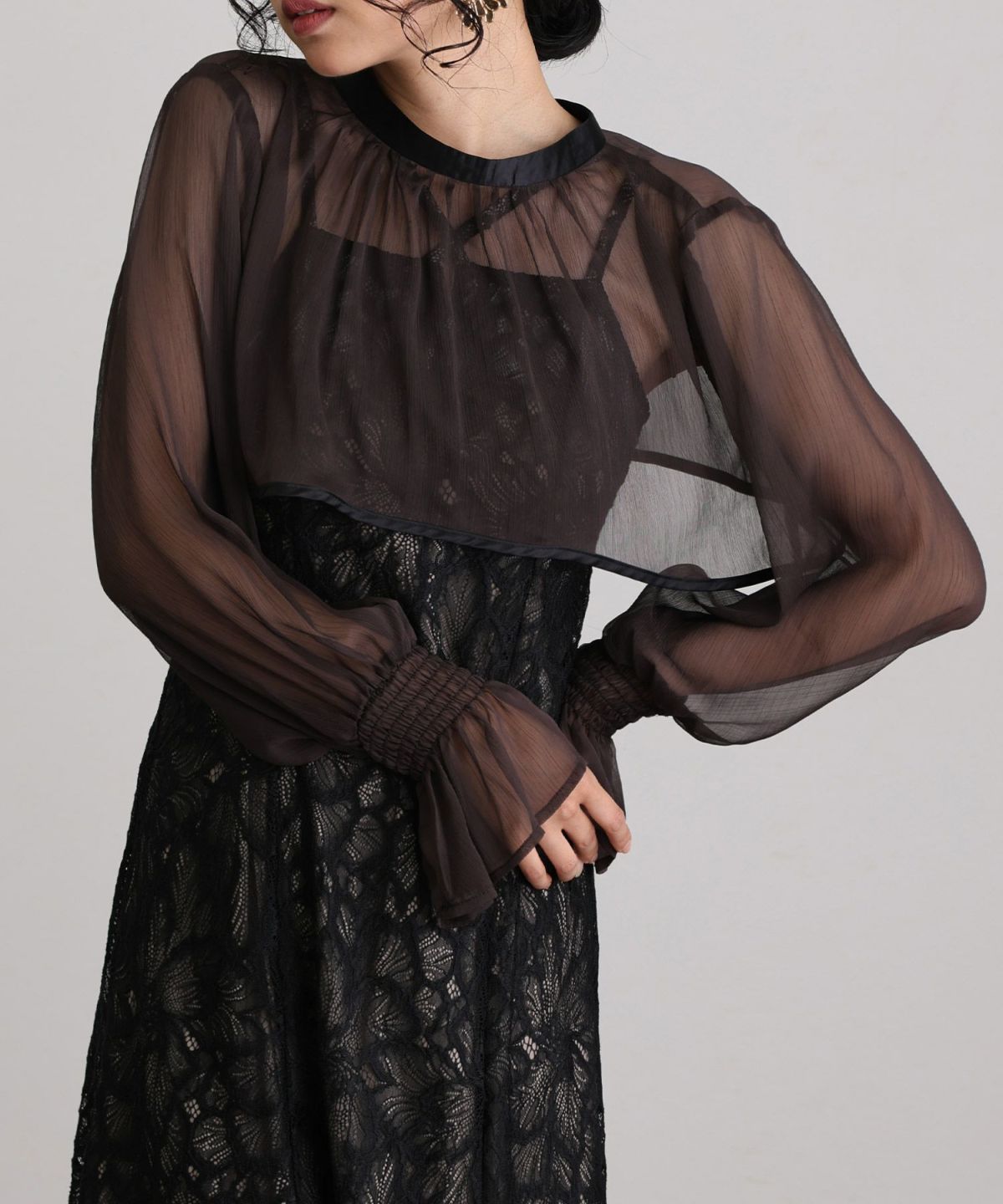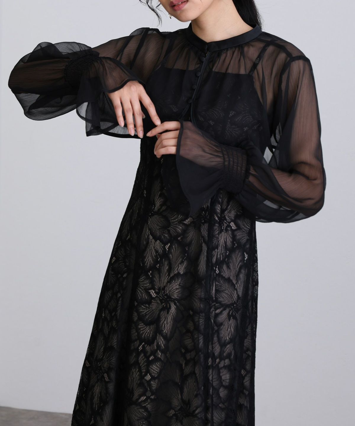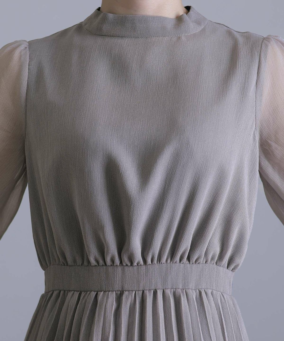 程よい透け感が上品な印象に ボリュームスリーブバックシャンワンピース
