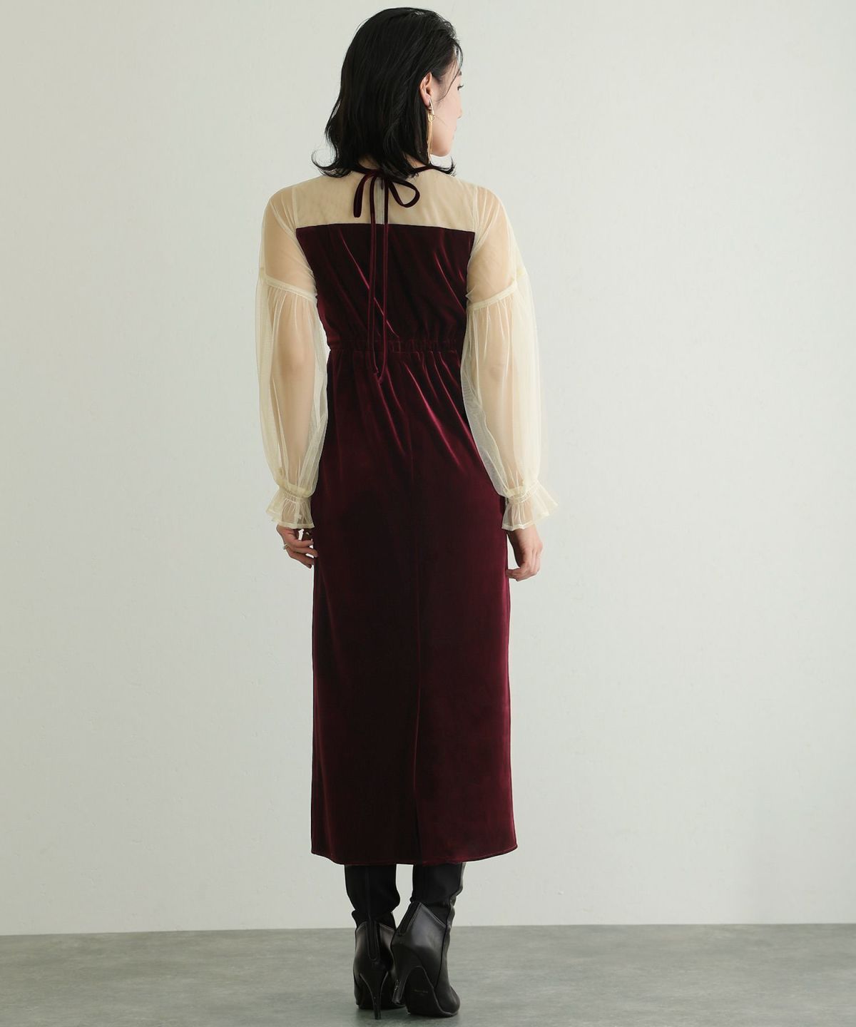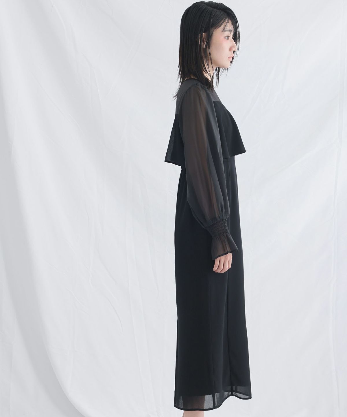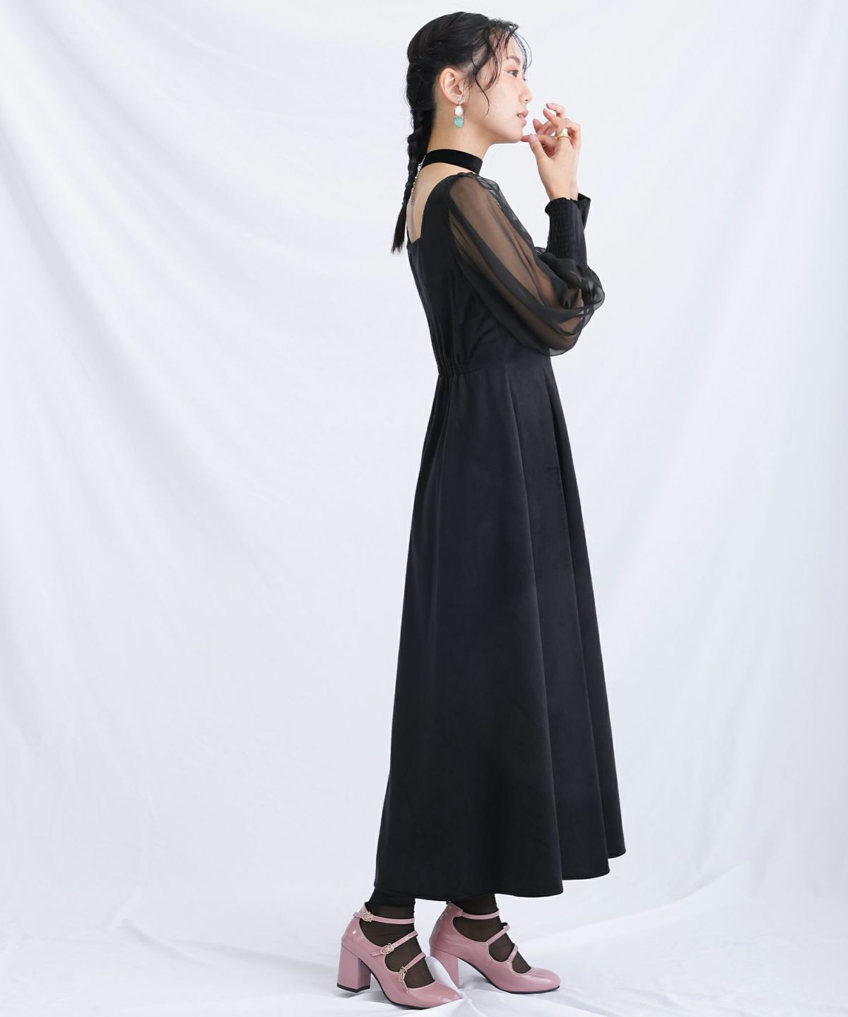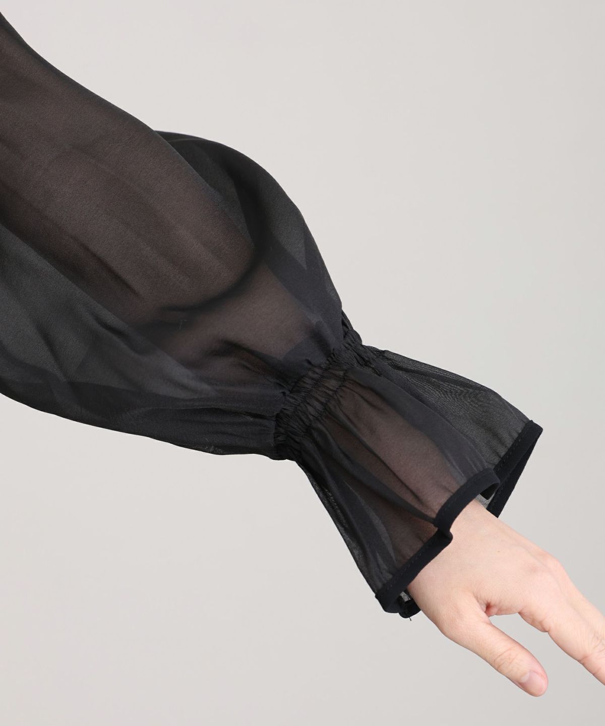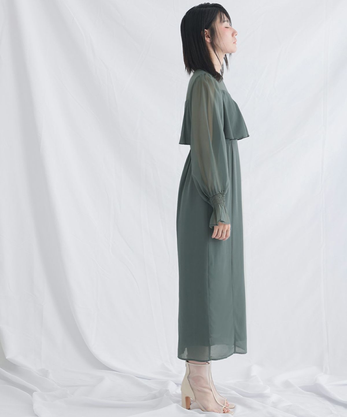 程よい透け感が上品な印象に ボリュームスリーブバックシャンワンピース