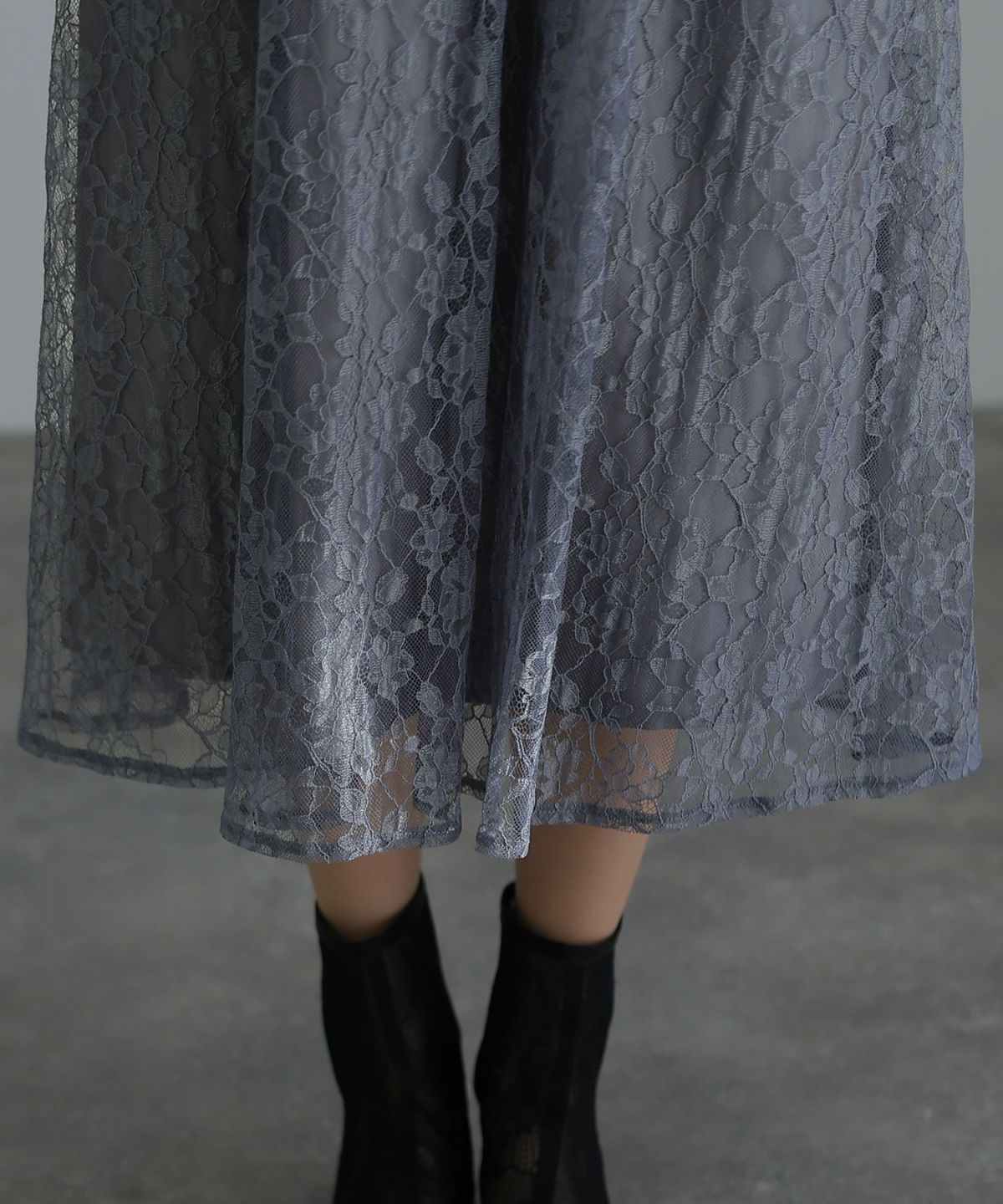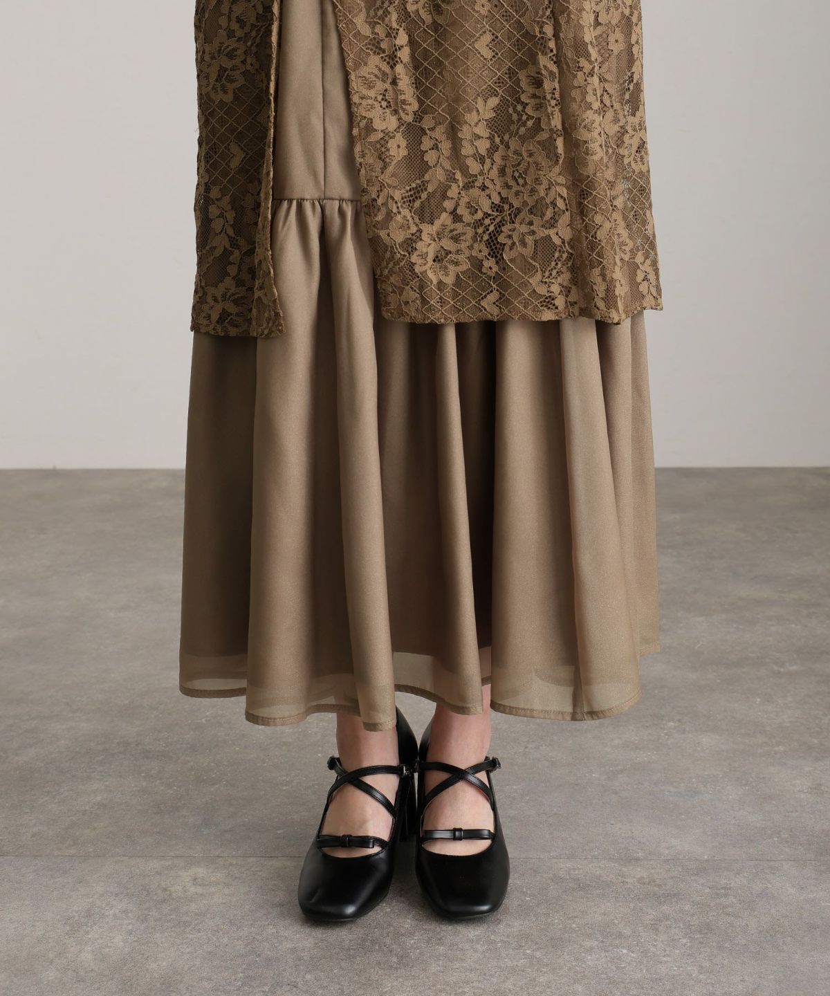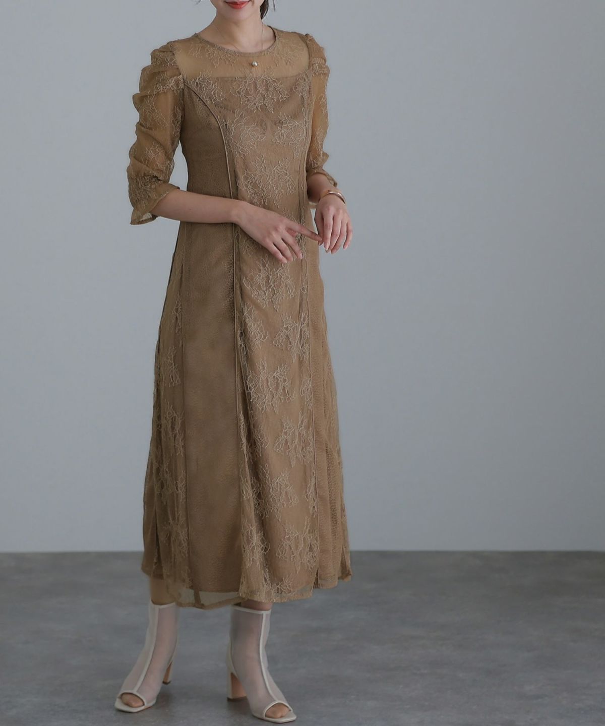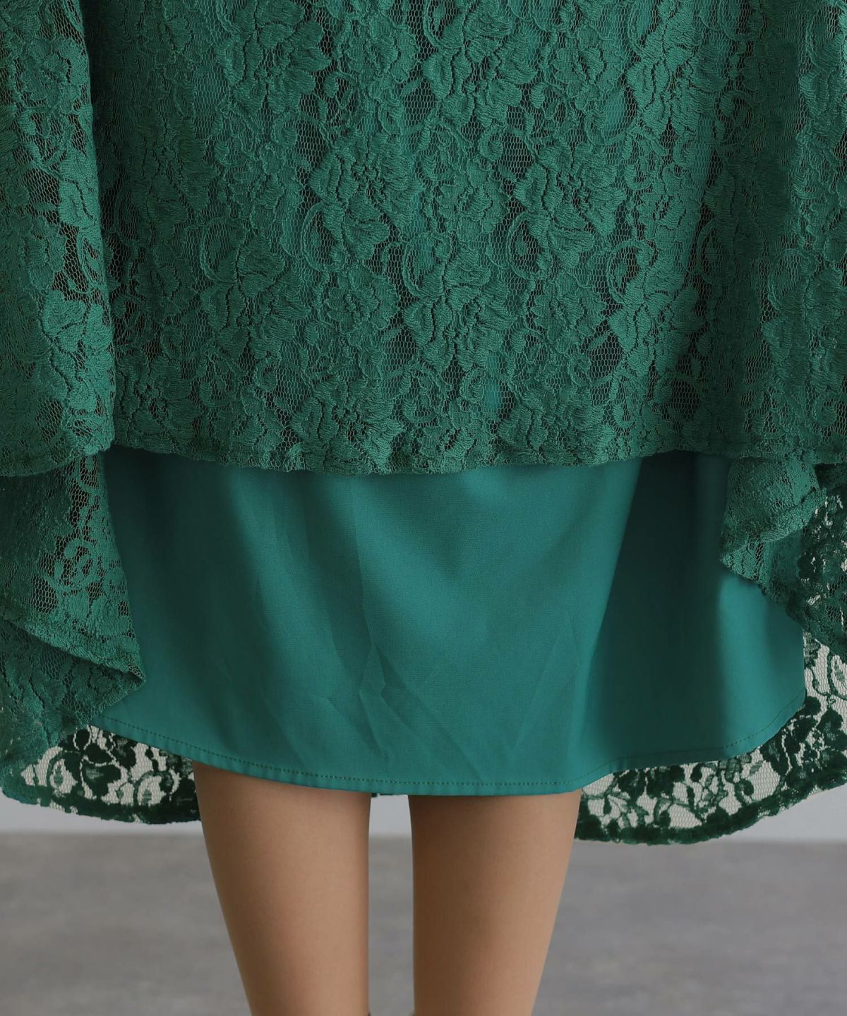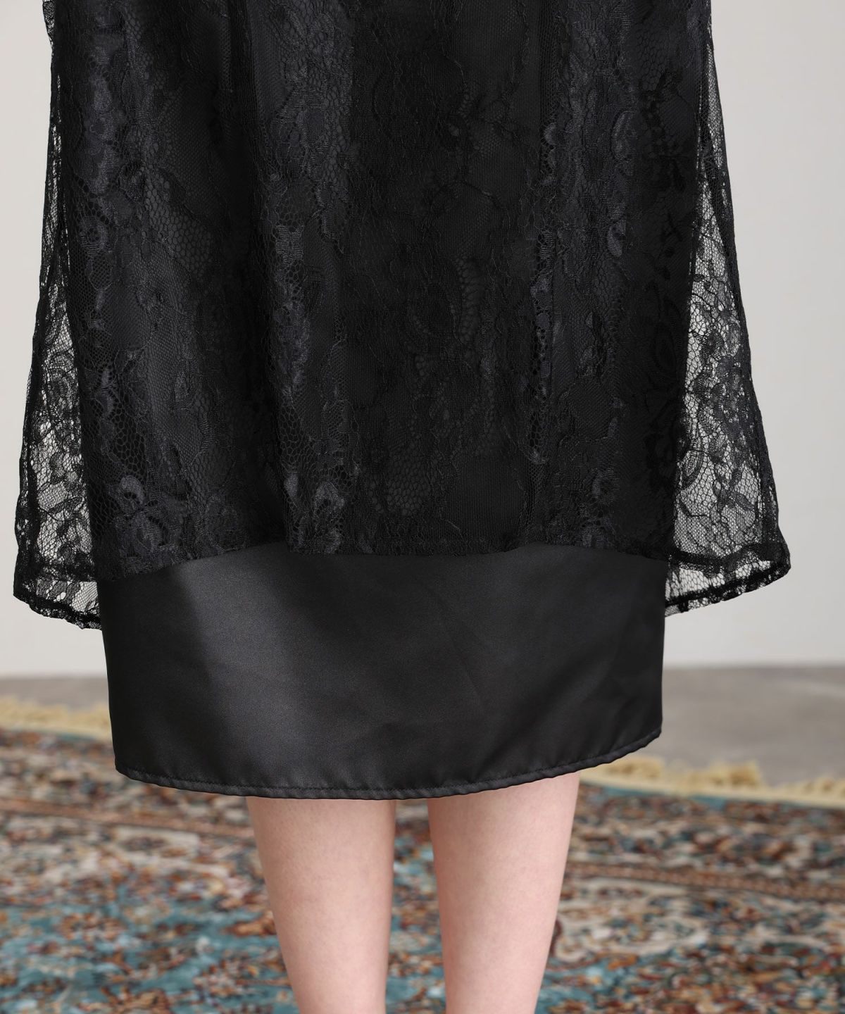 品が際立つレースのレイヤーワンピース レーススカートレイヤードワンピース