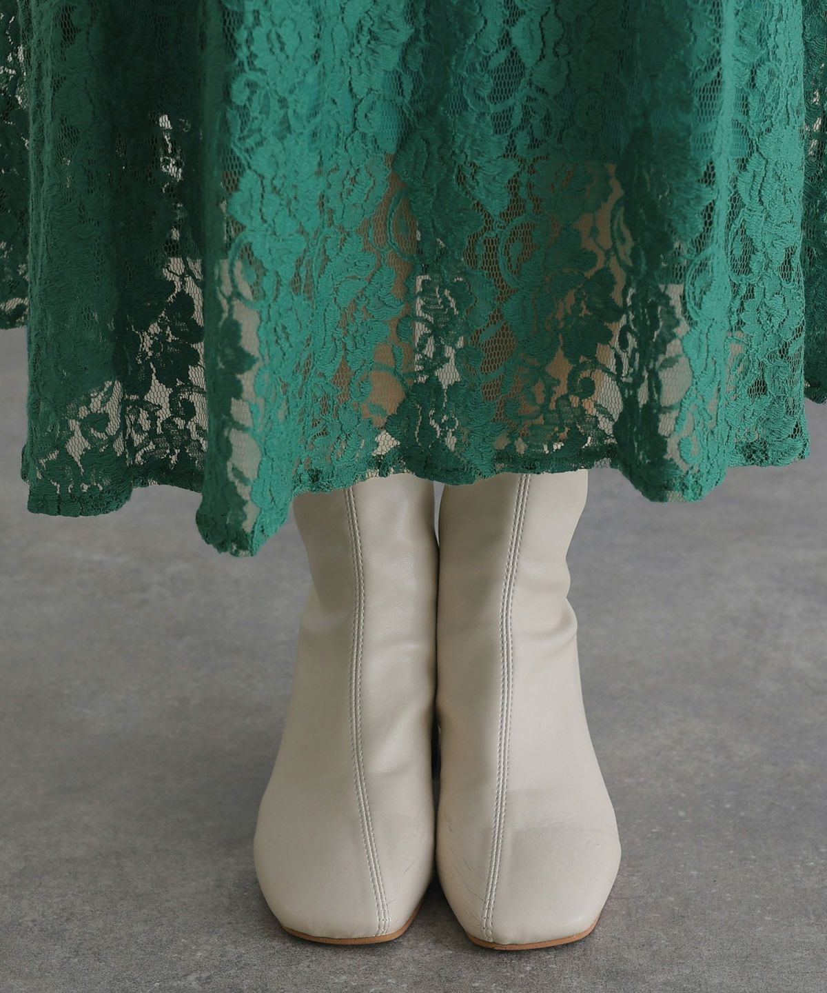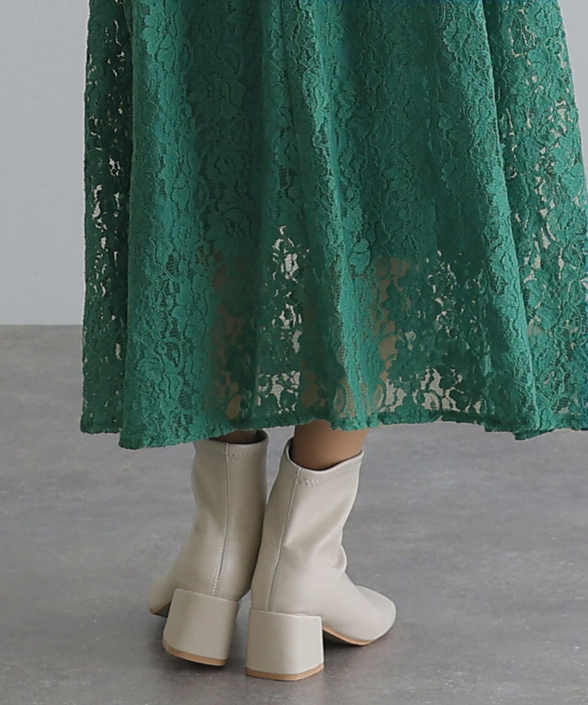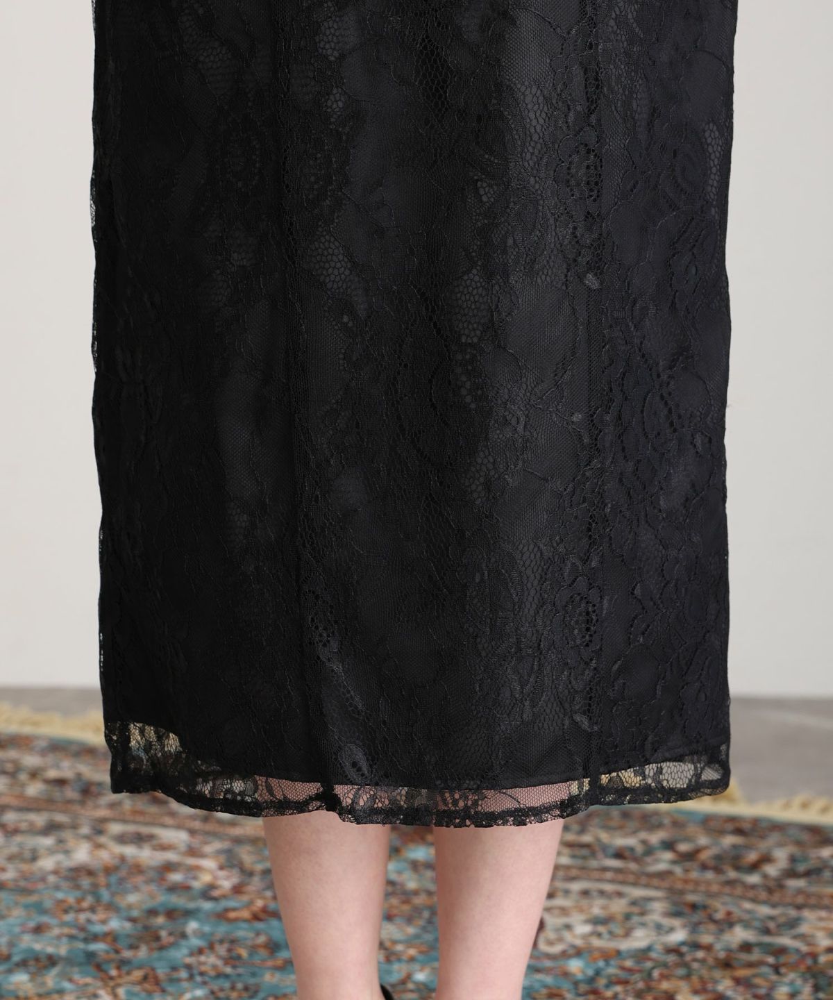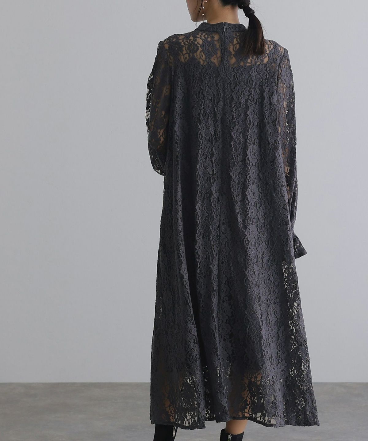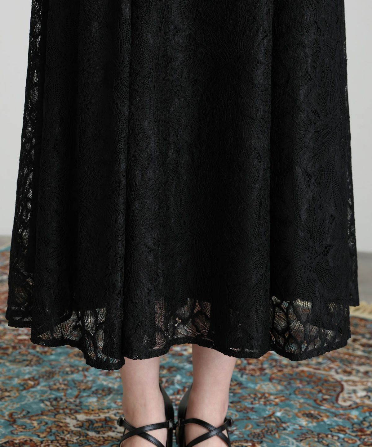 品が際立つレースのレイヤーワンピース レーススカートレイヤードワンピース