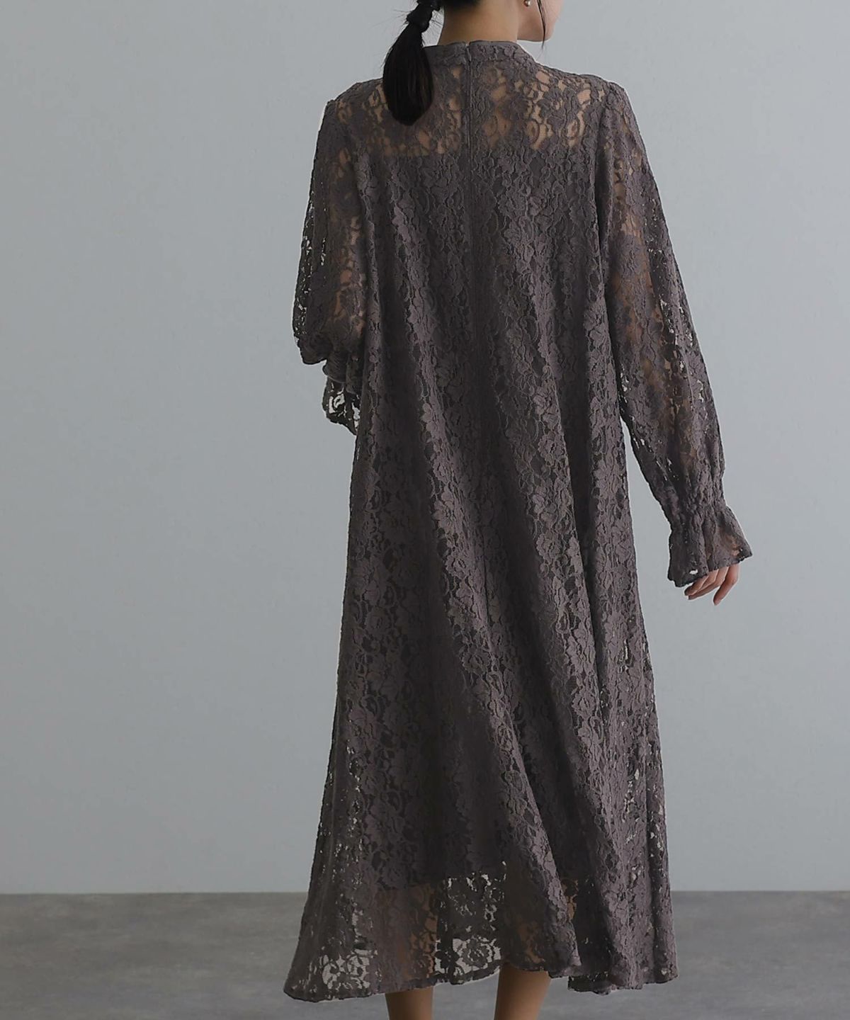 メロンネットレースが目を惹くワンピース メロンネットレースガウンワンピース