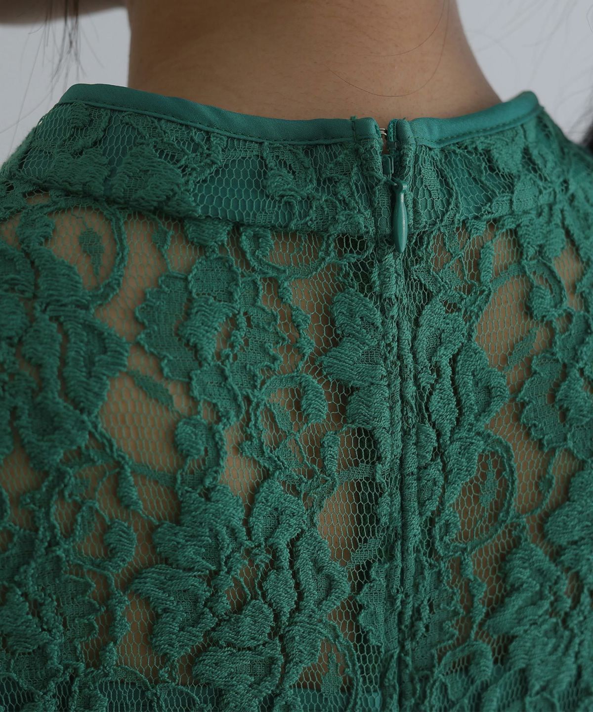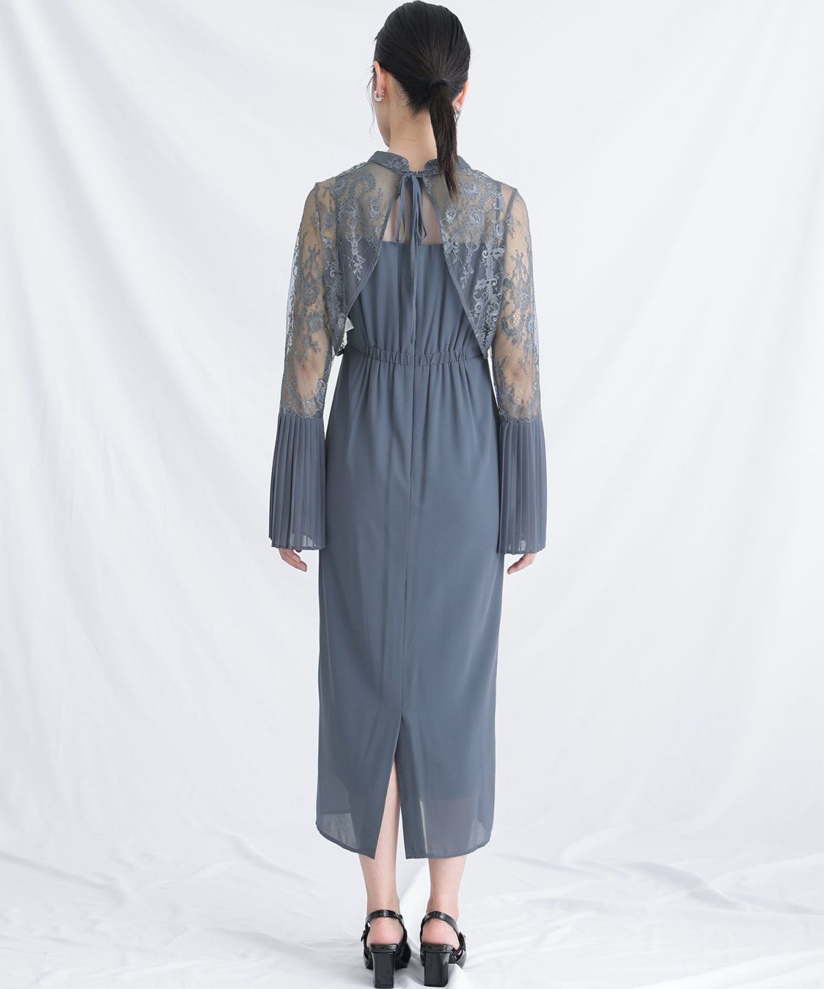 レースの程よい透け感が女性らしさを演出 ベルスリーブスリットドレス