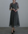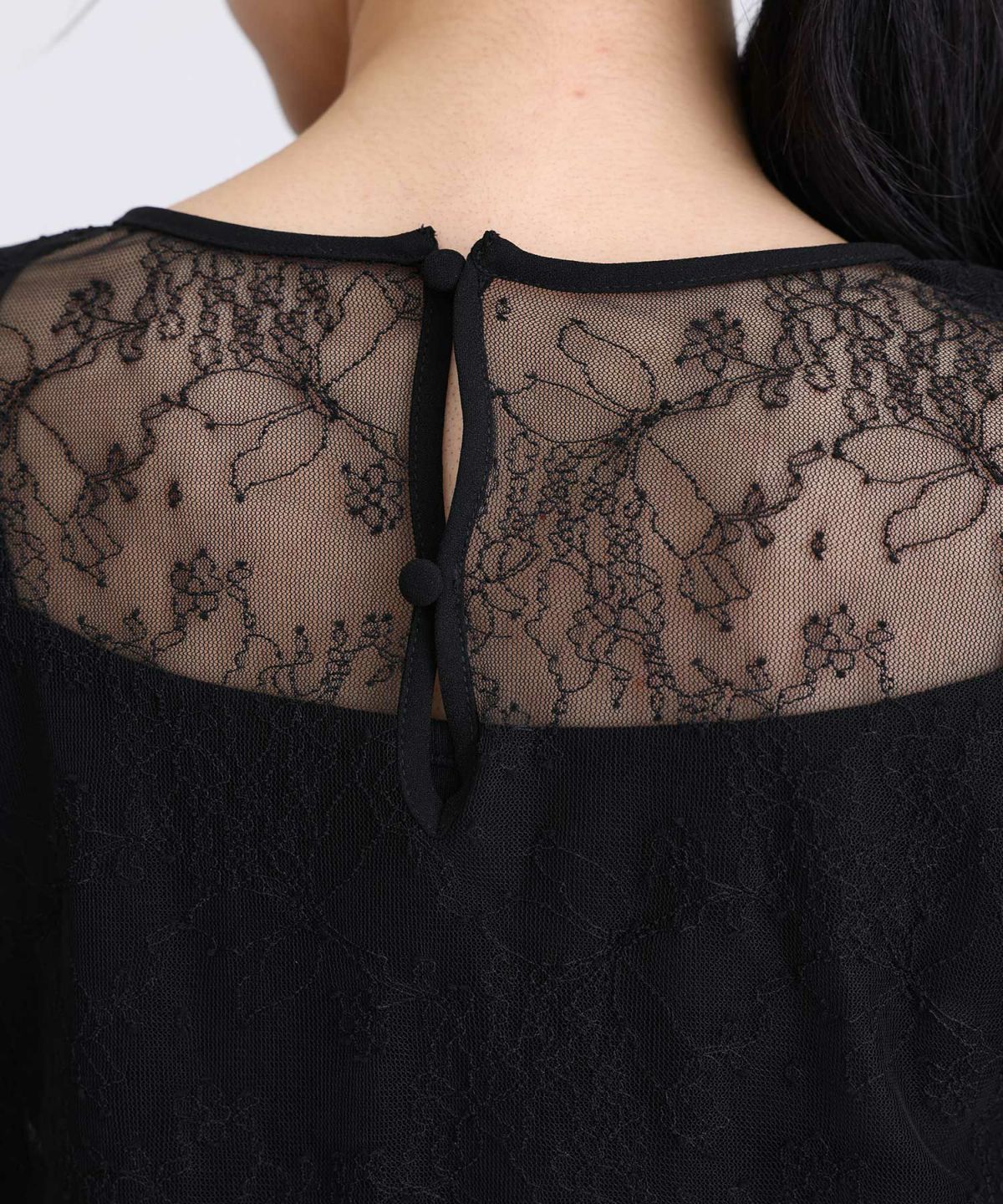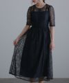 立体感があるケミカルレースとチュールの切り替えがお洒落 チュール切替ケミカルレースワンピース