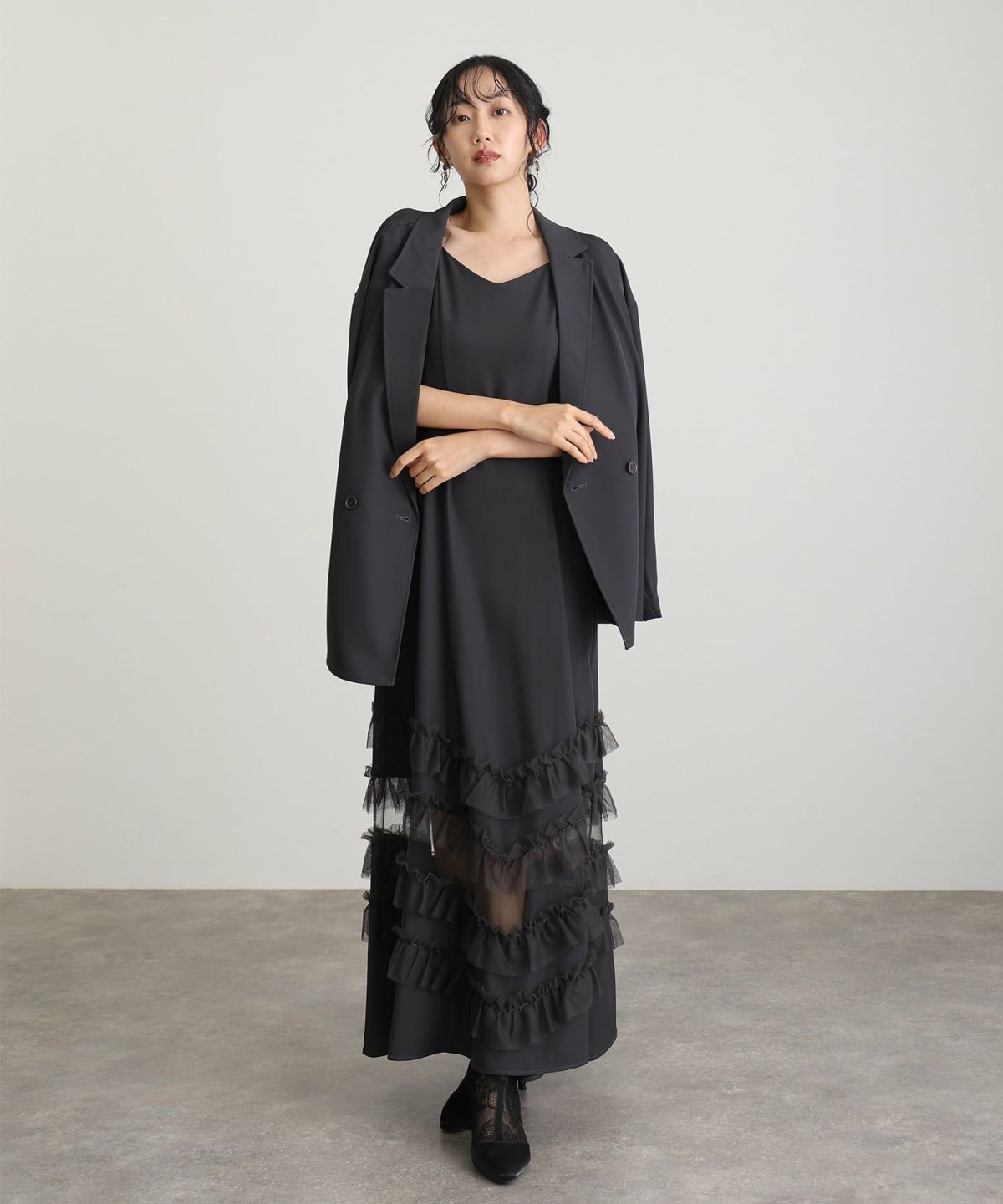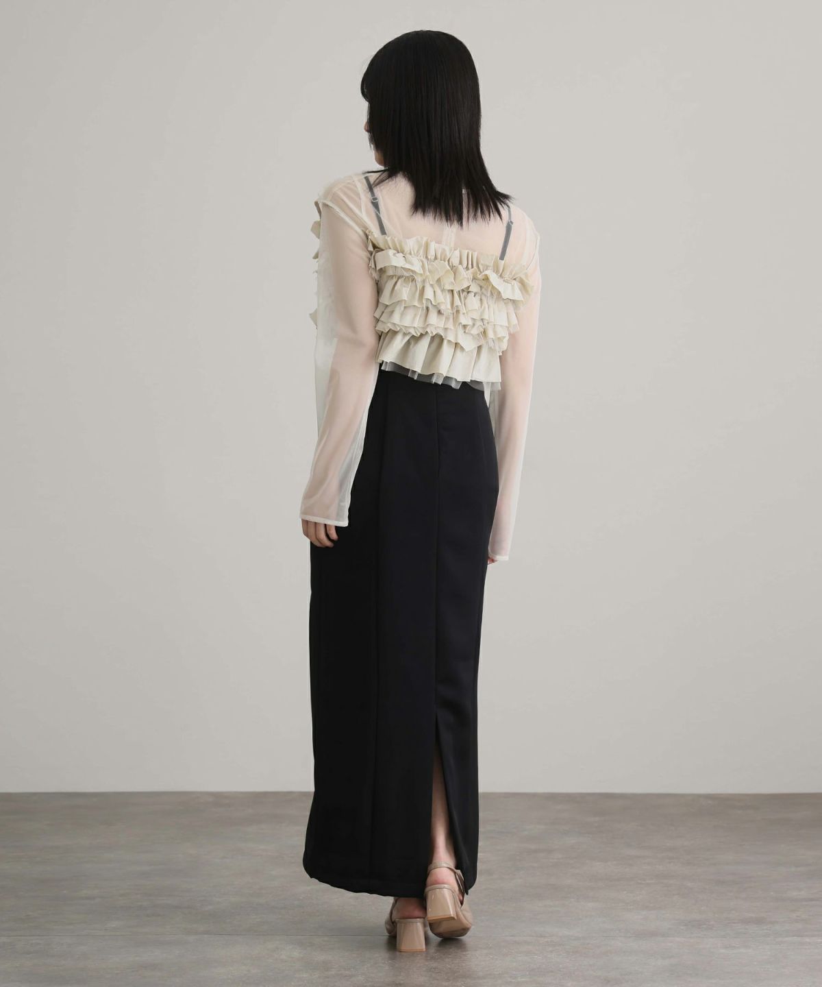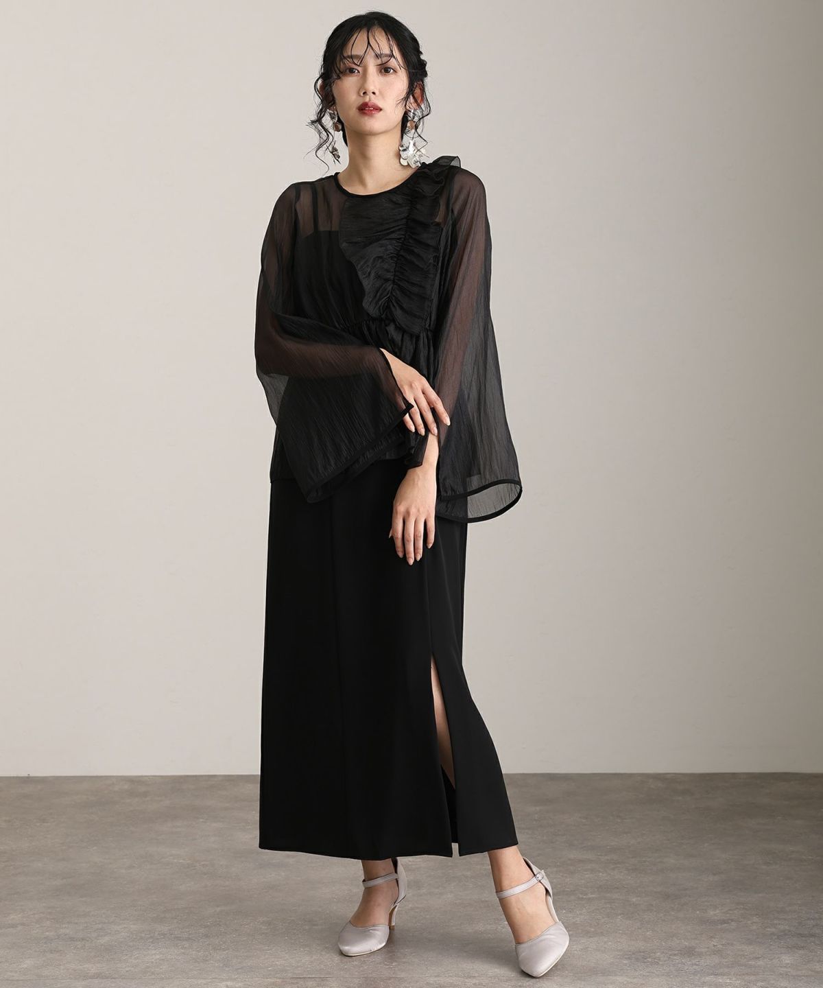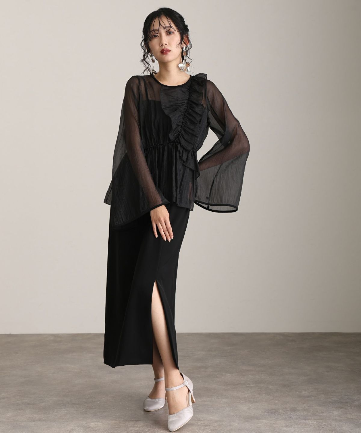 視線を惹きつけるチュールフリル トランスペアレントヘムセットアップドレス 2点セッ