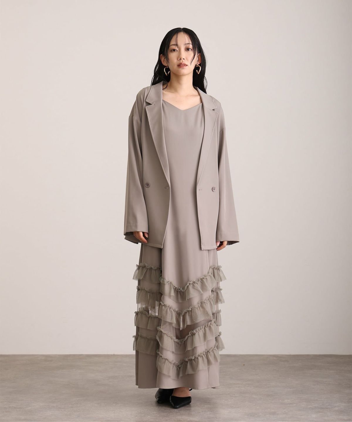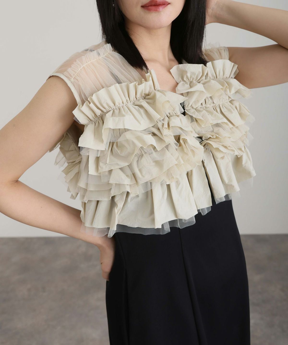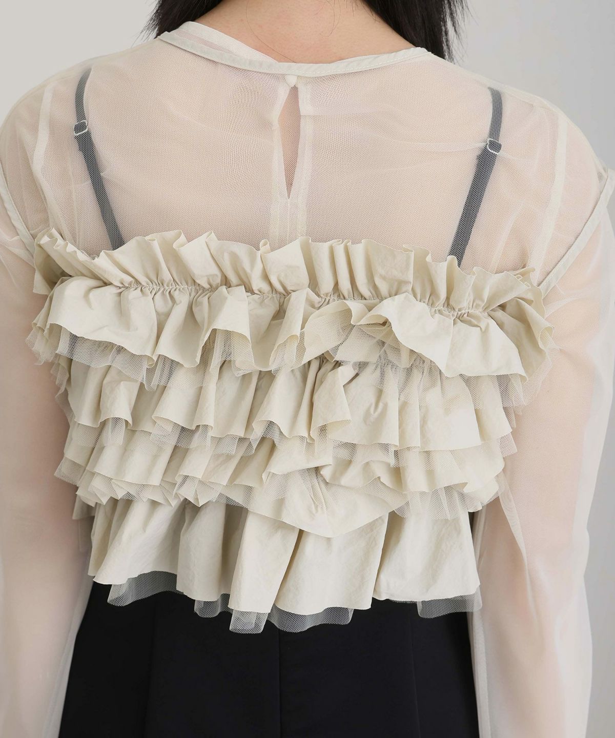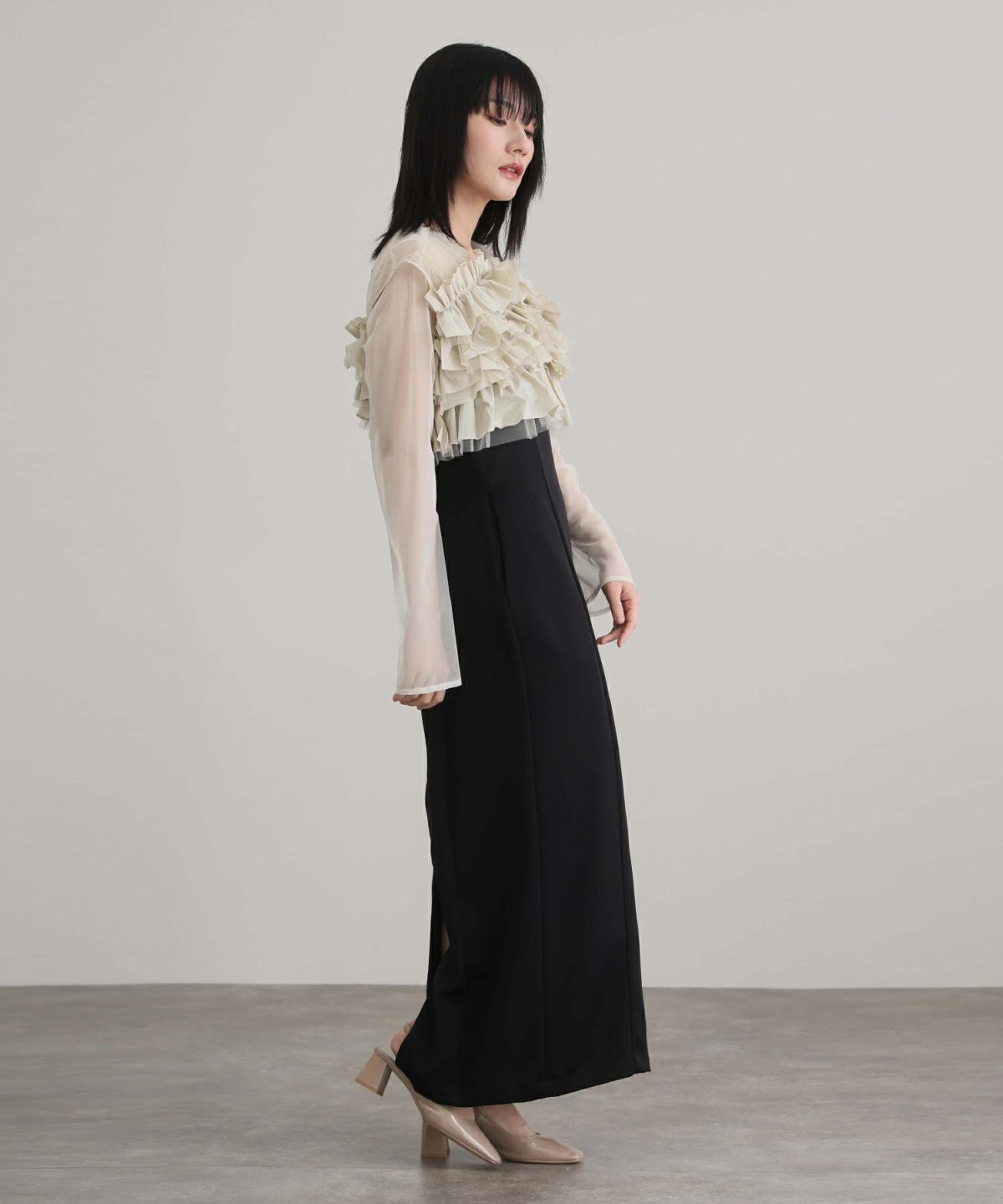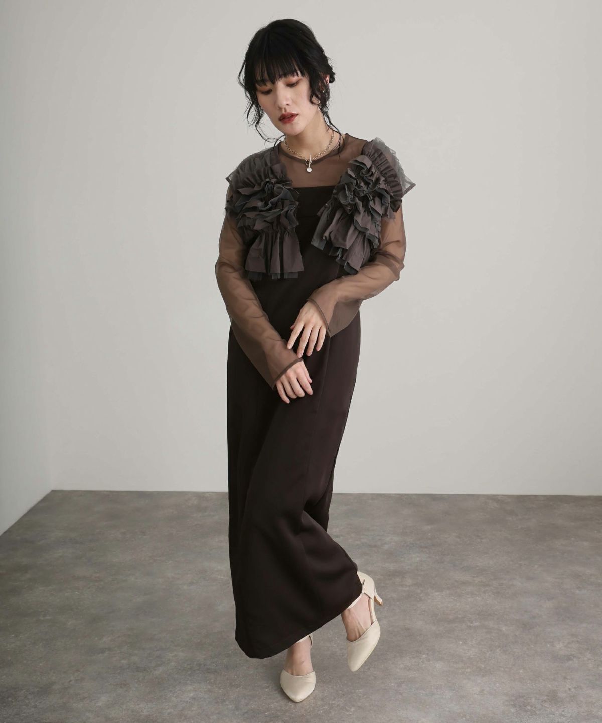 視線を惹きつけるチュールフリル トランスペアレントヘムセットアップドレス 2点セッ