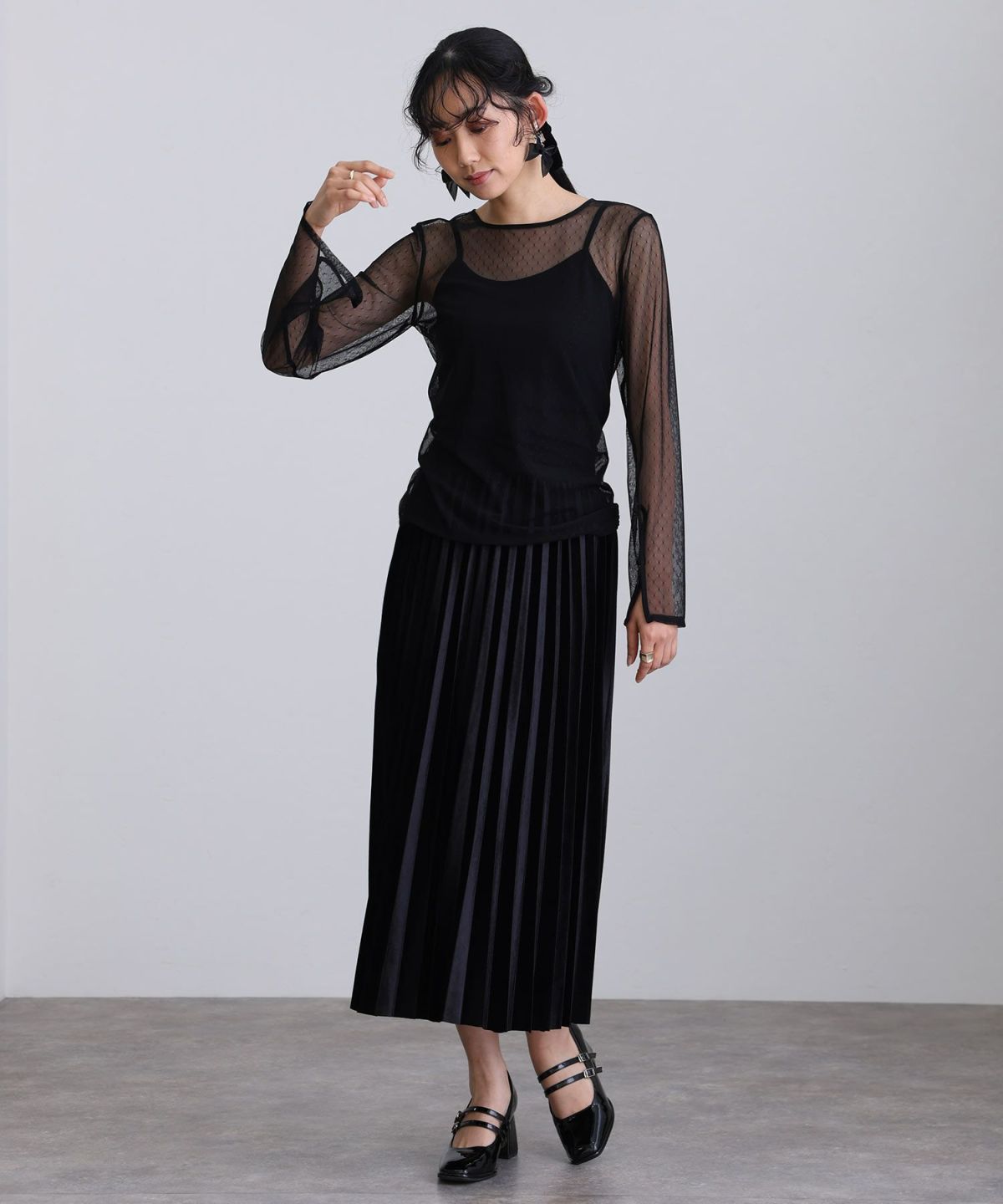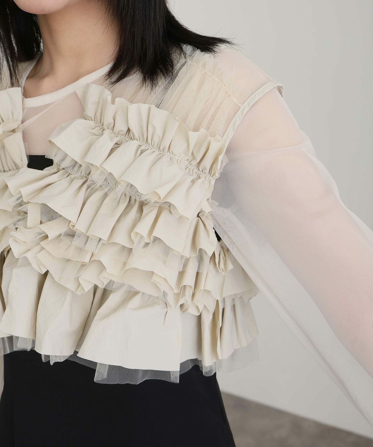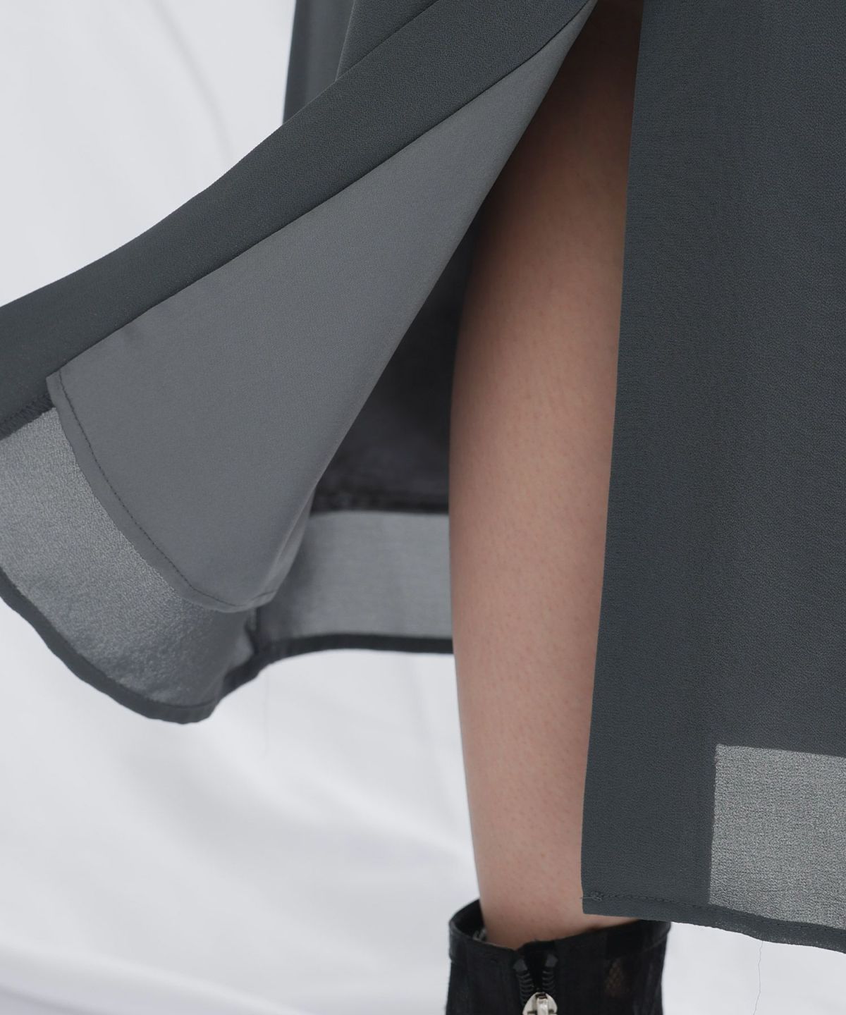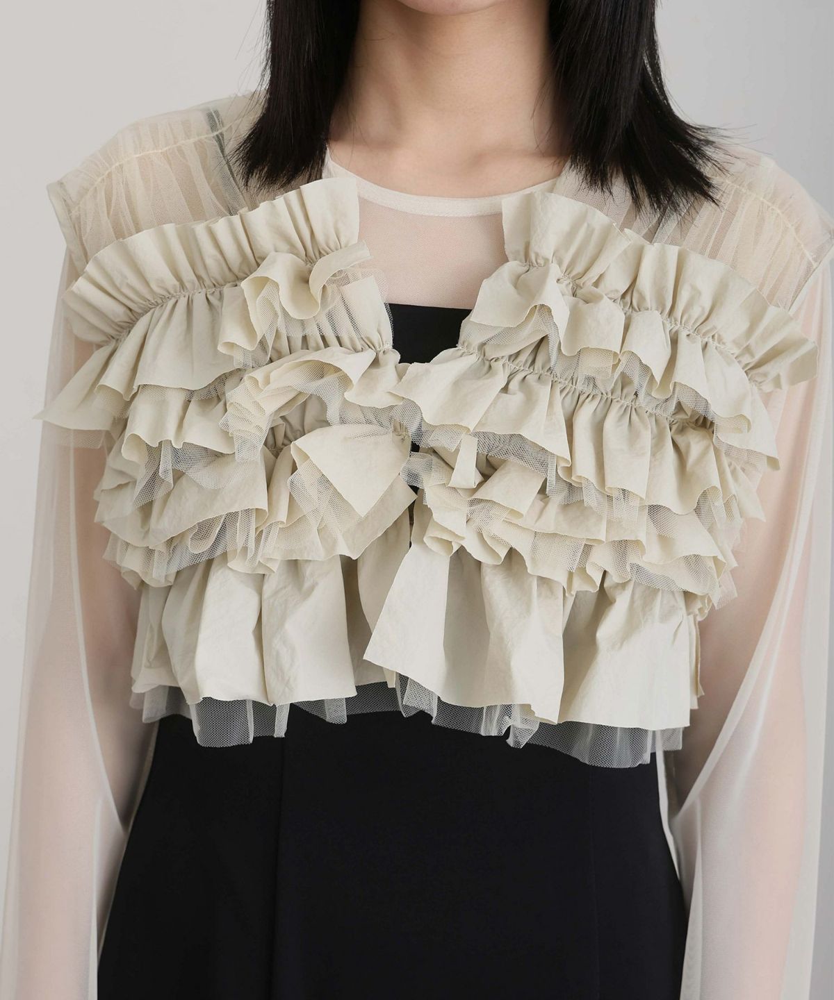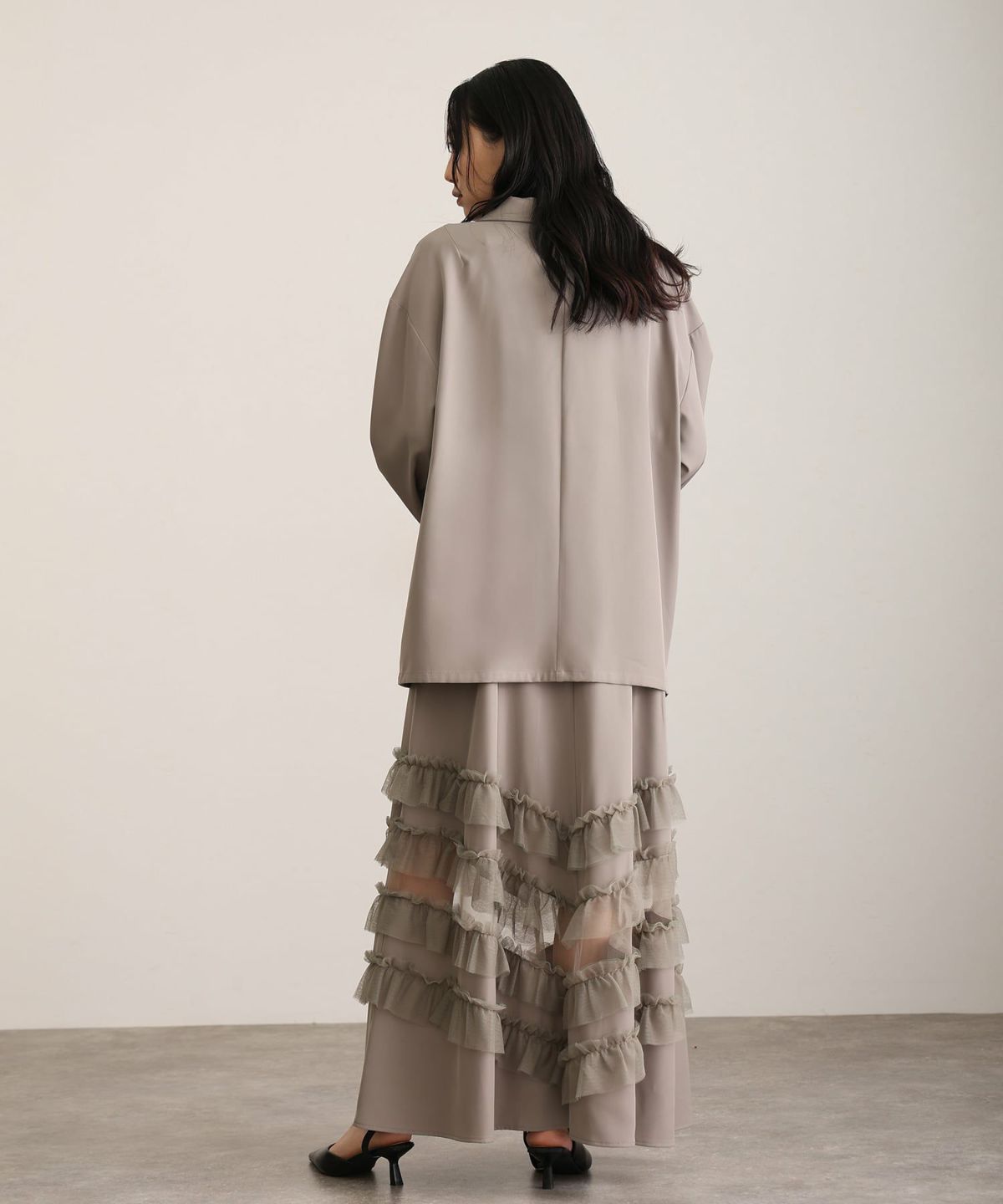 視線を惹きつけるチュールフリル トランスペアレントヘムセットアップドレス 2点セッ
