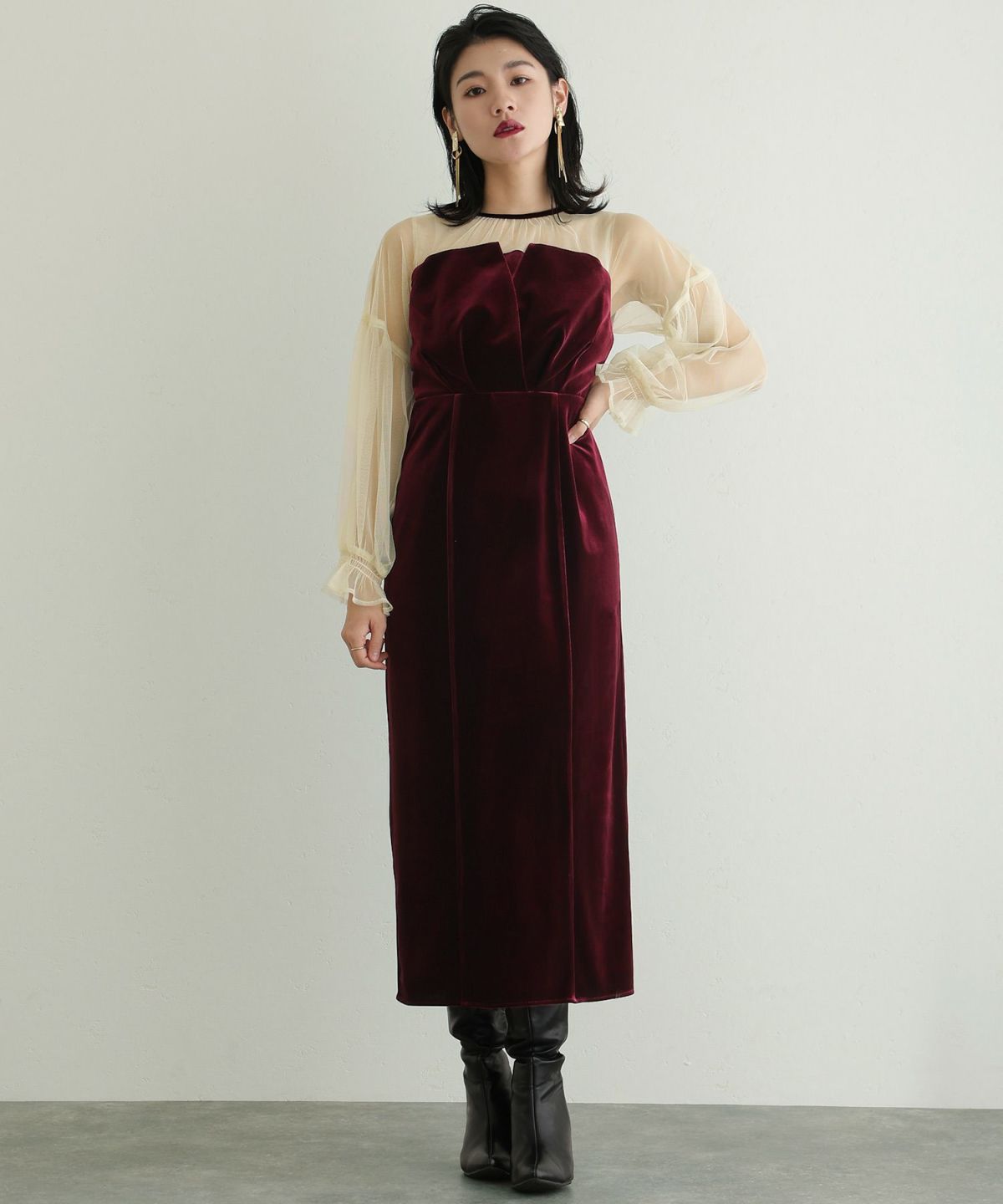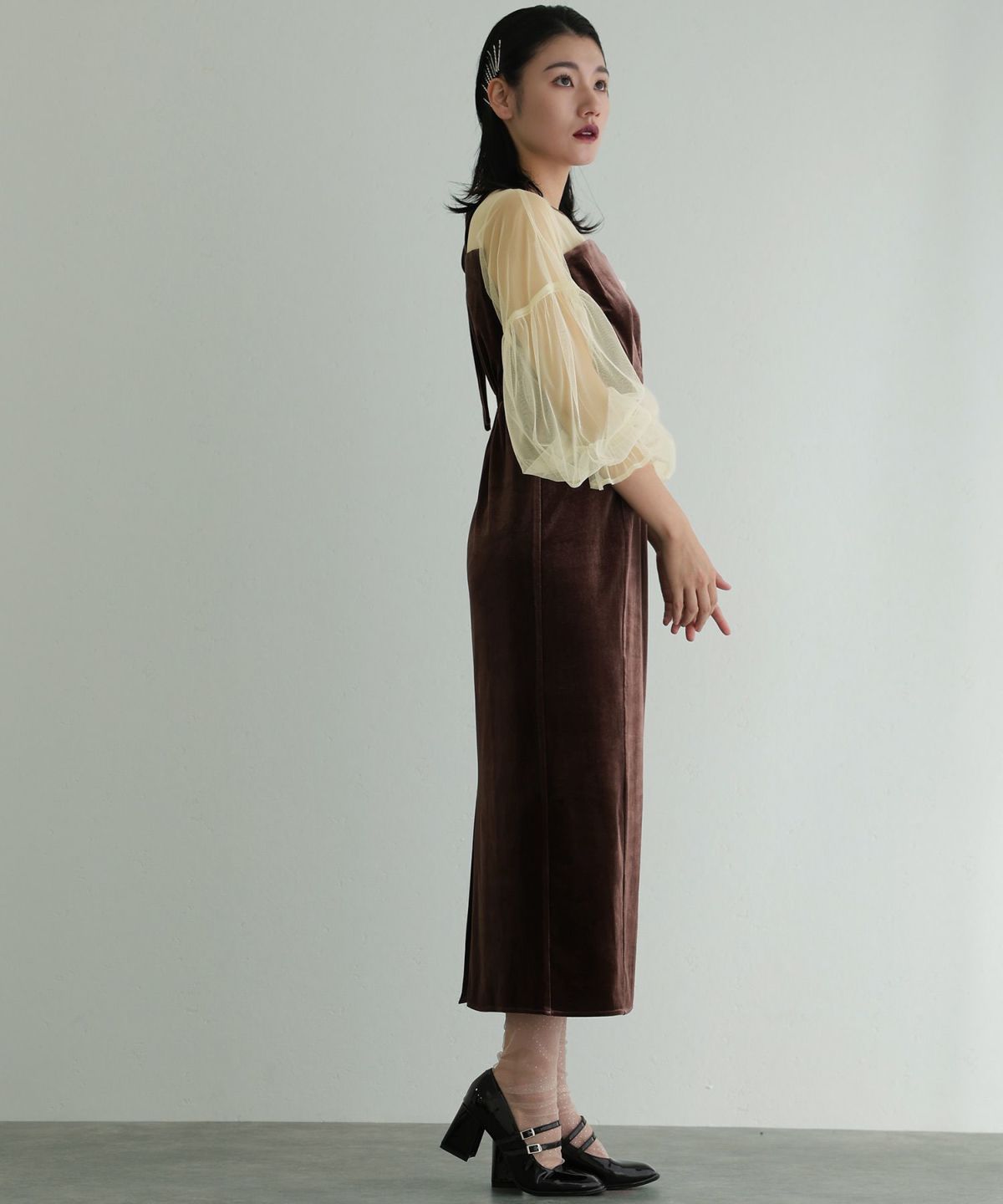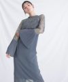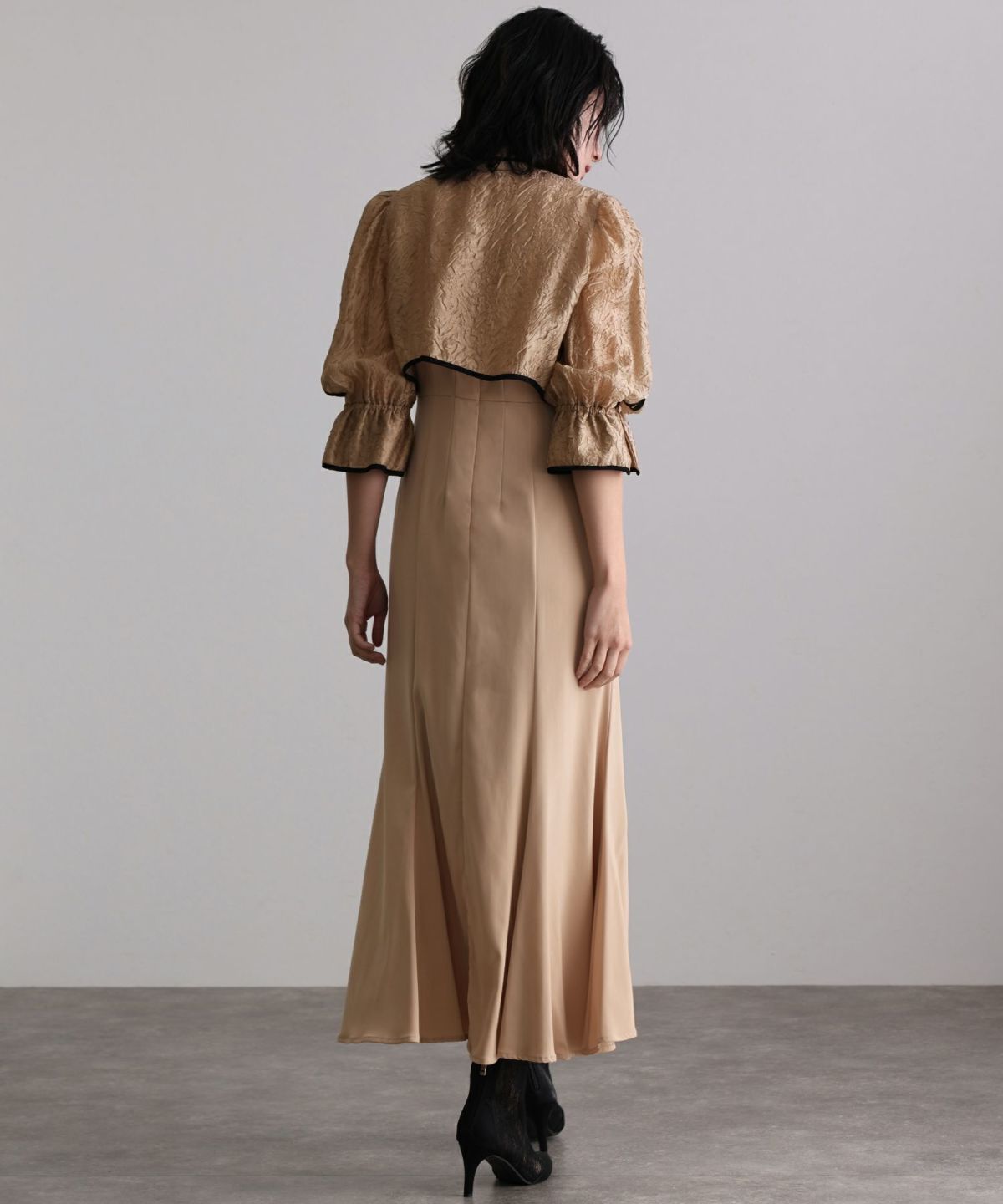 ラメチュール×マーメイドスカート ラメチュールスリーブギャザーマーメイドワンピース