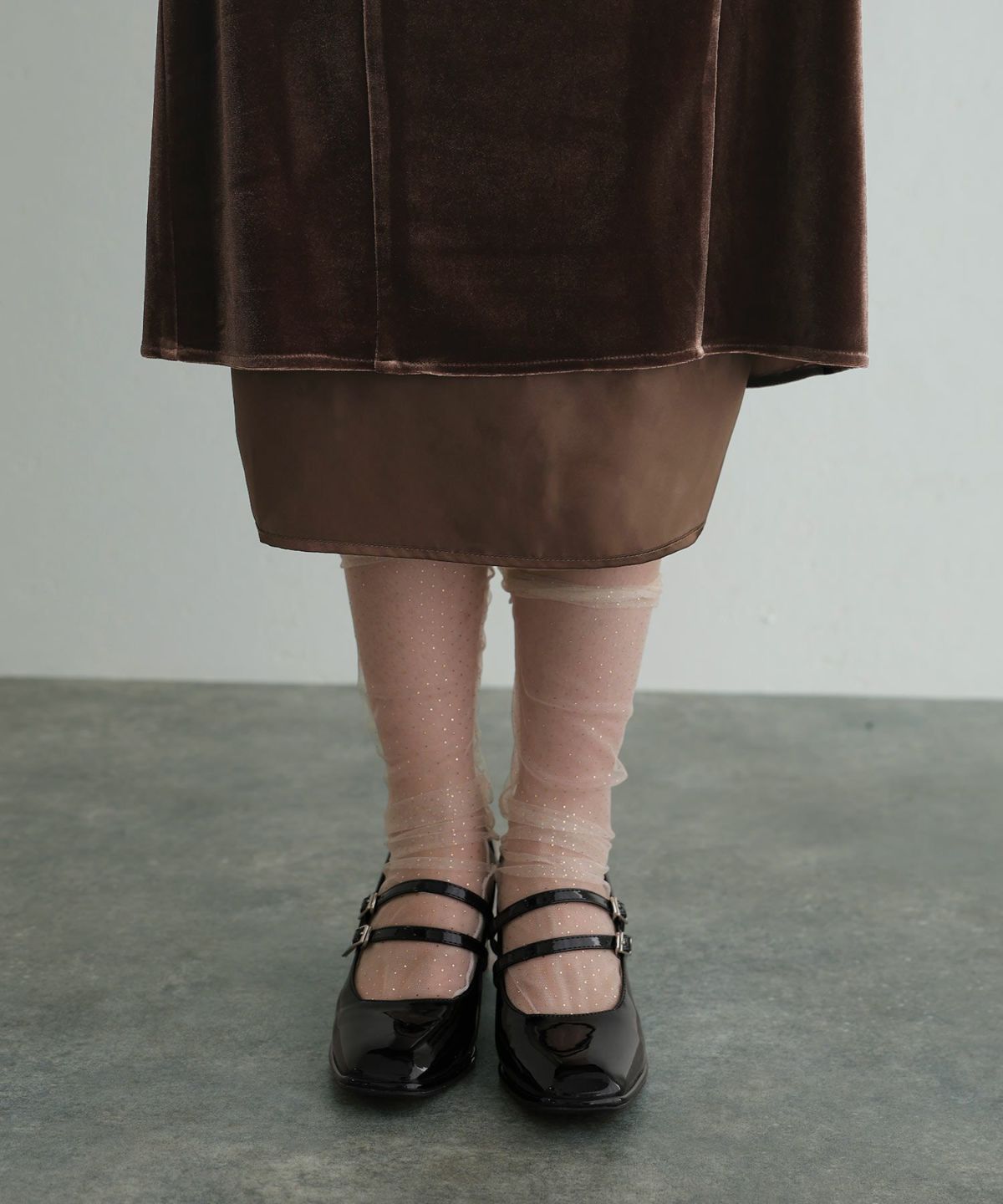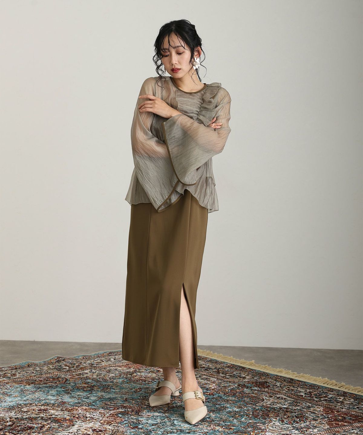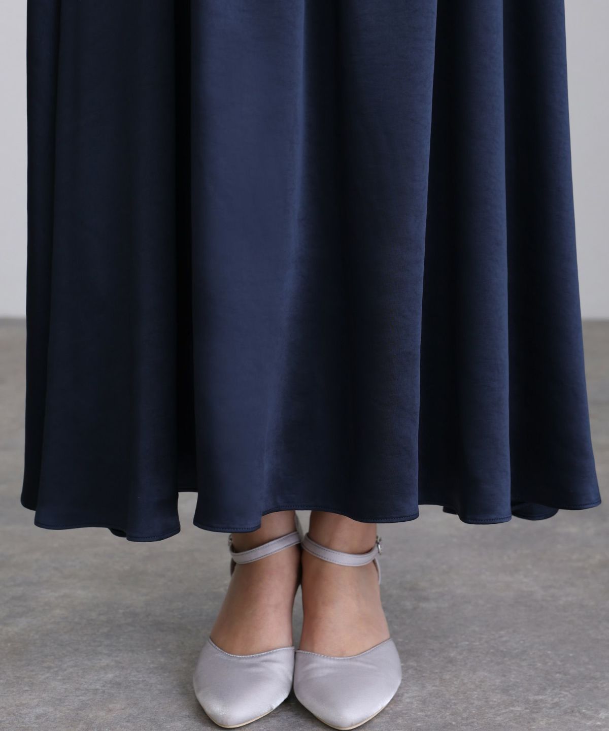 ラメチュール×マーメイドスカート ラメチュールスリーブギャザーマーメイドワンピース