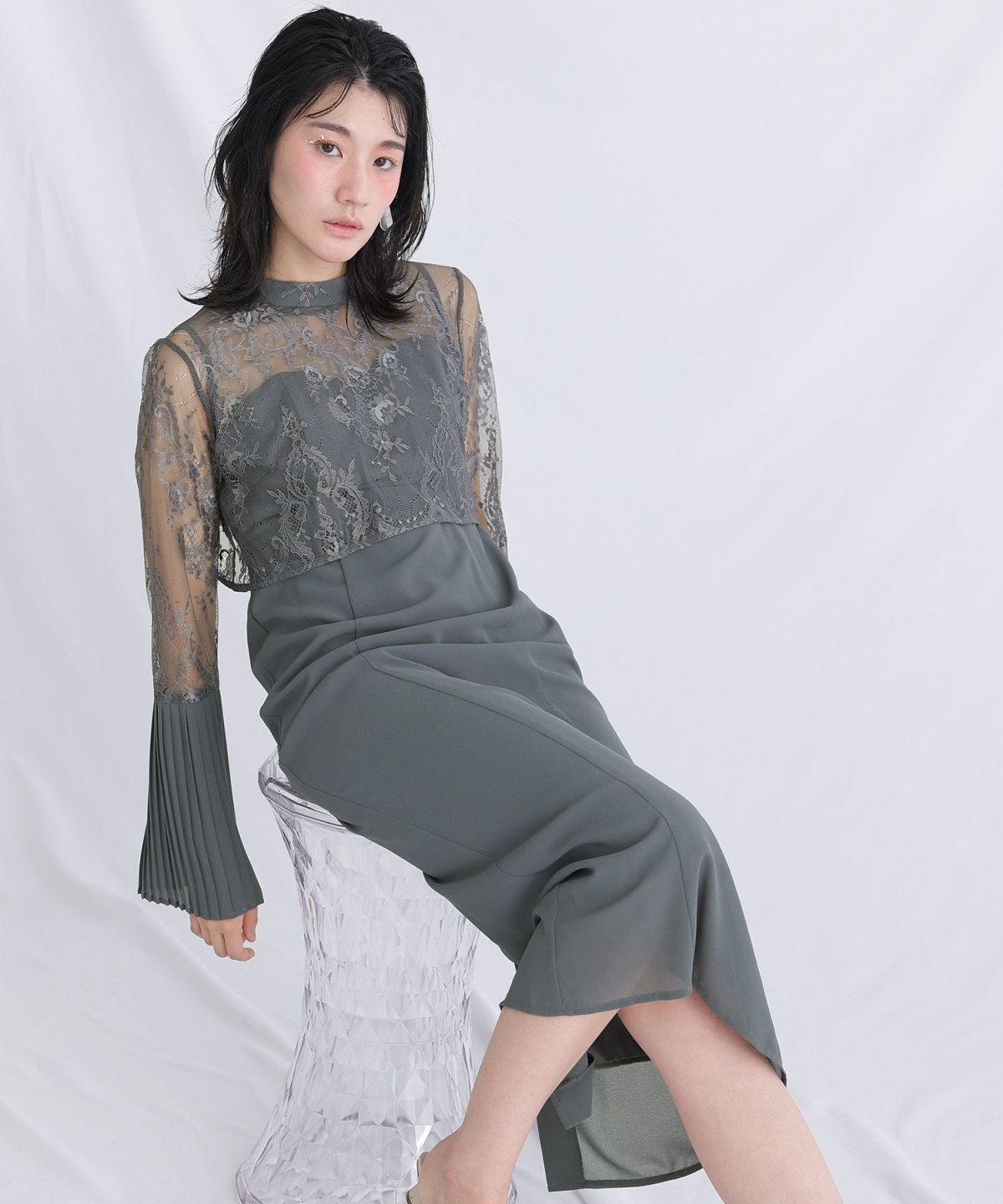 レース×マーメイドラインがエレガント レーストップス付きマーメイドワンピース
