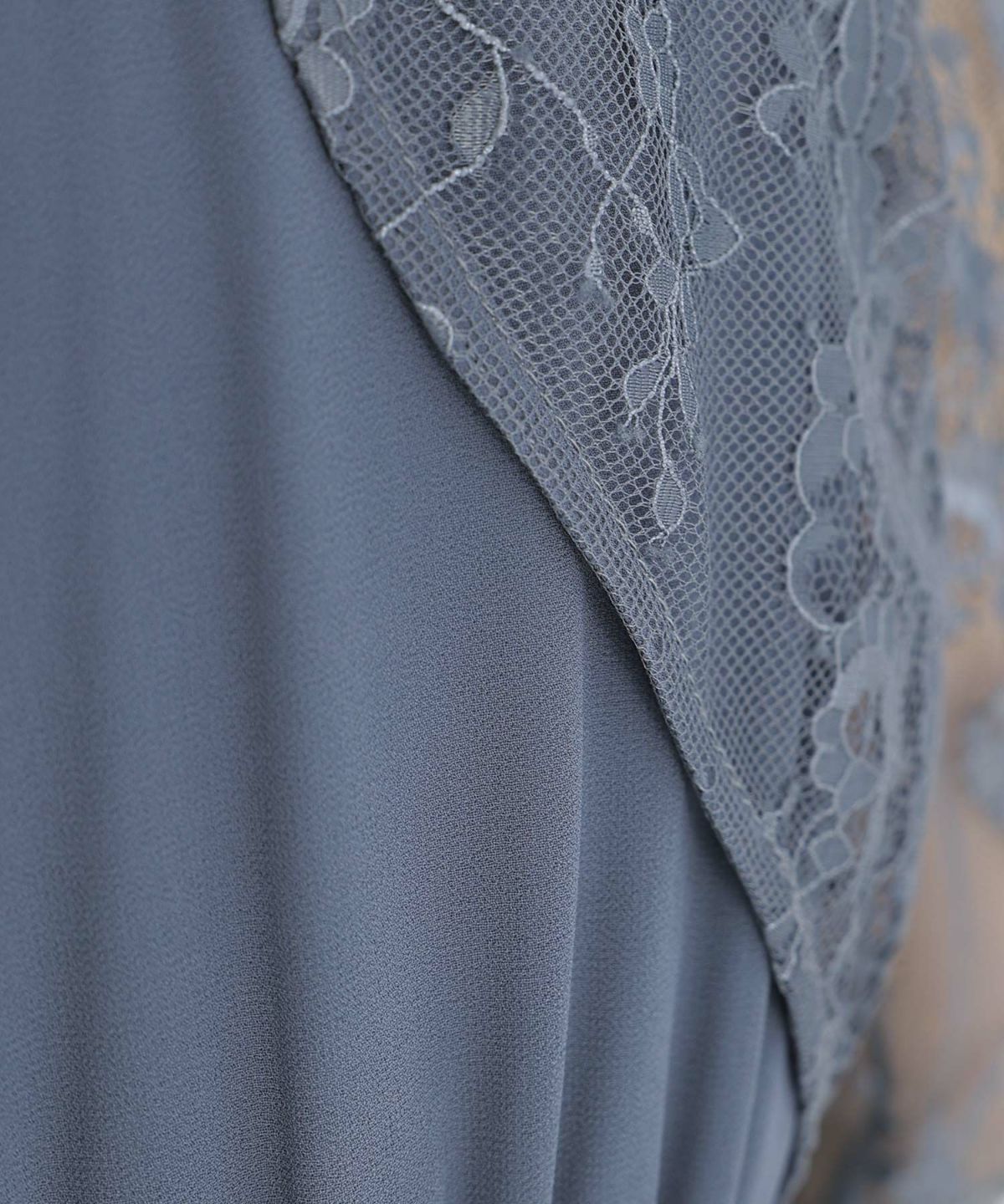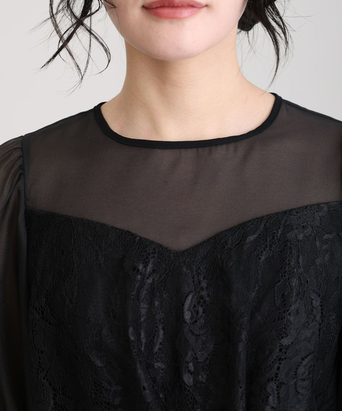 ウエストから広がるシルエットが美しい シフォン×レース切り替えワンピース