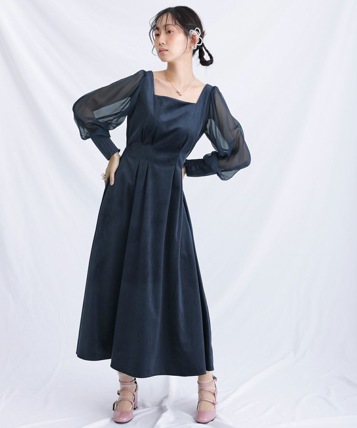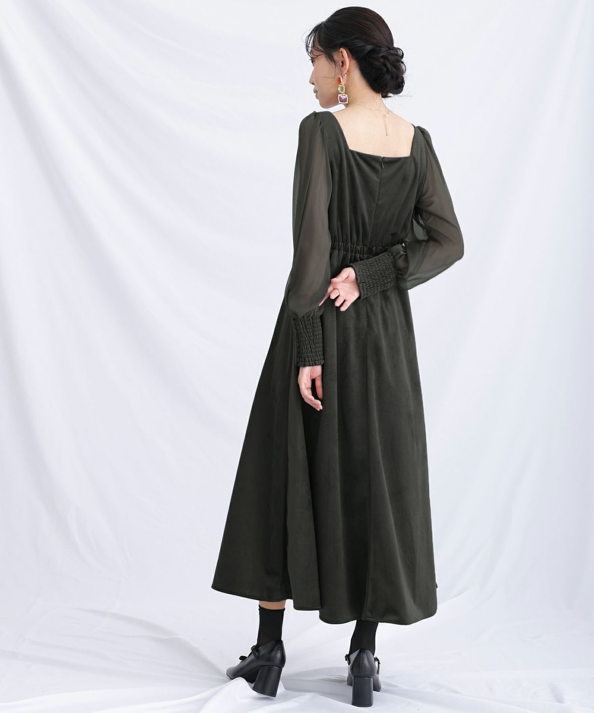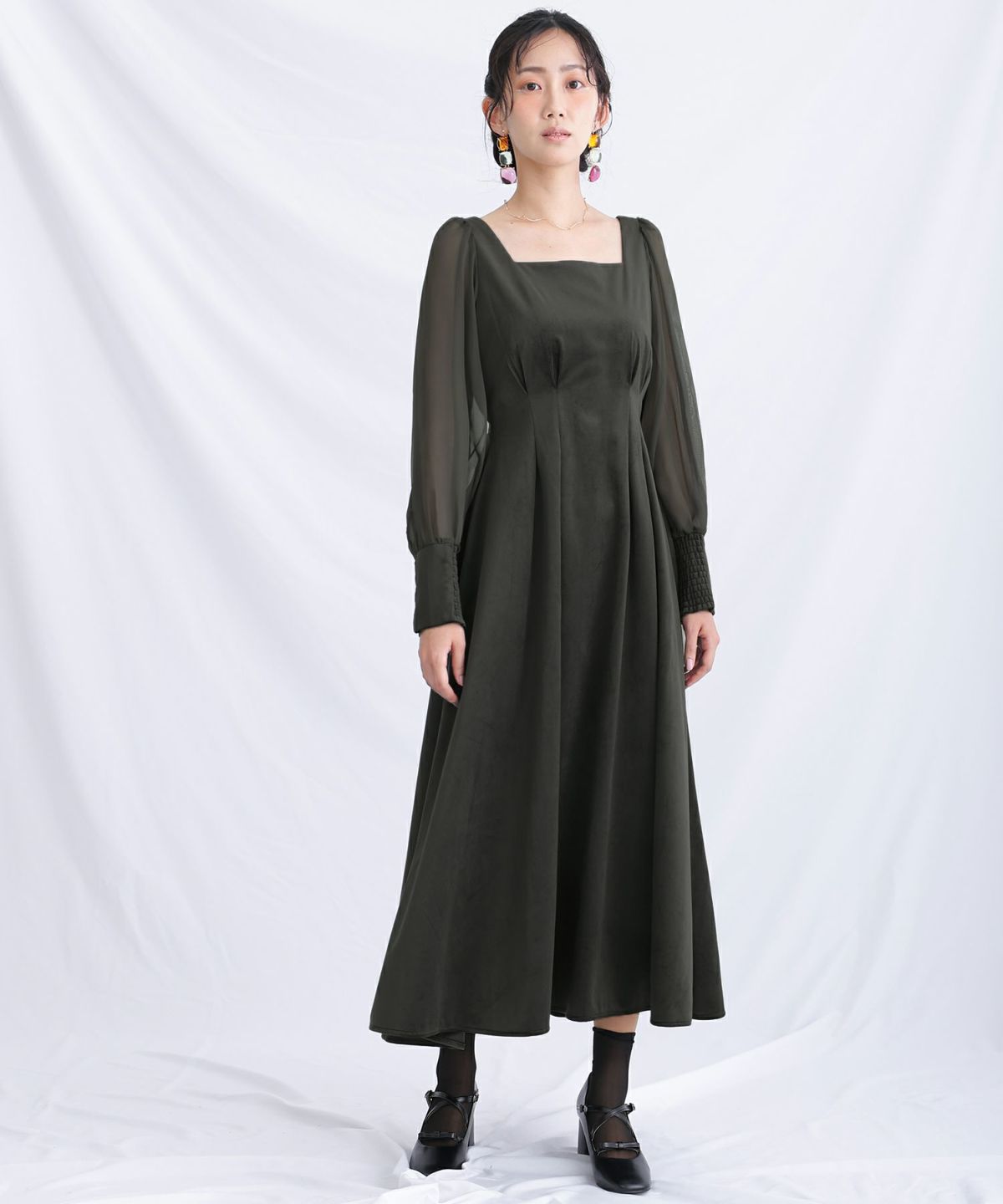 ベロア素材が高級感を演出 ベロアスクエアネックワンピース