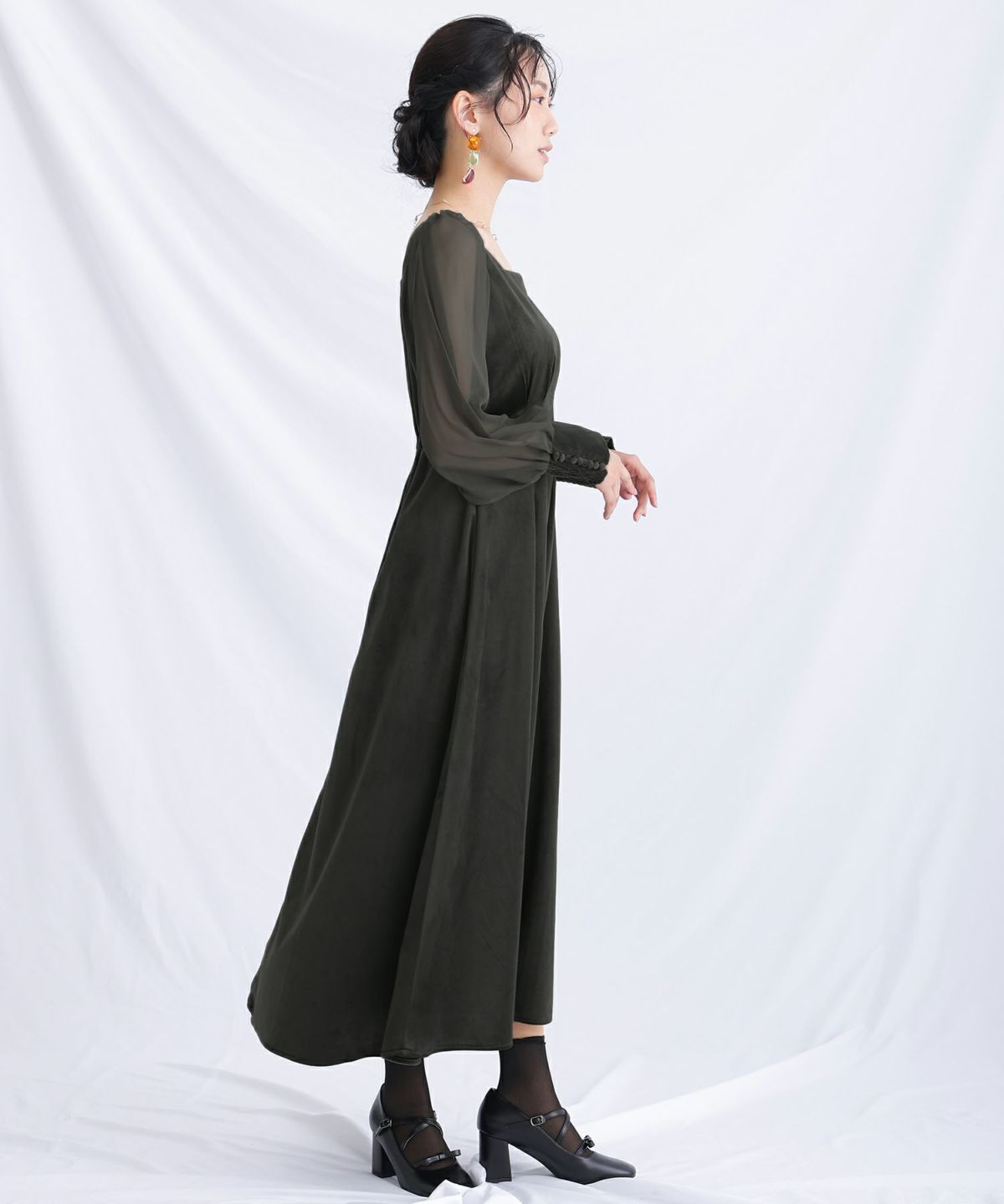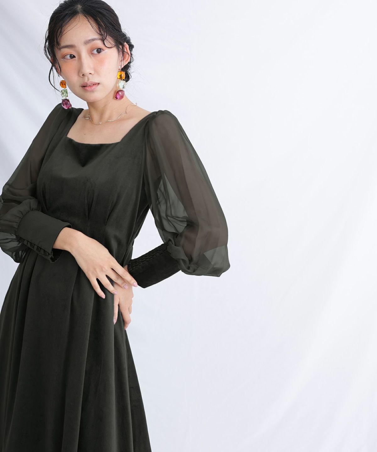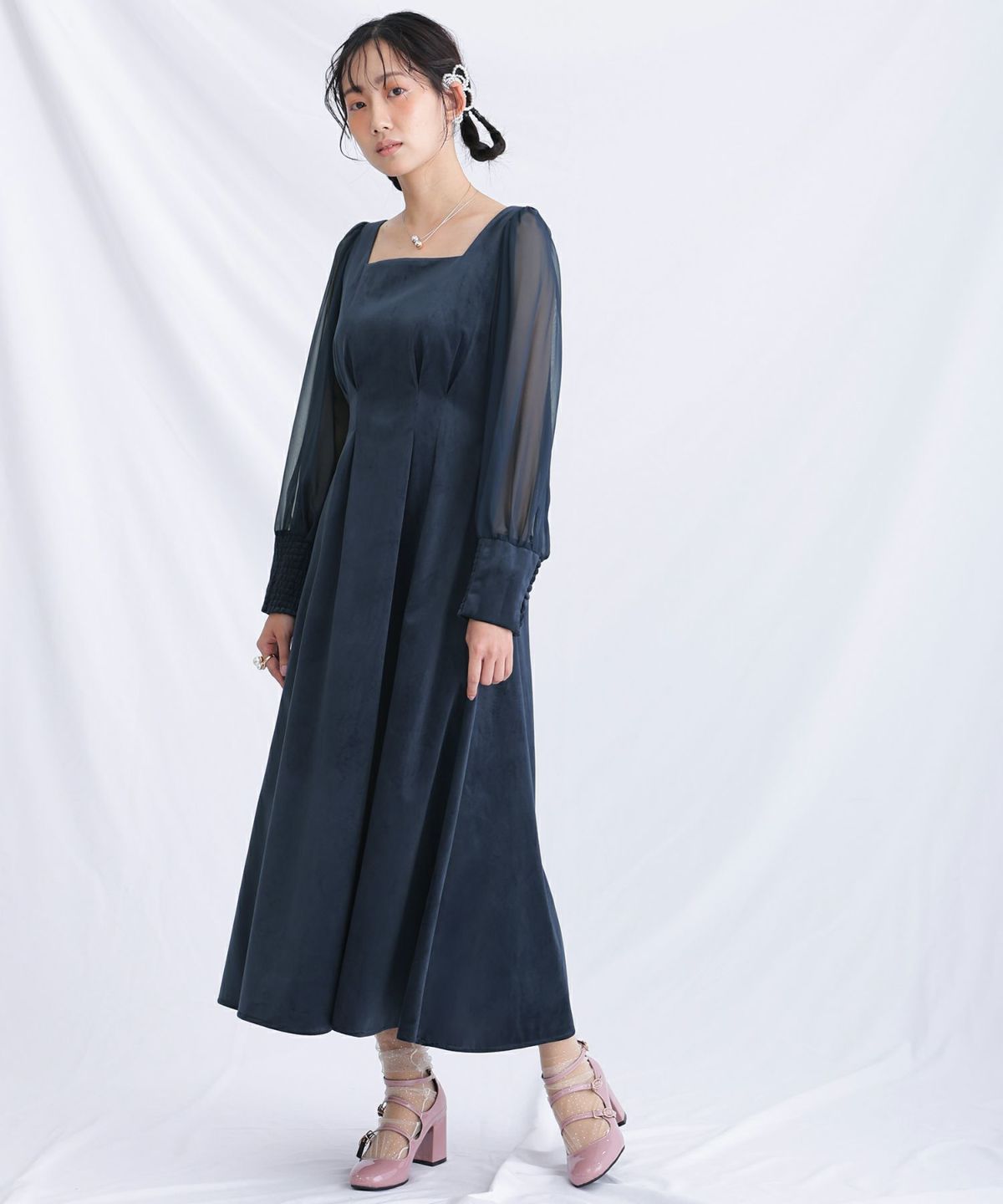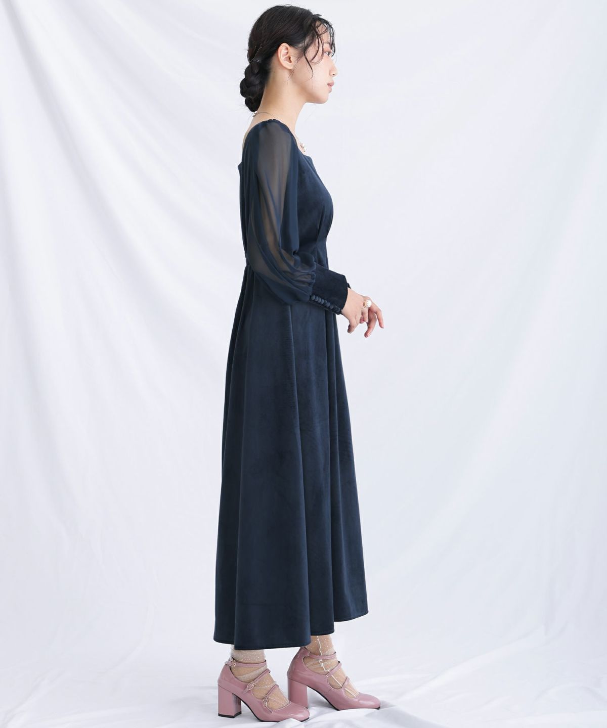 ベロア素材が高級感を演出 ベロアスクエアネックワンピース