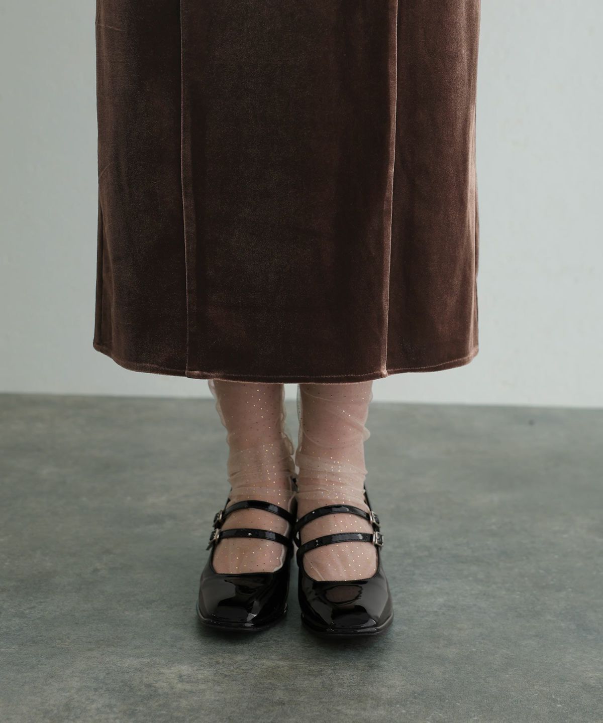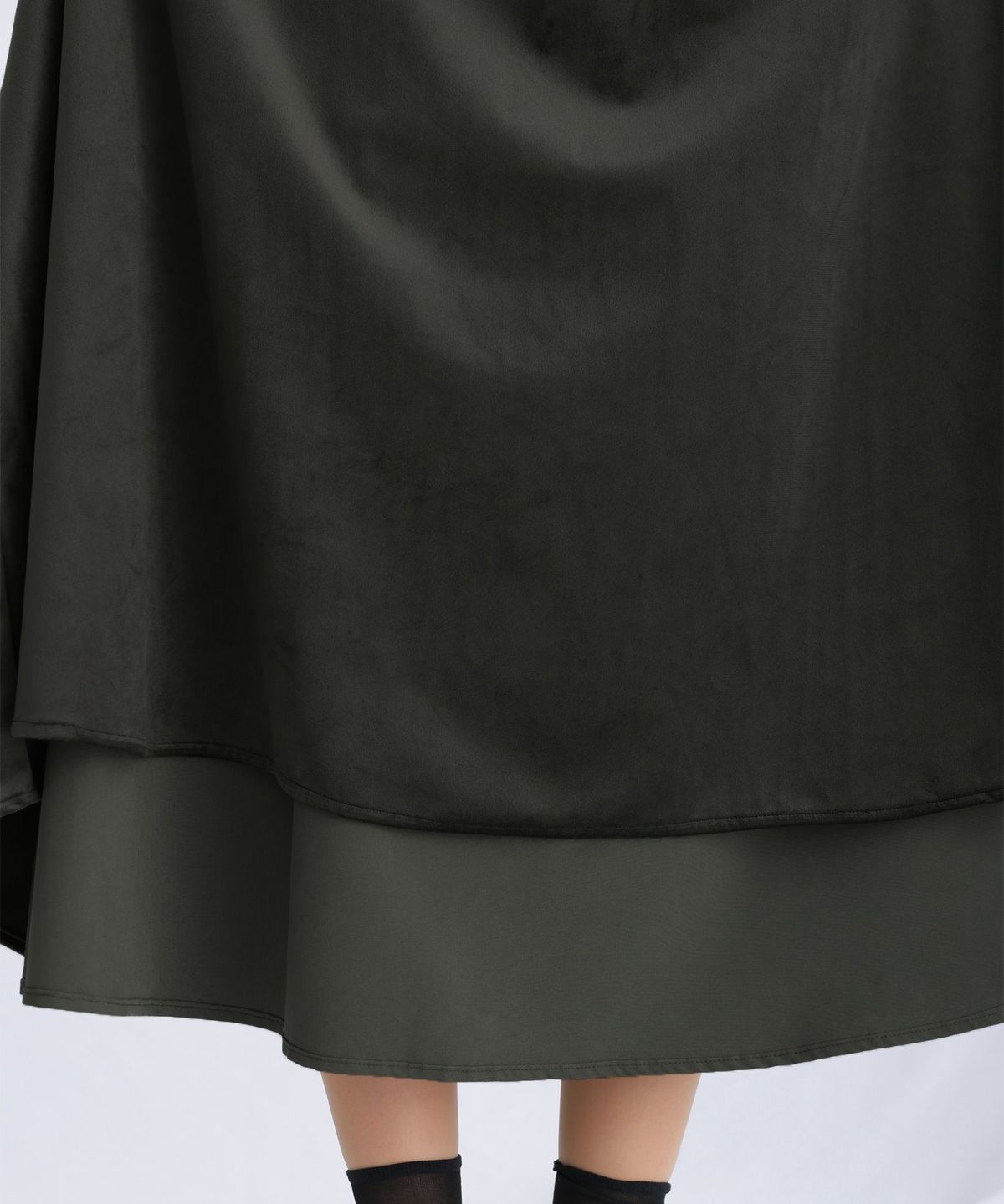 重厚感のあるベロア素材が上品さを演出 ビスチェ風ベロアワンピース
