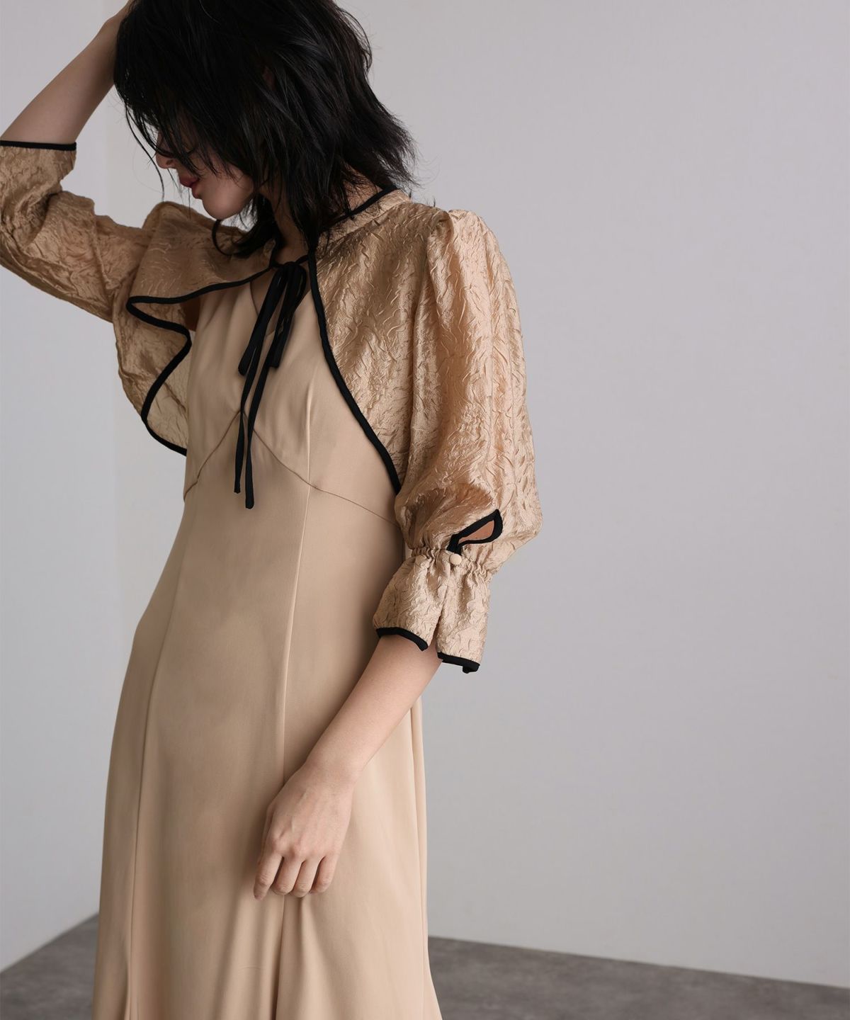 今季旬のジャガード生地 マルチケープジャガードドレス