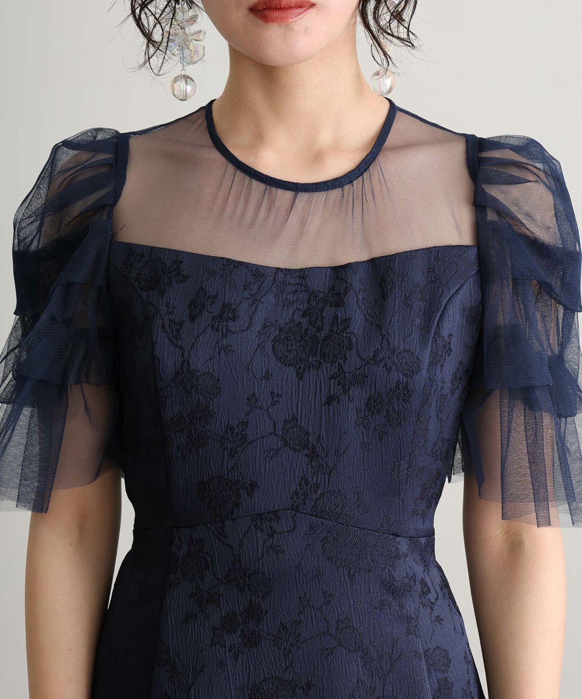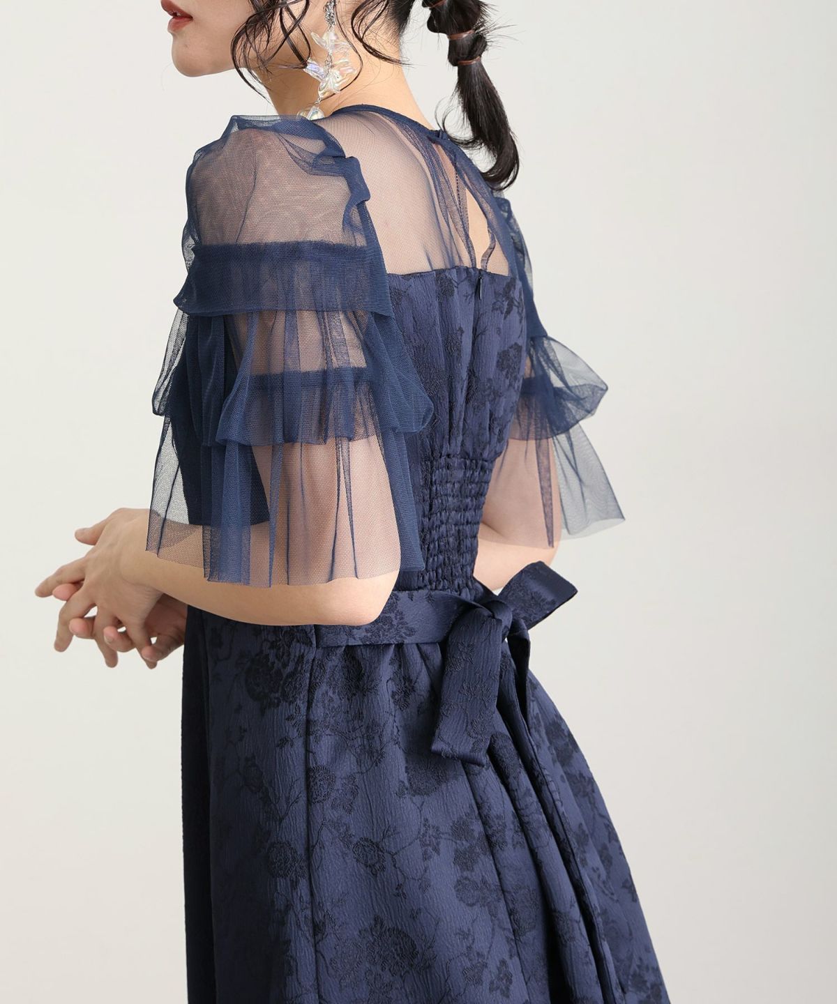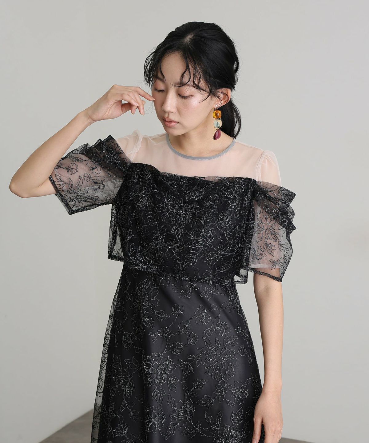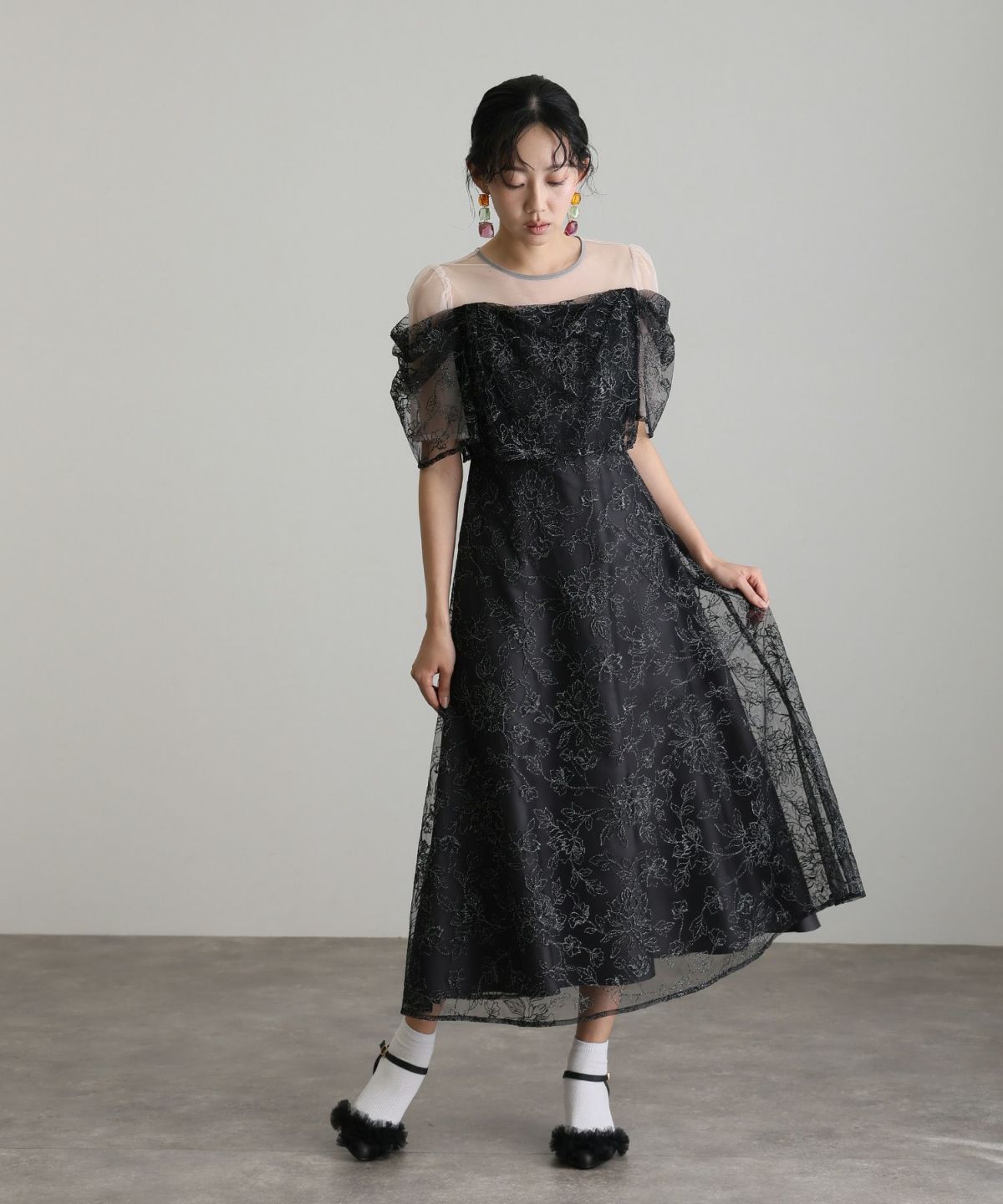 透け感チュール×小花柄 フラワージャガードチュールワンピース