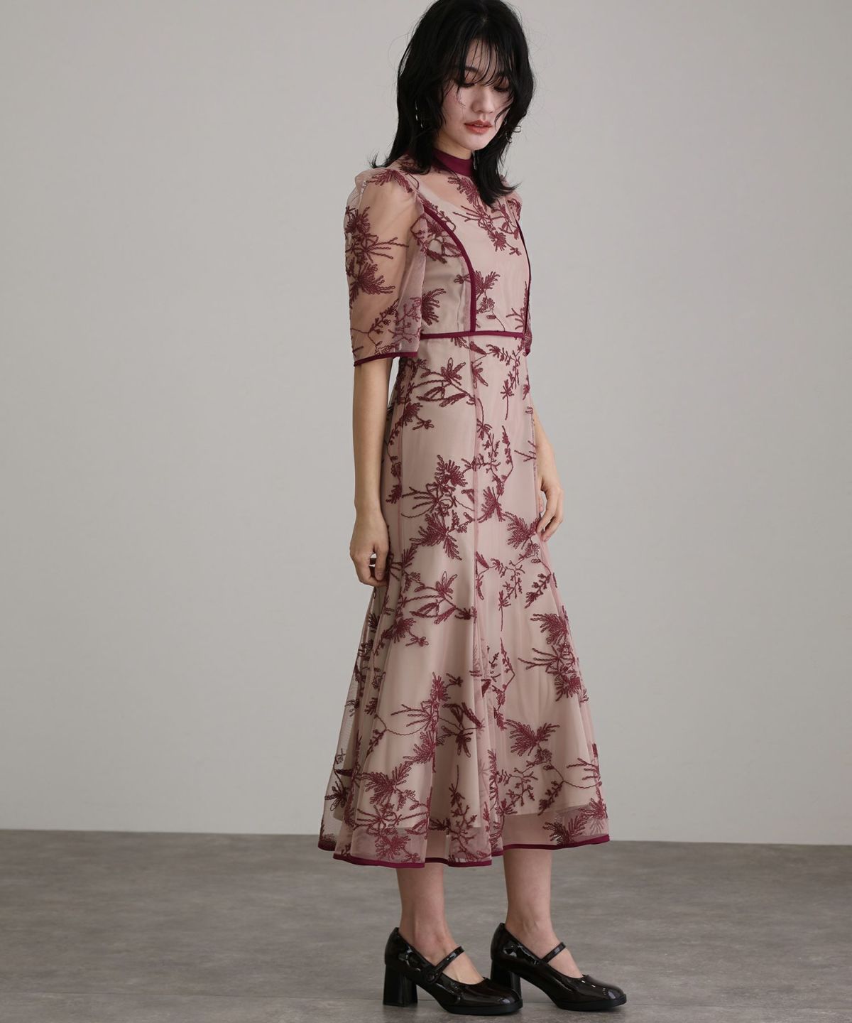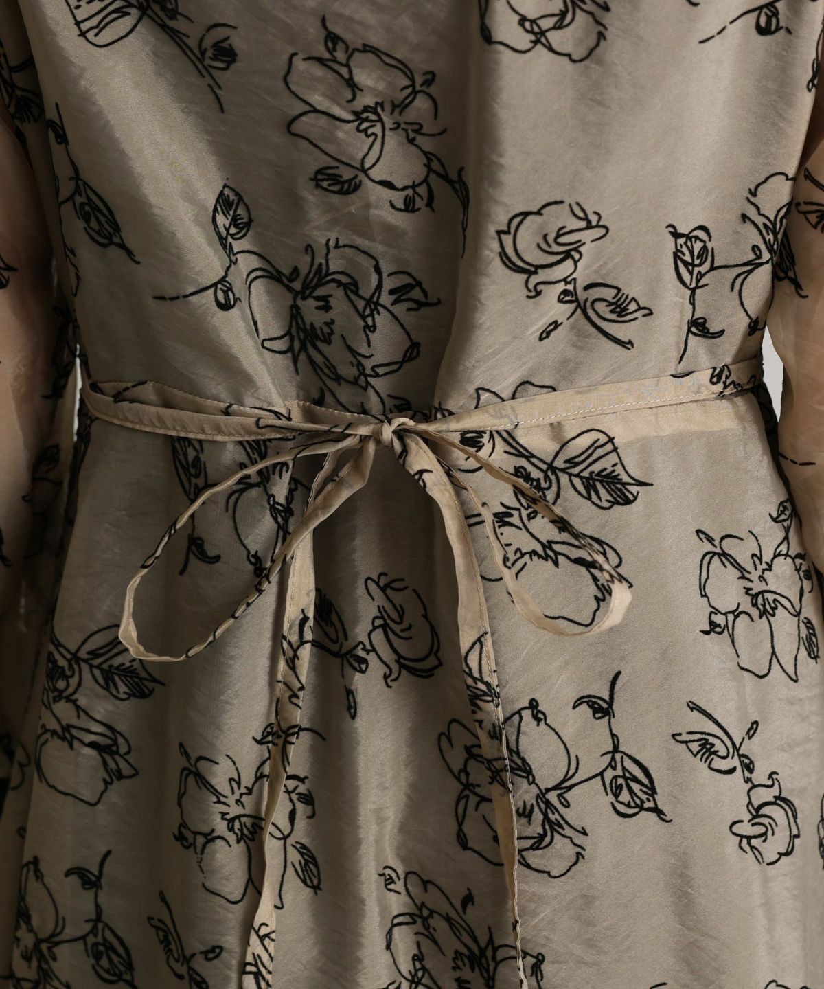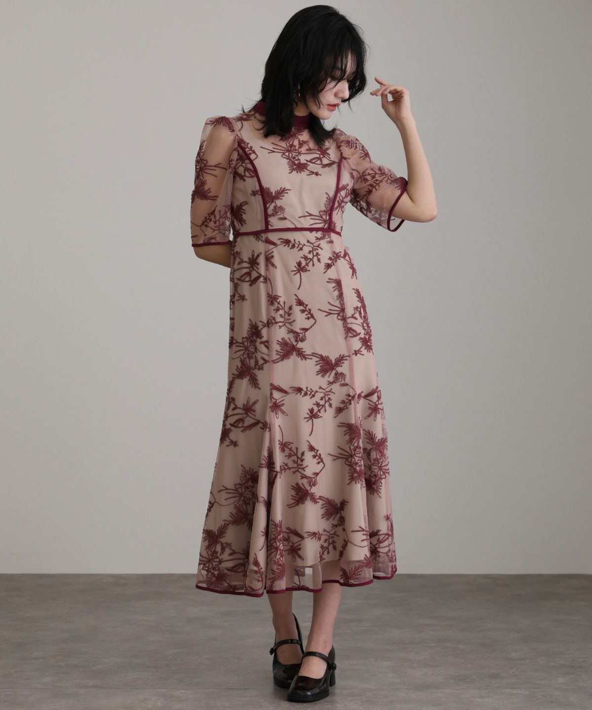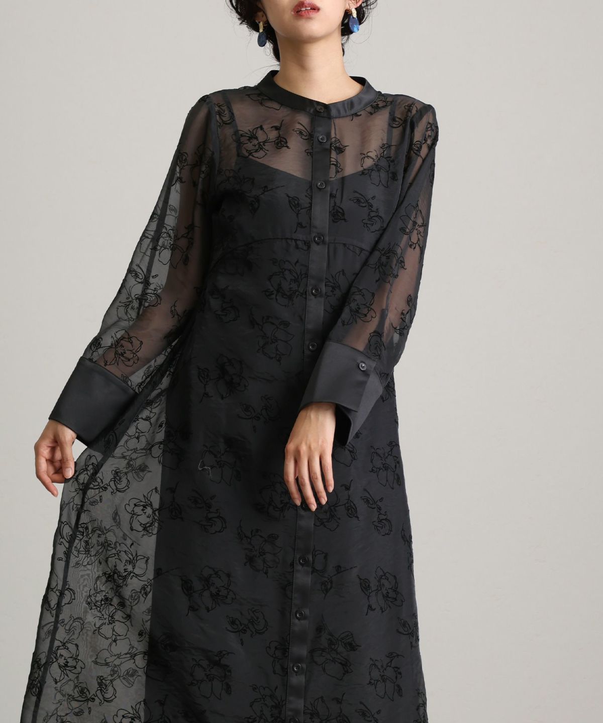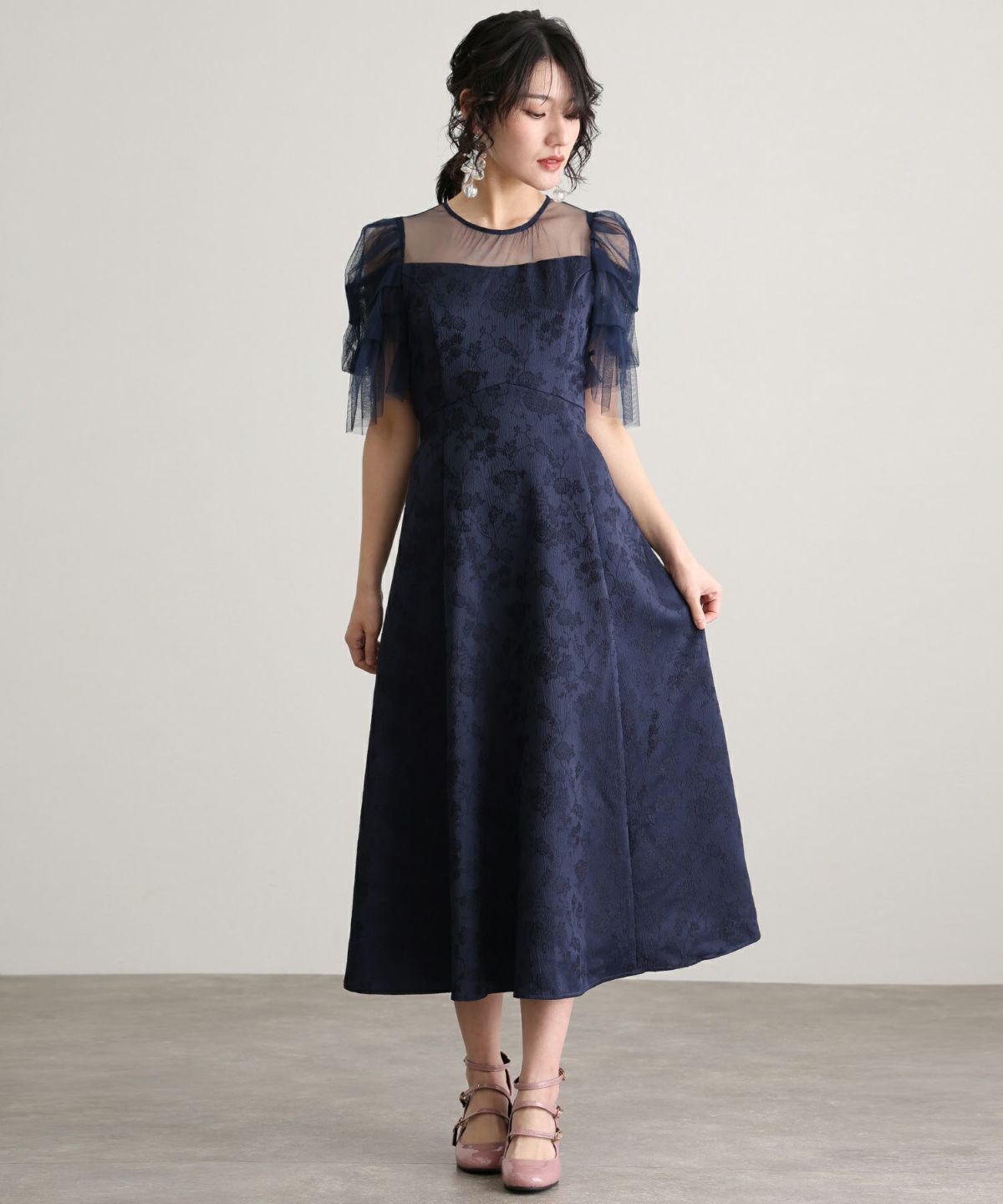 透け感チュール×小花柄 フラワージャガードチュールワンピース
