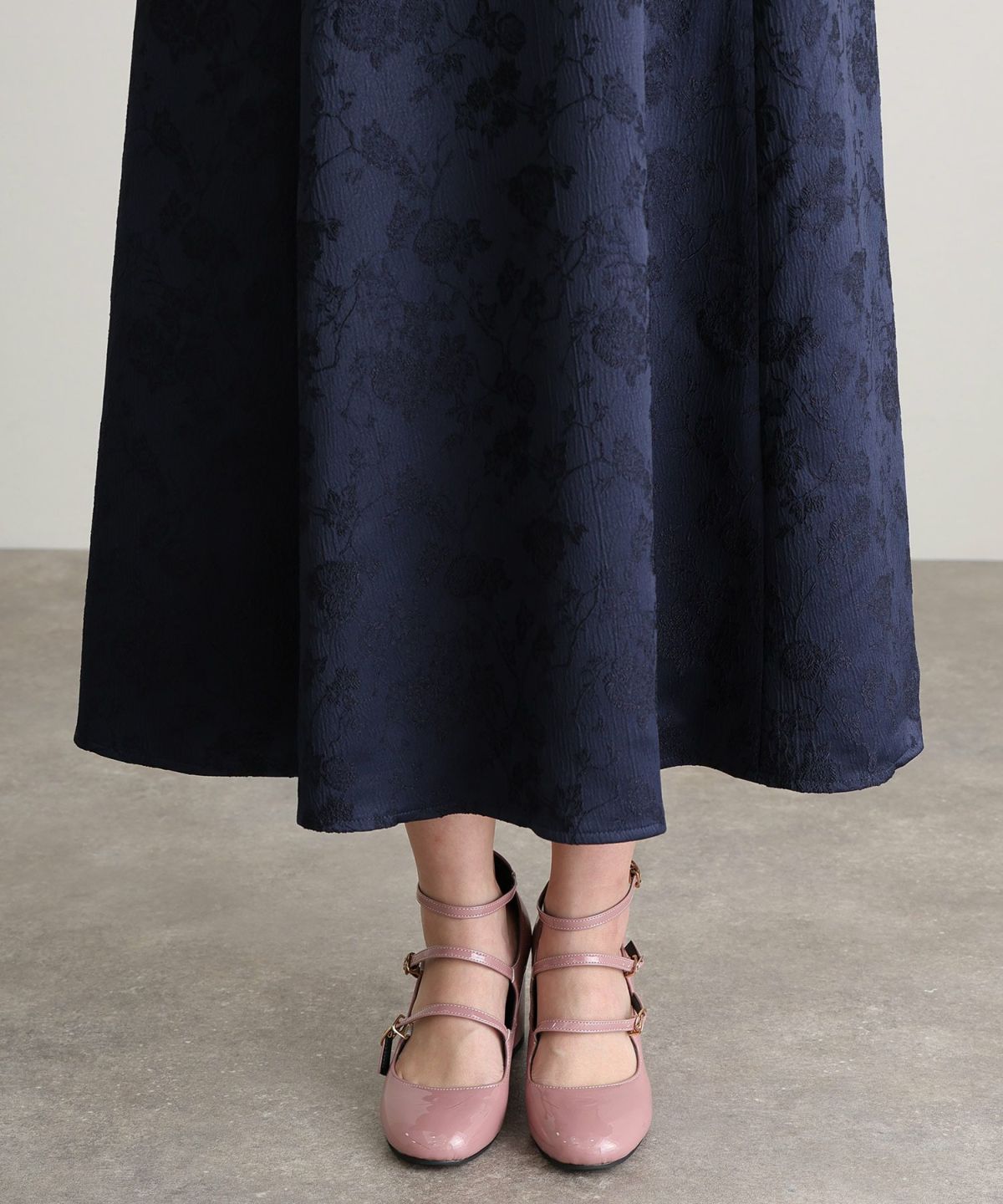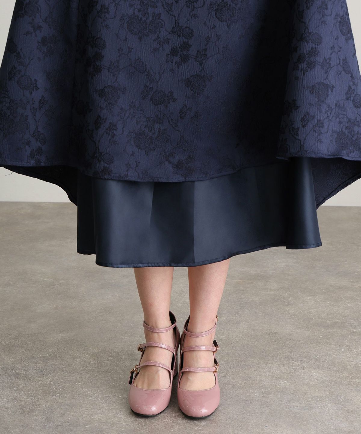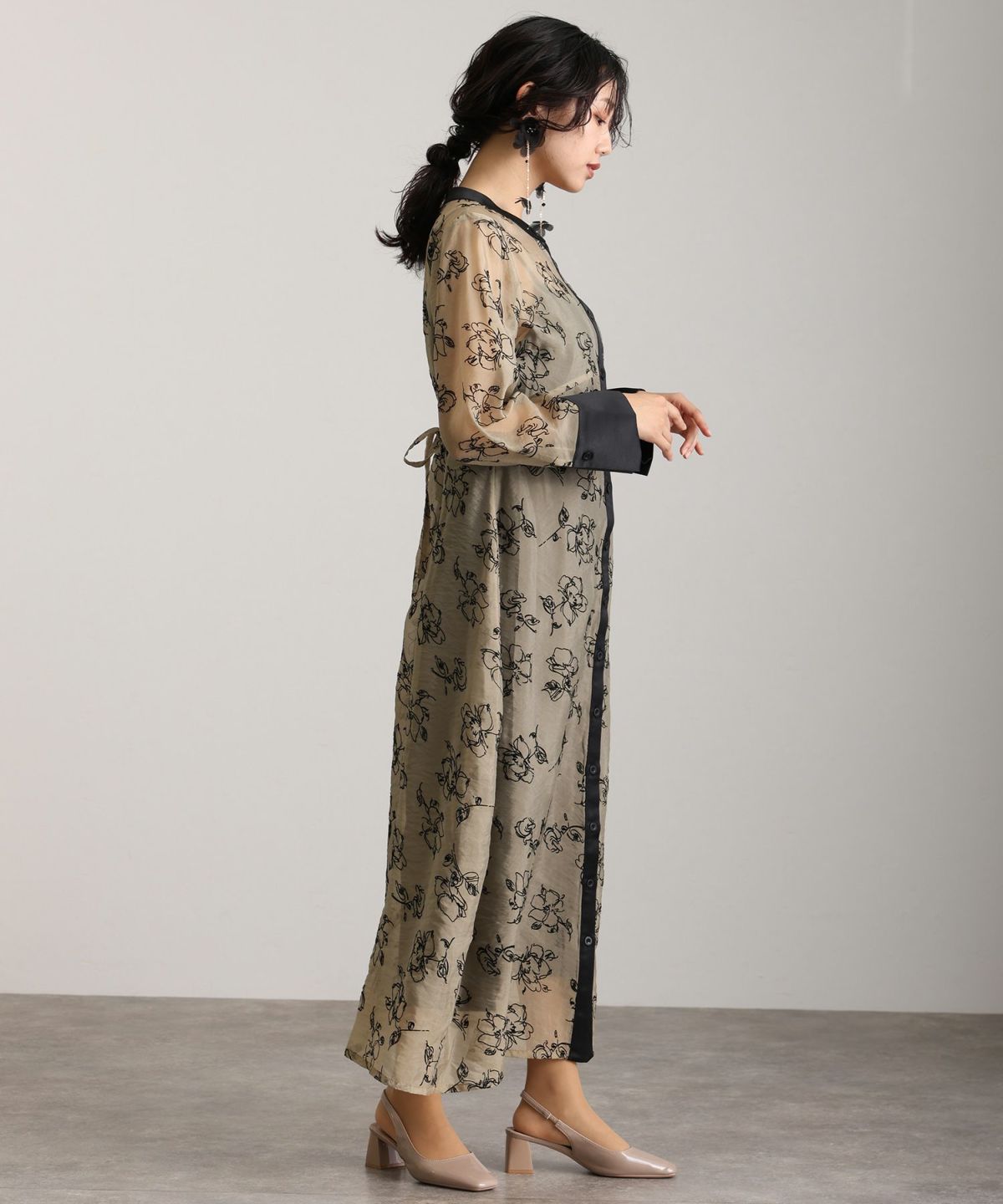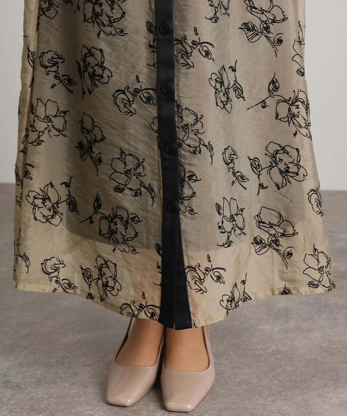 透け感チュール×小花柄 フラワージャガードチュールワンピース