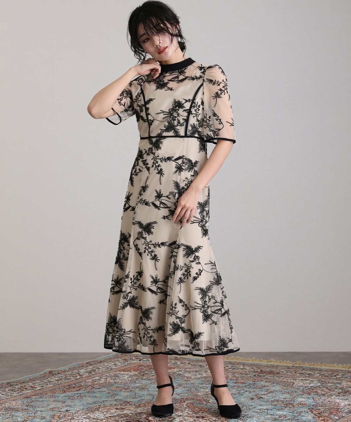 存在感のある刺繍で他と被らない バイカラーエンブロイダリードレス