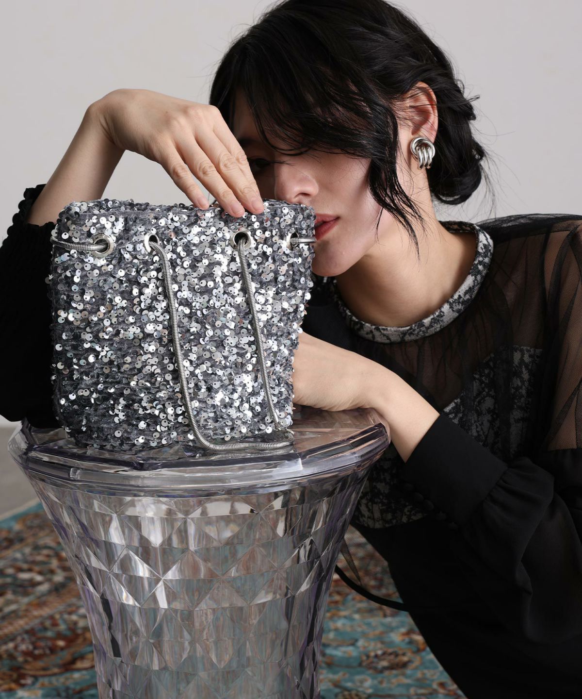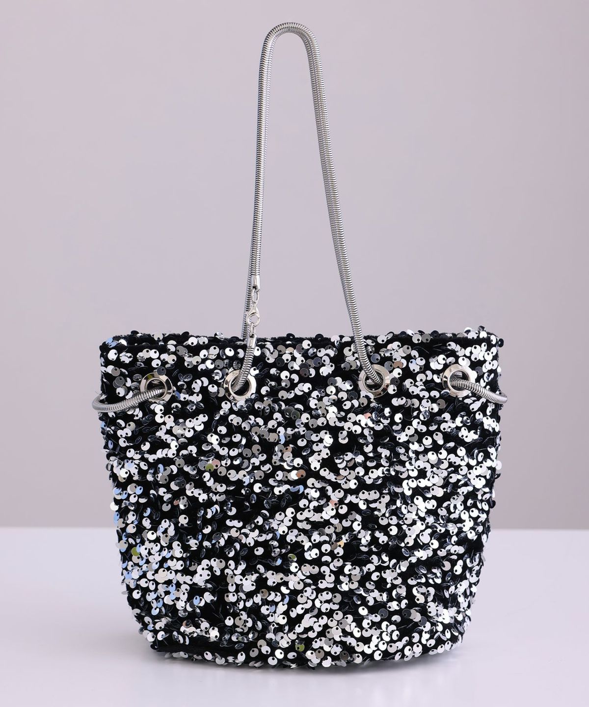 シルバーラメがきらめくモードバッグ 3WAYリングラメグロウトート