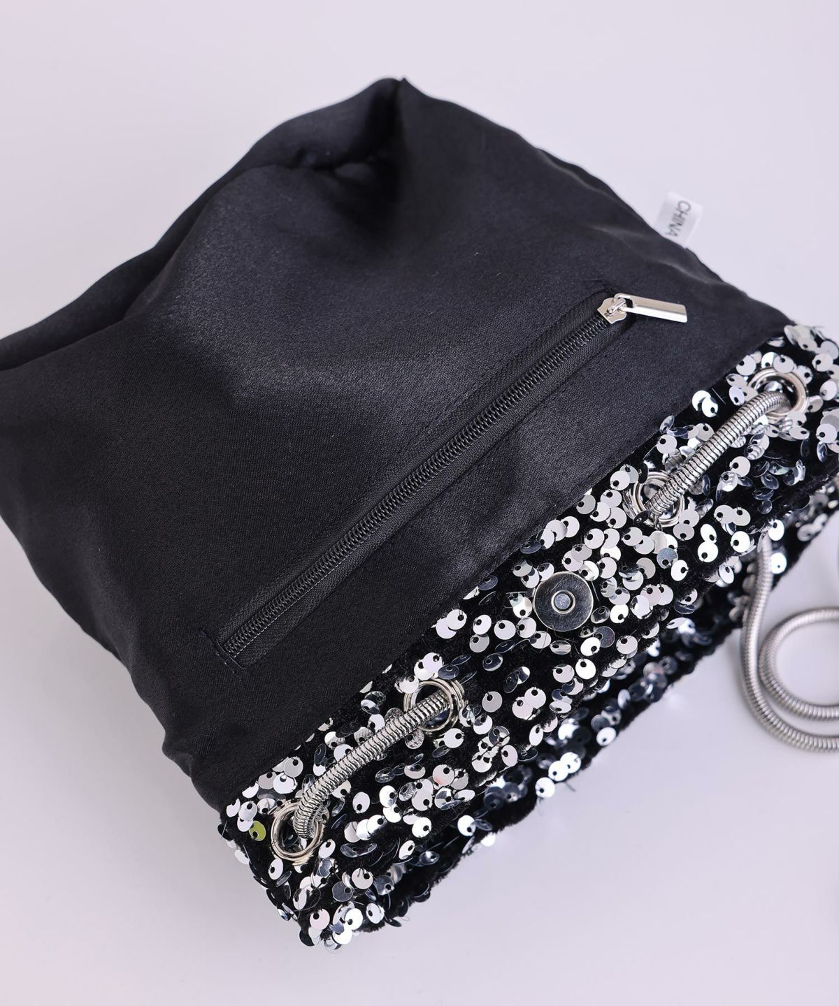 サテンの光沢が美しい素材感 サテンタックパーティーバッグ