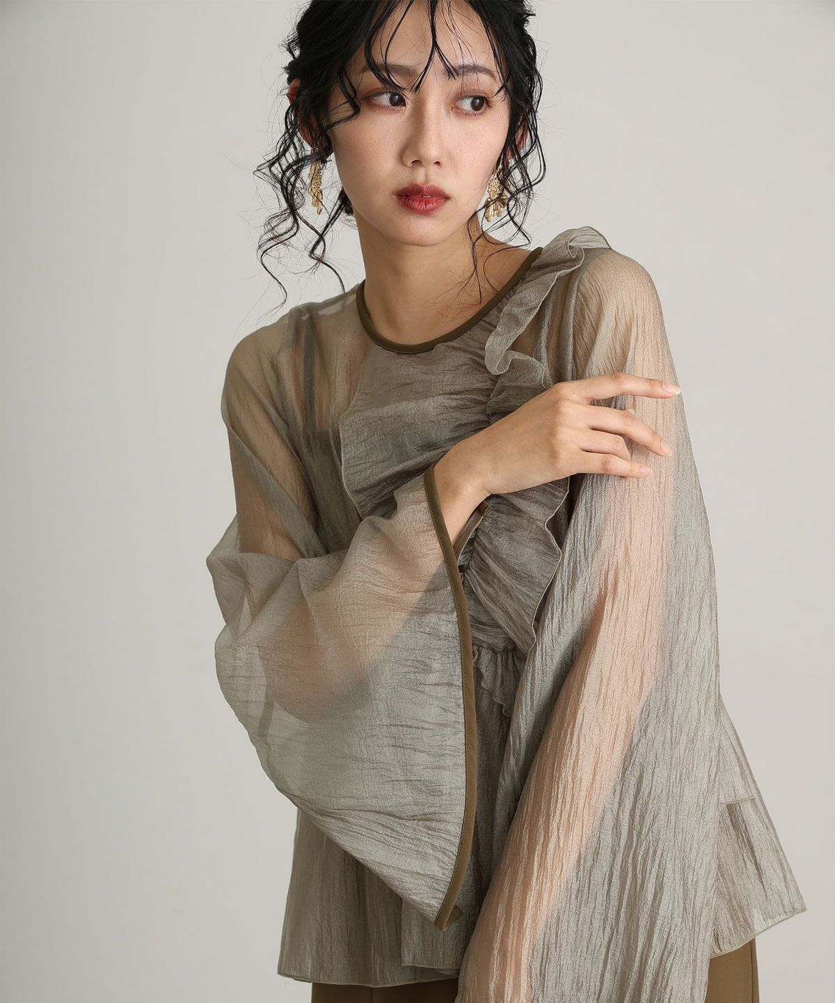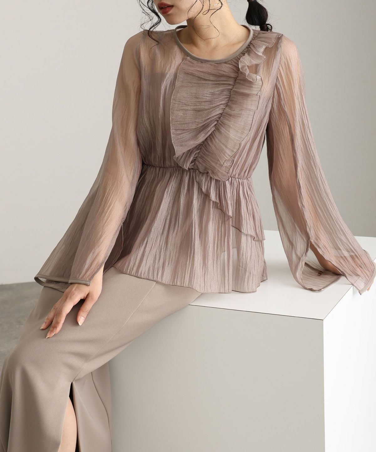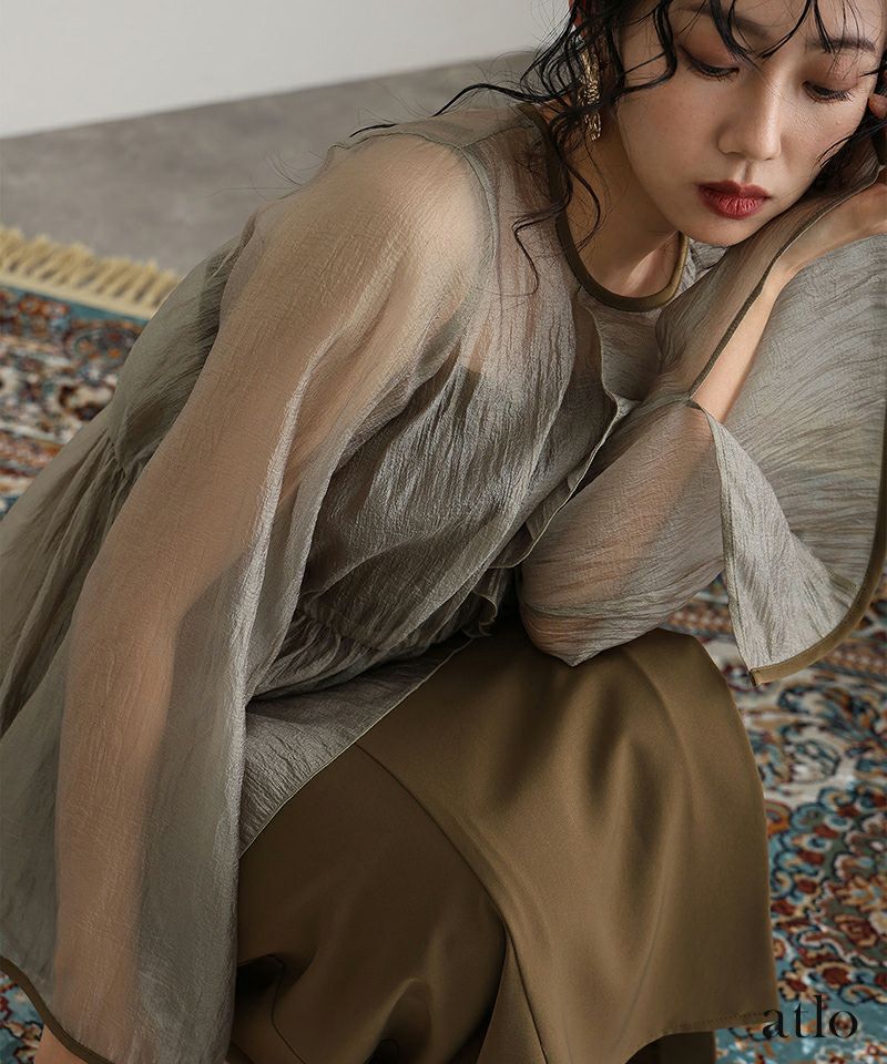 オーガンジーで仕上げたトップスが印象的 楊柳トップスセットドレス