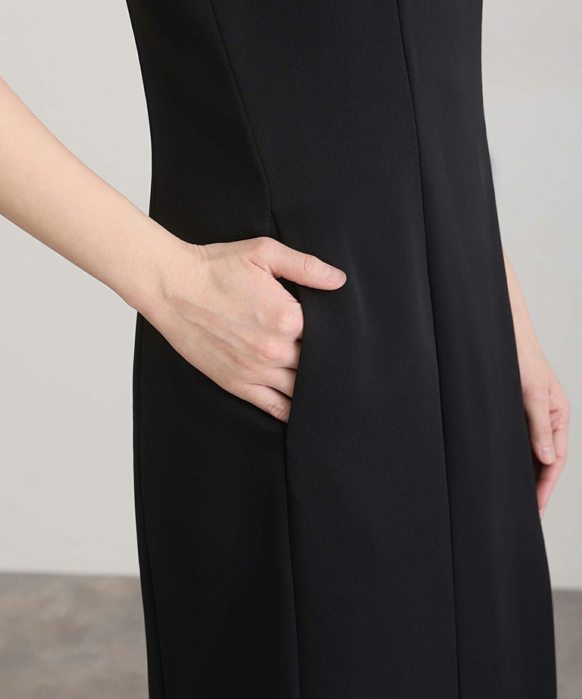 ダブルクロス生地でさらりとした肌あたりに ダブルクロスオールインワンドレス