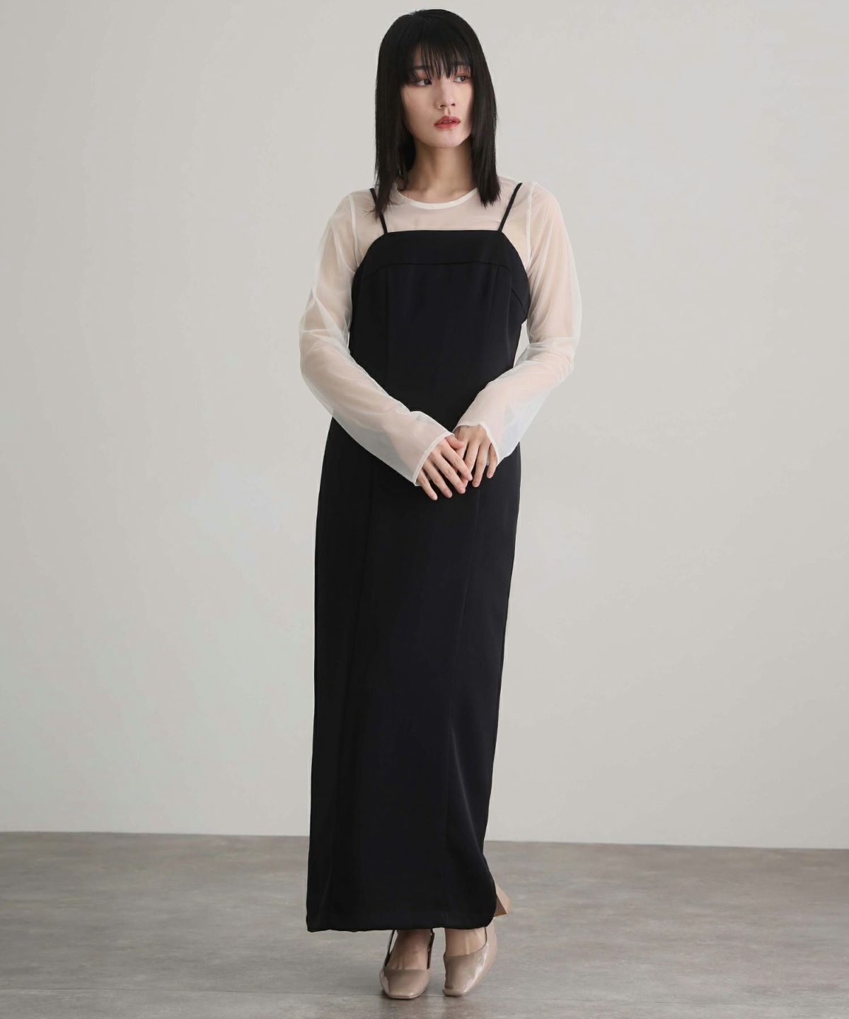 シンプルなデザインが上品で大人っぽい マイクロチュールセットアップワンピース