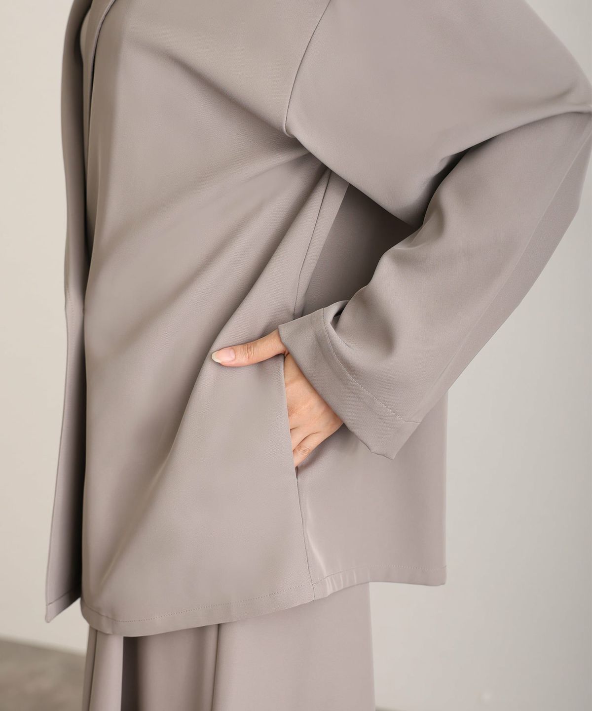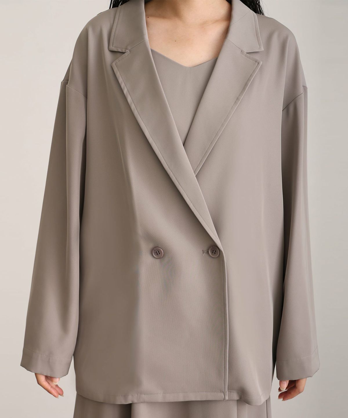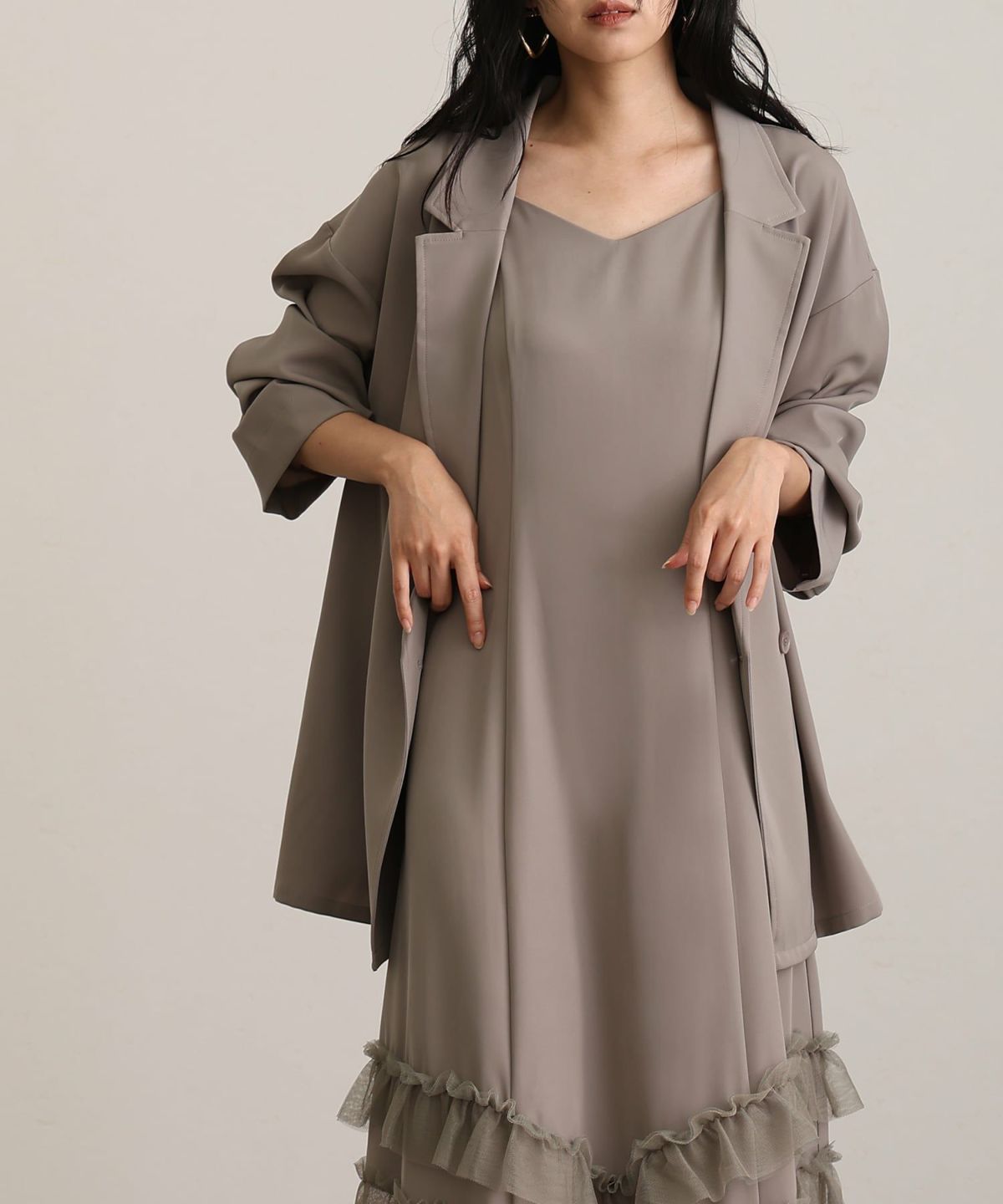シンプルでモードな雰囲気がおしゃれなセットアップ ショートジャケットキャミワンピースセットアップ