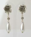 ■揺れるパールとビジューの組み合わせが華やかなイヤリング花モチーフのようにあしらわれた大小のパールが耳元を華やかに演出。パールとビジューの組み合わせは豪華な煌きです。オケージョン等の華やかなシーンで活躍してくれるアイテムです。
