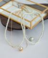 ■大粒パールと小粒パールのバランスが絶妙大粒パールのペンダントトップと小粒パールネックレスを組み合わせた2連ネックレス。メタル加工が施されたパールに華奢なチェーンのついたネックレスと、小粒パールのネックレスの2点セットでそれぞれ単体でも楽しんでいただけます。