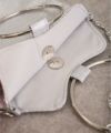 華やかなメタリックのダブルリングが手元を彩る、アクセサリー感覚のパーティーバッグ。