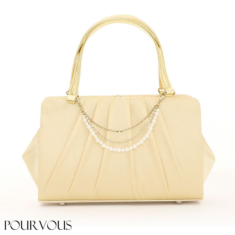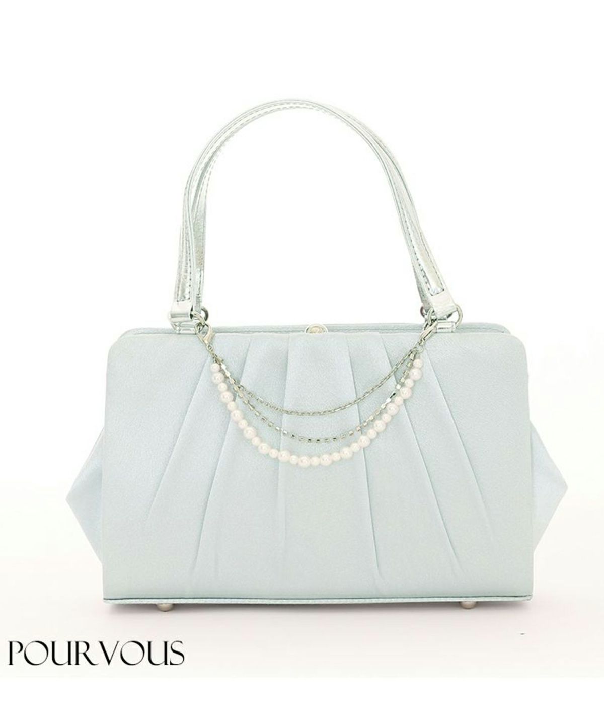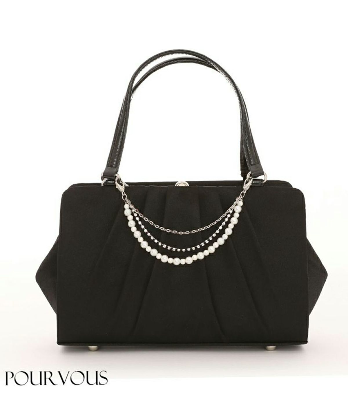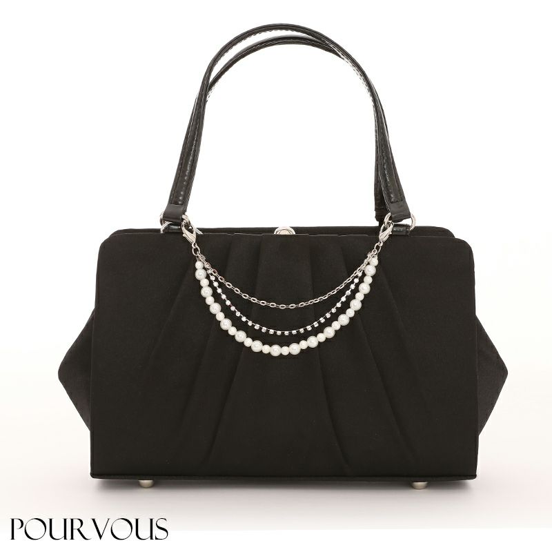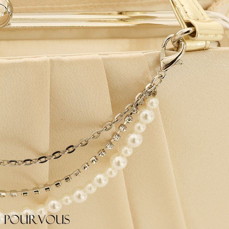パール、ビジュー、チェーンの3連バッグアクセサリーが付属。