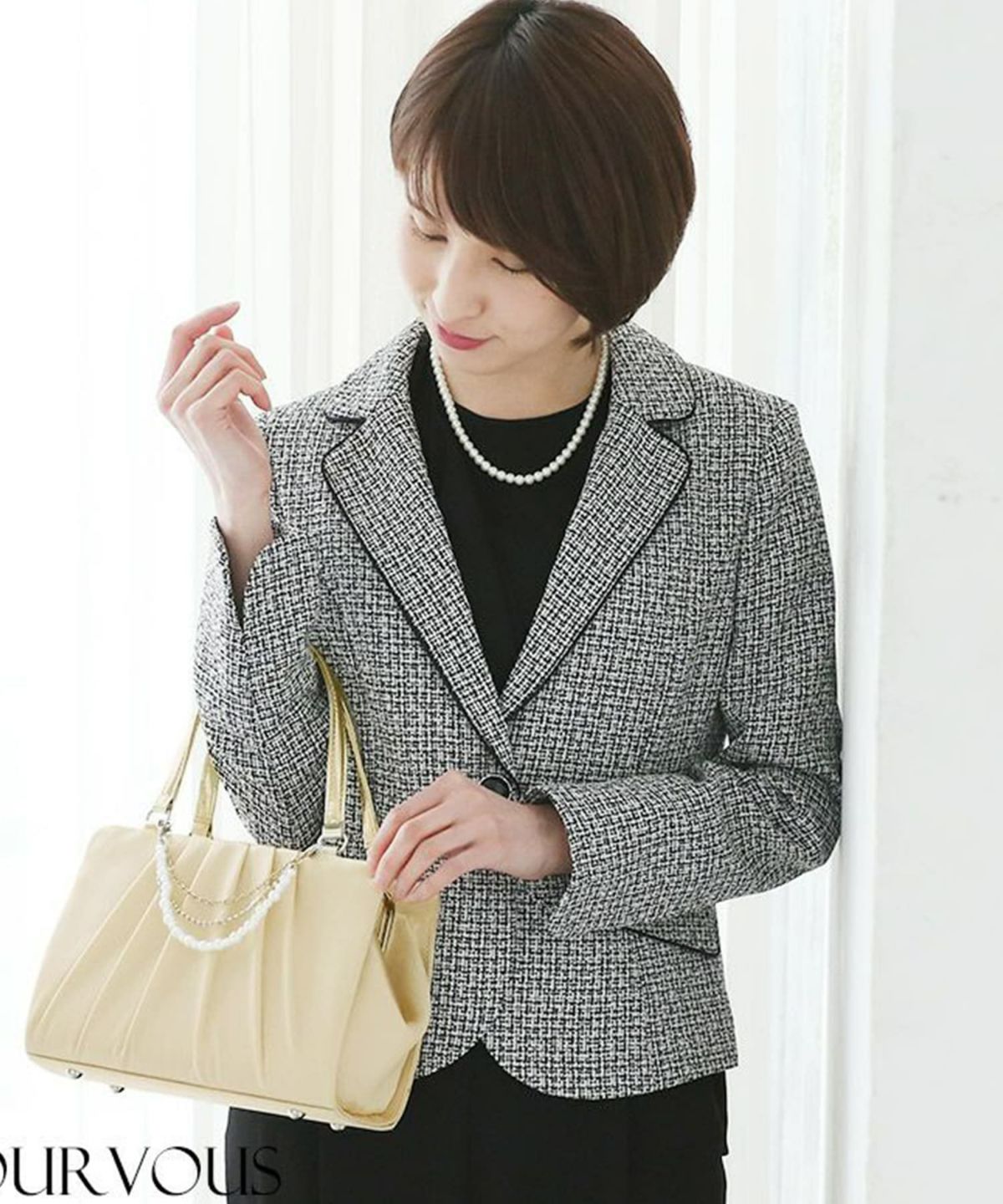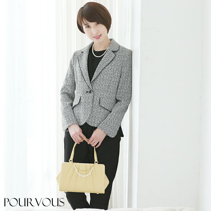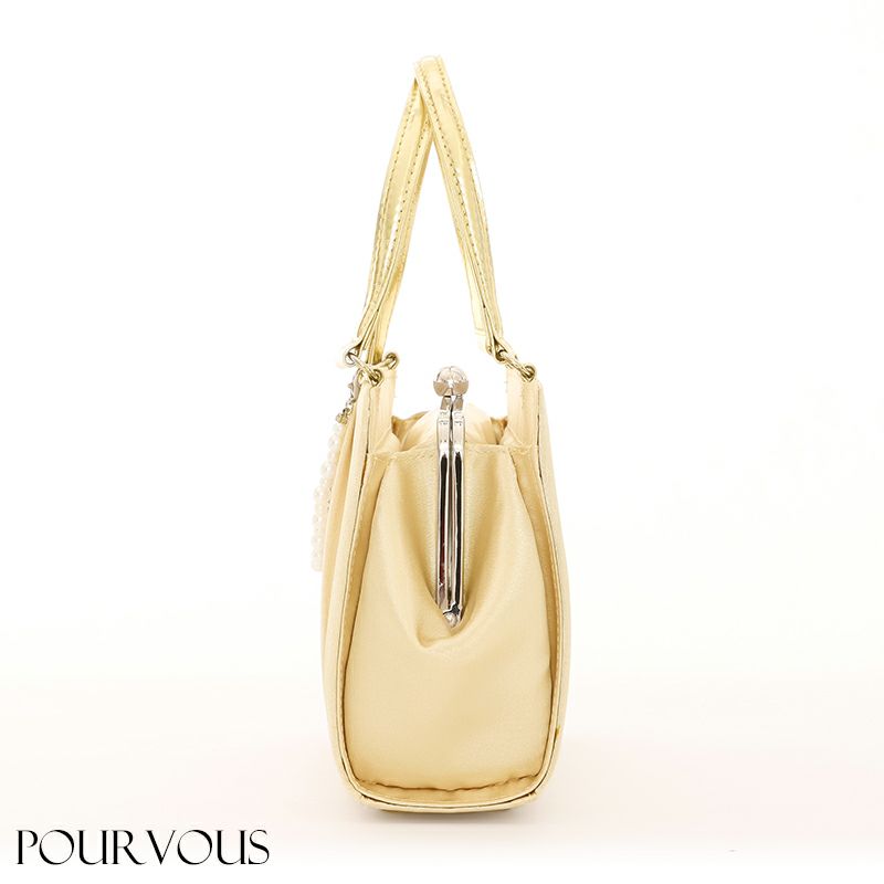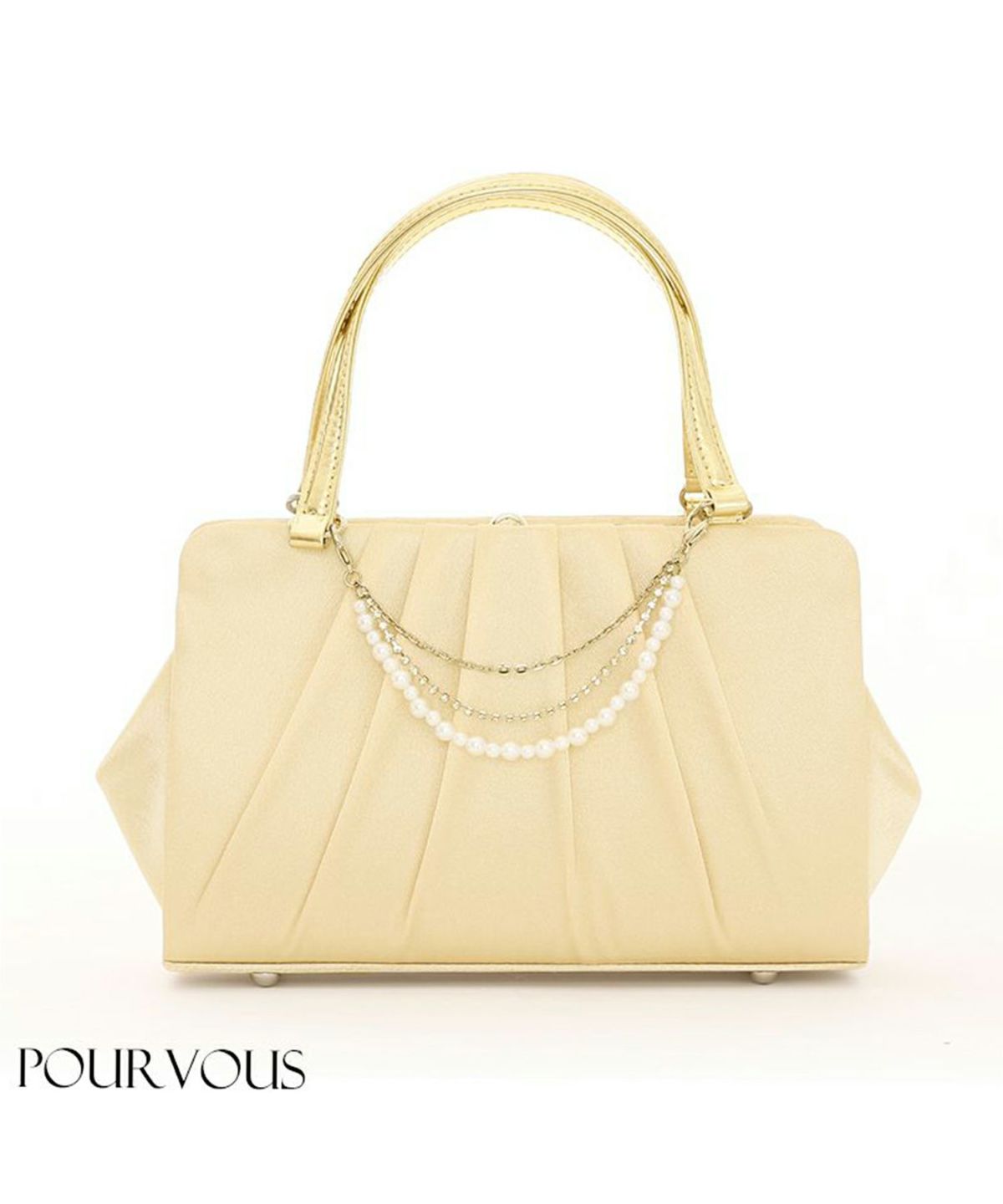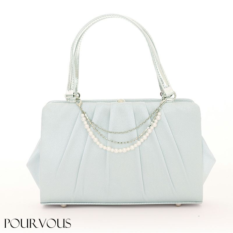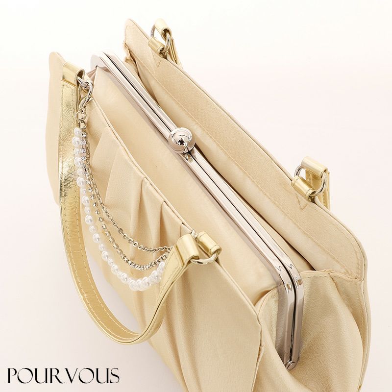 パール、ビジュー、チェーンの3連バッグアクセサリーが付属。