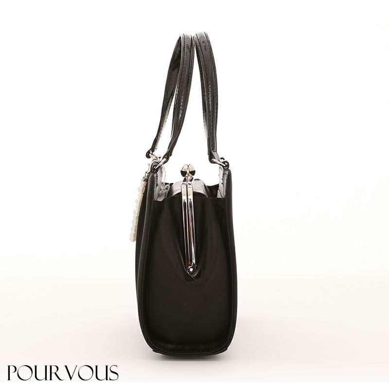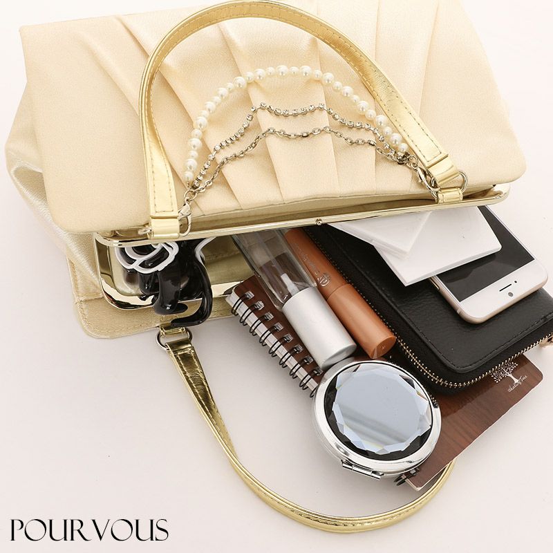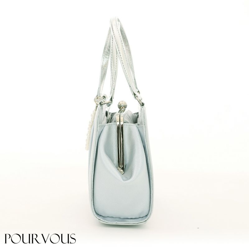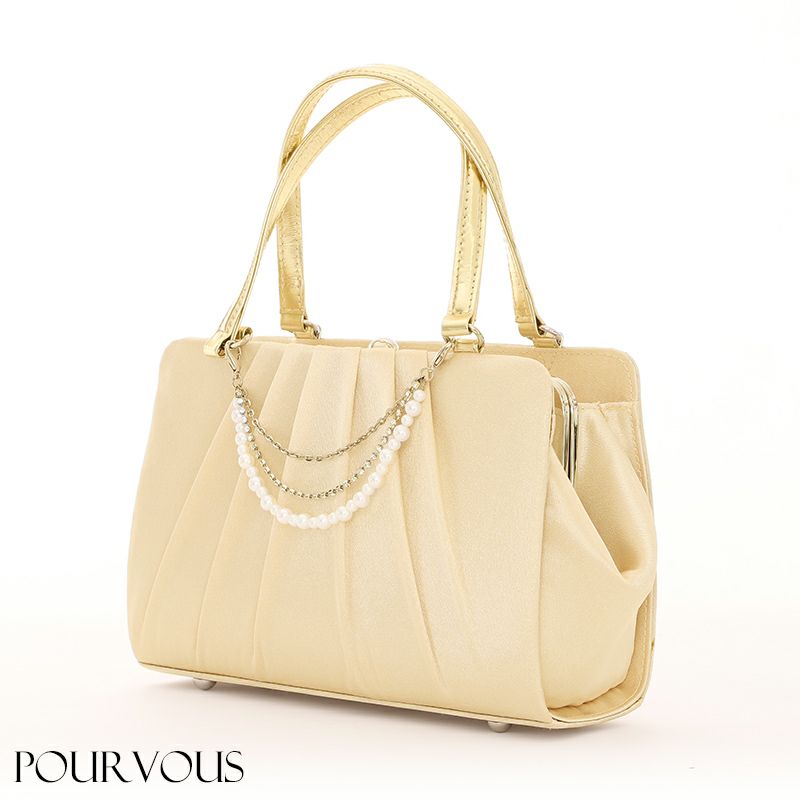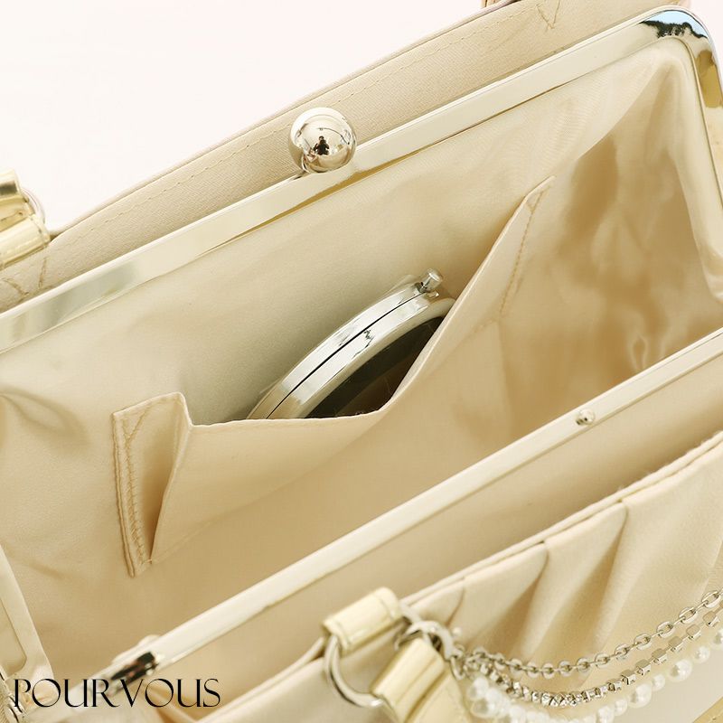 上品な光沢を放つサテンを使用したエレガントなバック。