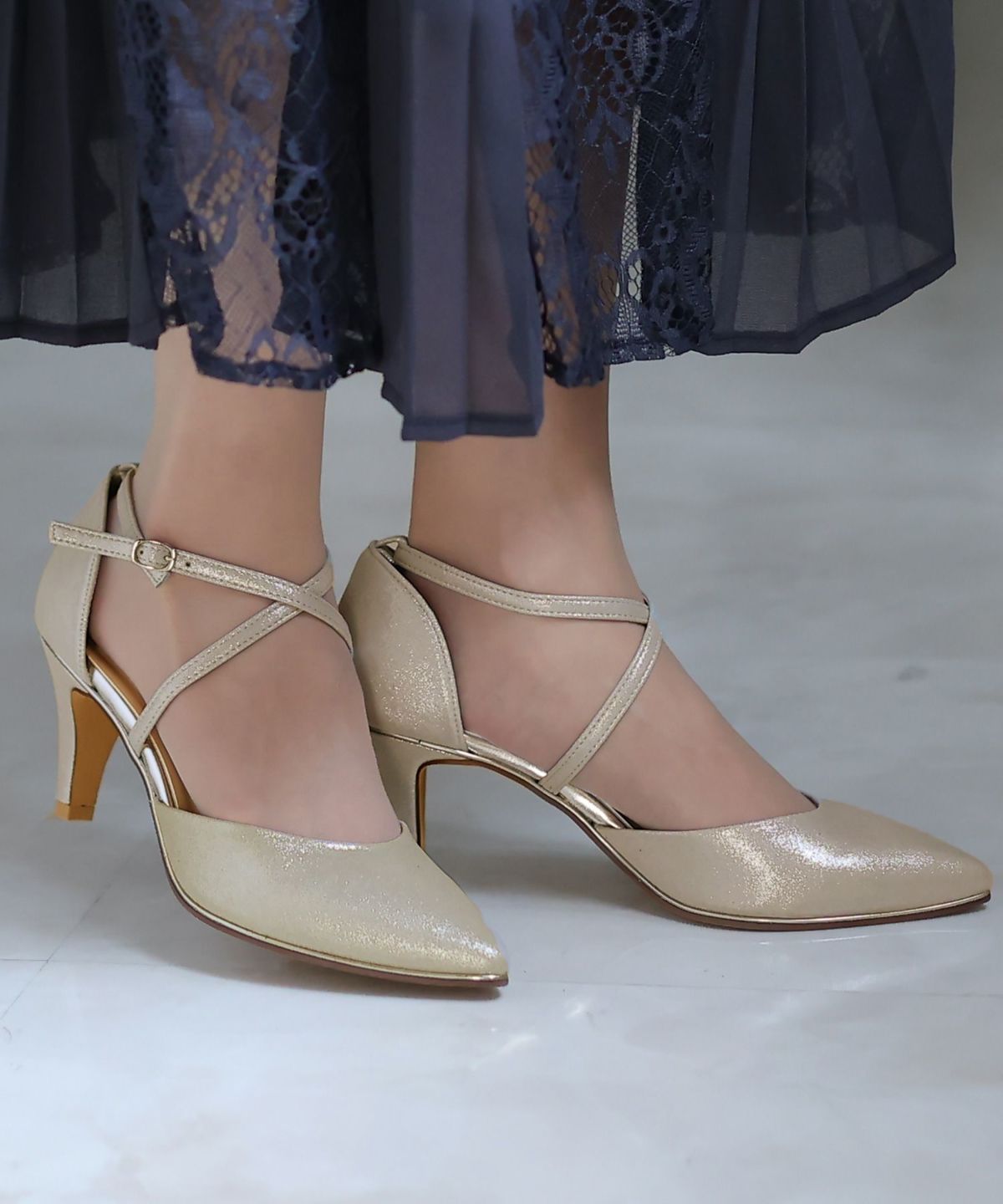クロスストラップが人目を惹く クロスストラップヒールパンプス