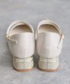 歩いてもかかとが浮きにくい、安心のアンクルストラップ付き。